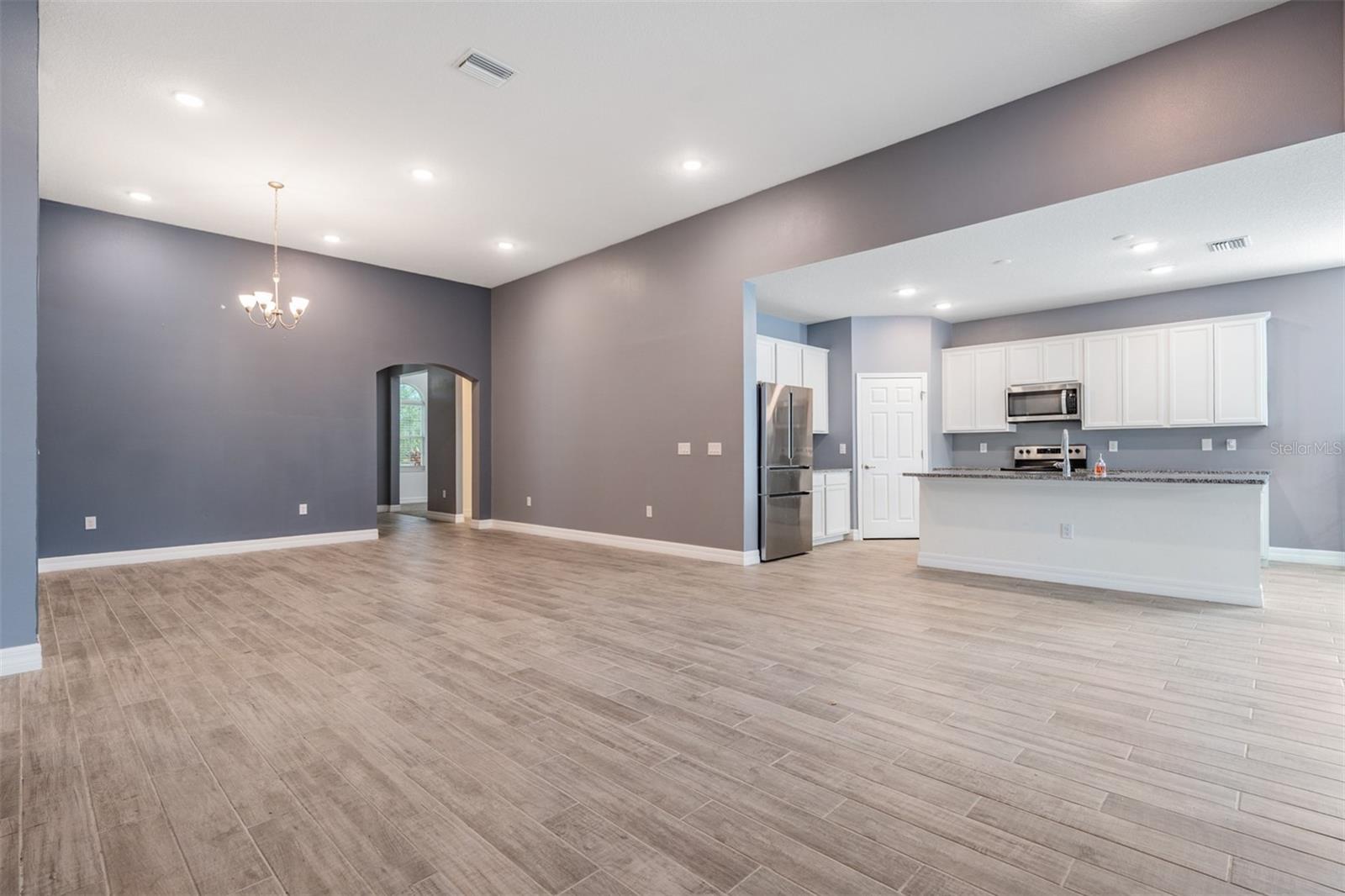 One or more photo(s) has been virtually staged. Welcome to elevated Florida living in this stunning 2021 Holiday Builders Rialto floorplan—offering 4 bedrooms, 3 bathrooms, and a 3-car garage with over 2,500 square feet of beautifully upgraded space including a relaxing screened in back porch! Located in Talavera Woods, a quiet, non-cookie-cutter subdivision with no CDD fees, this home sits on a peaceful dead-end street adjacent to Triple Creek Nature Preserve, providing serenity and privacy just minutes from everyday conveniences. From the moment you arrive, this home stands apart. The custom front elevation is one-of-a-kind in the neighborhood, setting the tone for the upscale living that continues throughout. Step inside to a grand foyer with soaring 12-foot ceilings and wood-look tile flooring that carries through the common areas. A flexible office/den space and an expansive great room with a dramatic high-end accent wall enhance the thoughtful double-split floor plan, ideal for both everyday living and entertaining. The chef-inspired kitchen boasts 42” soft-close shaker cabinets, granite countertops, a walk-in pantry, stainless steel appliances, a large island with farmhouse sink, and a generous dining area perfect for gatherings. Multiple seating and dining zones offer versatility for casual and formal settings. All three full bathrooms are elegantly appointed with floor-to-ceiling tiled showers, while the bedroom closets are impressively spacious. The luxurious Owner’s Suite is a private retreat tucked behind French doors, featuring a massive walk-in closet, dual granite vanities, an oversized walk-in shower, and a private water closet. This home has been thoughtfully upgraded throughout—just bring your furniture and settle in. Priced below market and recent appraisal, and not currently homesteaded, offering even more potential value for its next owner. The Seller just had the interior of the 3 car garage painted! Don’t miss the chance to own a truly distinctive property in a tranquil Riverview location with no CDD and low HOA. Schedule your private tour today!