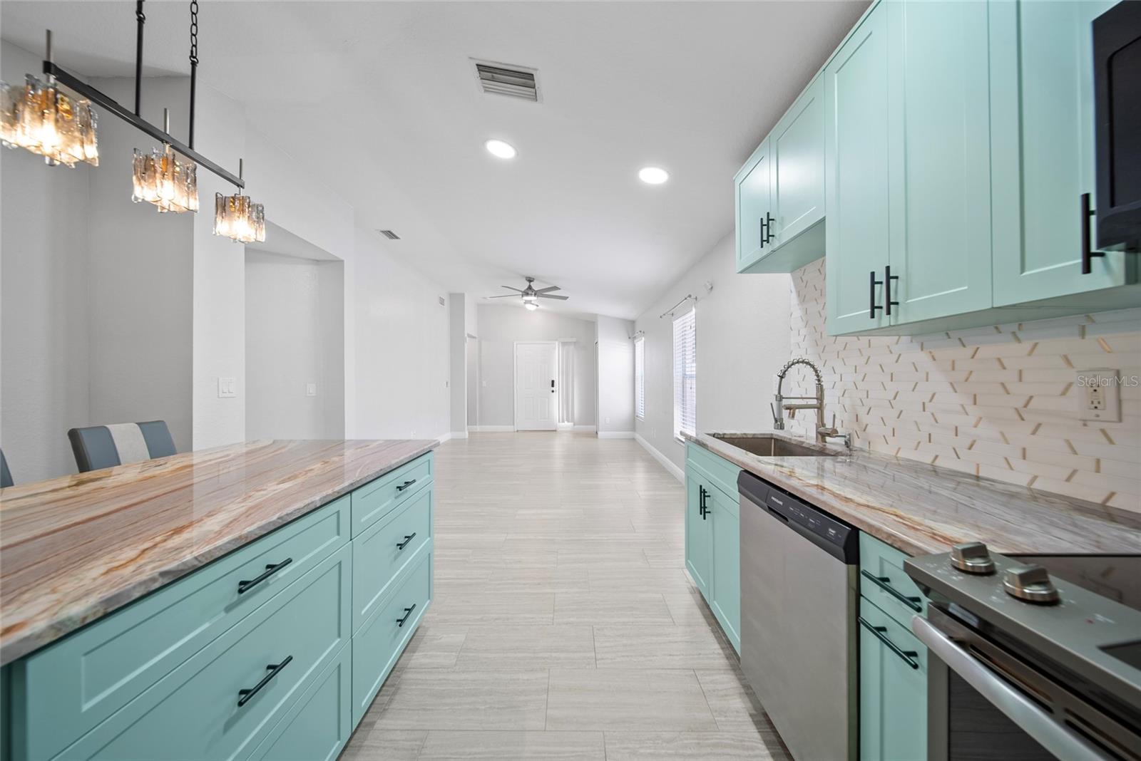 Seller offering $5,000 credit to use towards Closing costs and/or prepaids. Welcome to this beautifully updated 4-bedroom, 2-bath home that combines comfort with thoughtful renovations. The spacious interior features three well sized bedrooms, plus a versatile fourth bedroom that was formerly a 2 car garage- Perfect for a guest suite, home office or additional living space. The kitchen has been expanded and remodeled with beautiful Tiffany Blue cabinets and gorgeous Quartz countertops, surely one of a kind. The home was freshly painted and features plenty of cabinet space, Stainless Steel Appliances,Porcelain tile throughout , Newer AC (2years old) And Newly remodeled bathrooms. Fenced in Backyard, perfect for the pups. Located in a friendly neighborhood with amenities like Parks, Pools, Playground, and tennis courts. Walking distance to school. Minutes from Shops and restaurants. This home is sure to impress! Don’t miss the opportunity to make it yours. Schedule your showing today!