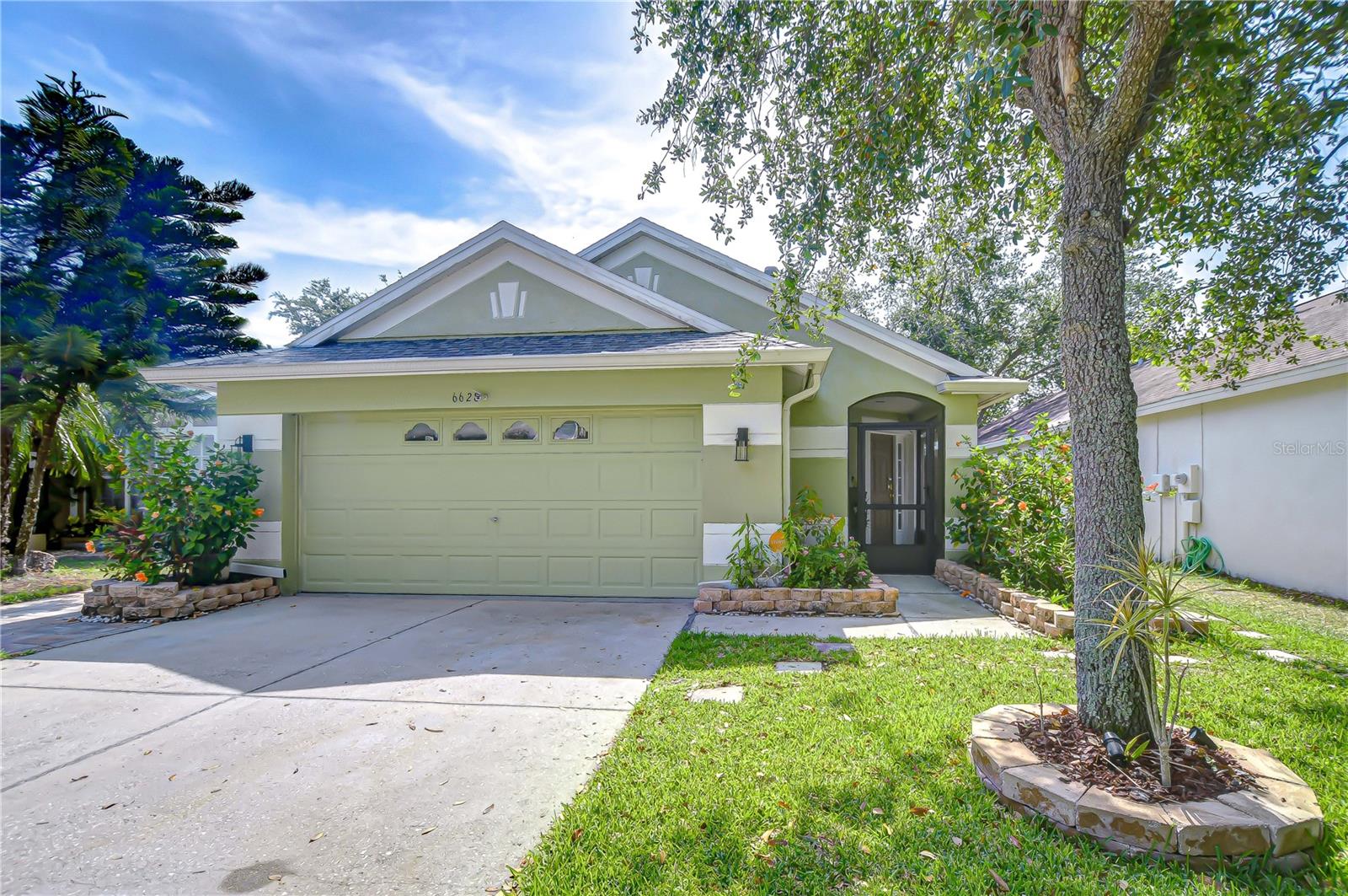 Welcome to your dream home in Bloomingdale Ridge, where peaceful pond views and thoughtful updates await! Enjoy peace of mind with a brand-new roof (2025), A/C installed in 2021, and a new fence (2025). The kitchen and bathrooms were remodeled in 2023, bringing modern style and functionality. The homeowners also enhanced the front floral beds, installed low-voltage outdoor lighting, a smart sprinkler system (2021), and added pavers to the backyard and front side yard (2023). This split floor plan offers both comfort and convenience, featuring upgraded vinyl flooring throughout the living and dining rooms and all bedrooms—no carpet! The remodeled kitchen includes upgraded countertops, a new sink, custom pull-out drawers, center island, and a breakfast bar—perfect for everyday meals and easy conversation. The primary suite features a walk-in closet and a private bath, while two additional spacious bedrooms share a full bath. Step outside to your screened and covered patio, the perfect place to unwind. Beyond the patio, enjoy a thriving garden for homegrown fruits, vegetables, and herbs, a built-in pizza oven, and peaceful pond view and conservation views—a true backyard oasis with space to relax, entertain, or nurture your green thumb. Additional perks include NO CDD, low HOA, and a prime location close to shopping centers, hospitals, and major airports. With easy access to Tampa, Sarasota, and Orlando, convenience is built in. Don’t miss the opportunity to make this meticulously maintained home your own! Copy and paste this link to tour the home virtually: my.matterport.com/show/?m=iFz9y3RF22t&mls=1