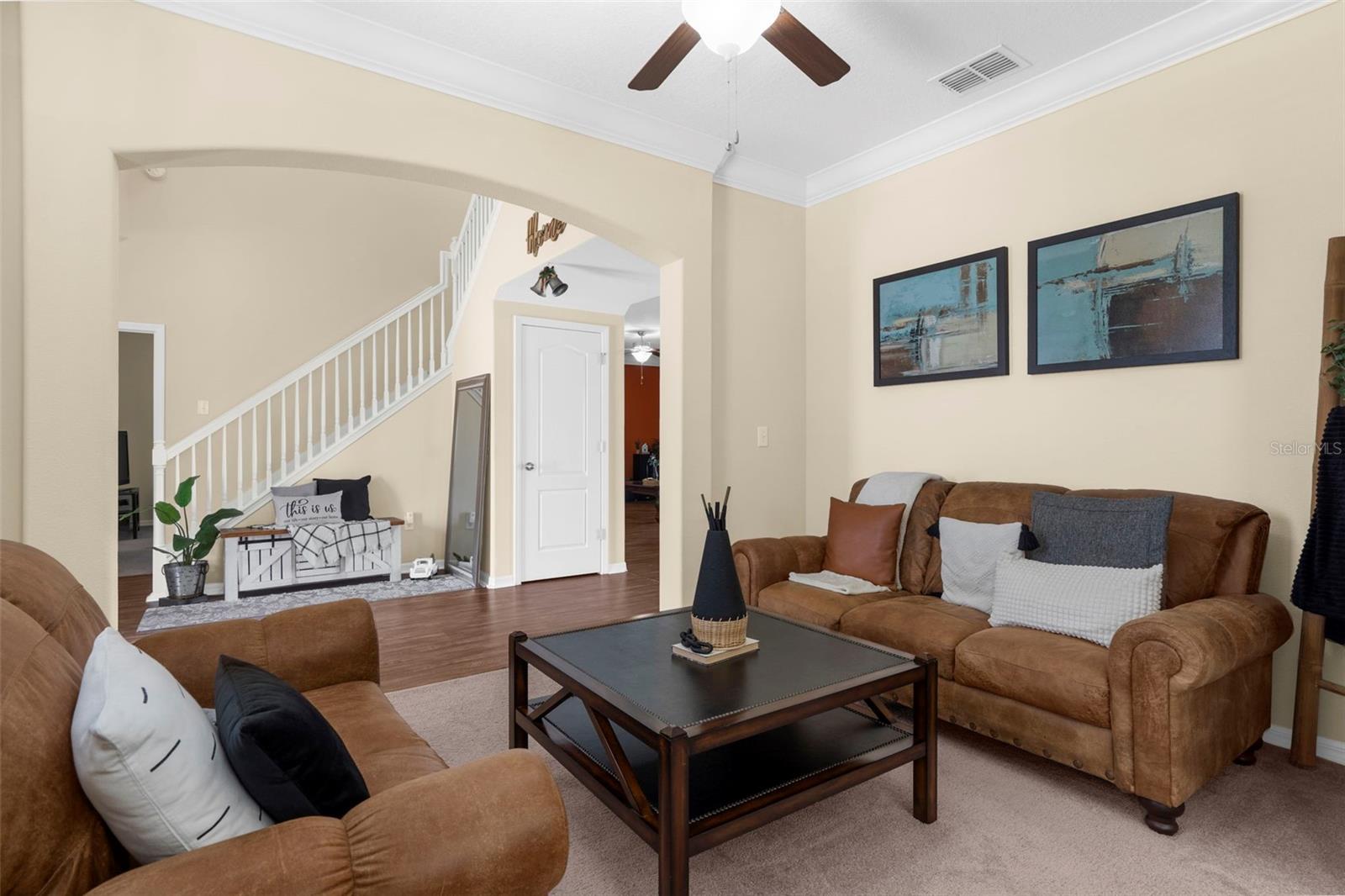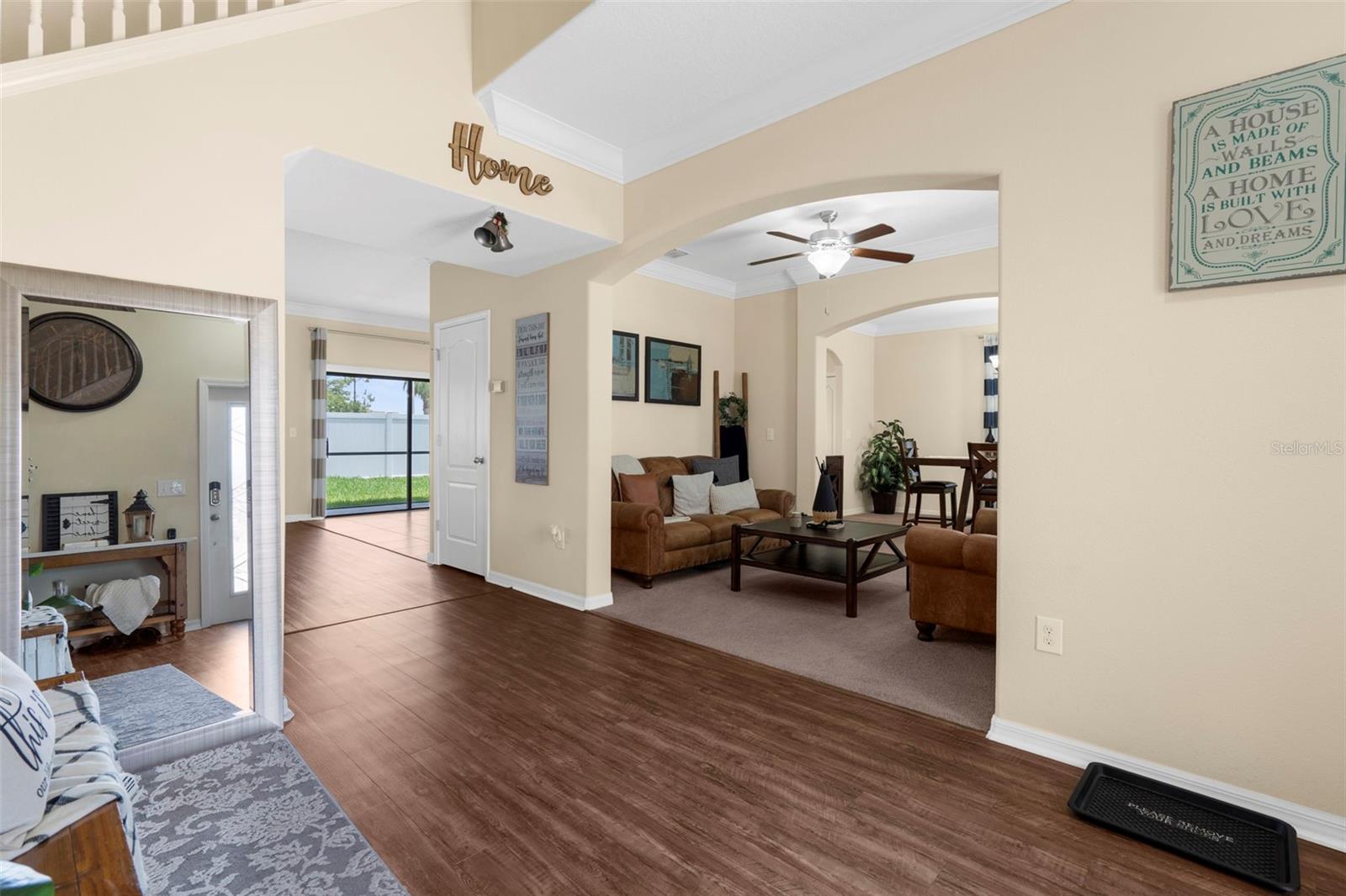 The “Buckingham” – Space, Style, and a Layout That Impresses From the moment you arrive, this home makes a statement. The unique L-shaped design and striking two-story entryway create unforgettable curb appeal that sets it apart from anything else in the neighborhood. Step inside to a grand open foyer with soaring ceilings and rounded drywall corners that add warmth and elegance. The formal living and dining areas flow effortlessly into a spacious kitchen featuring 42” staggered cabinets with crown molding, brand new GE appliances, and plenty of counter space — all open to the breakfast nook and inviting family room. Need a guest suite, multi-gen setup, or home office? A large bedroom and full bath on the first floor gives you the flexibility you need. Upstairs, enjoy a bonus room tucked away for movie nights, hobbies, or extra relaxation. Three additional bedrooms, two full baths, and a private owner’s suite provide room to grow and unwind. Laundry is upstairs too, washer and dryer included for extra convenience. Located in South Fork, one of Riverview’s most sought-after communities, with access to parks, trails, and nearby schools — this is the kind of home that truly delivers. Schedule your private showing today and come experience it for yourself!