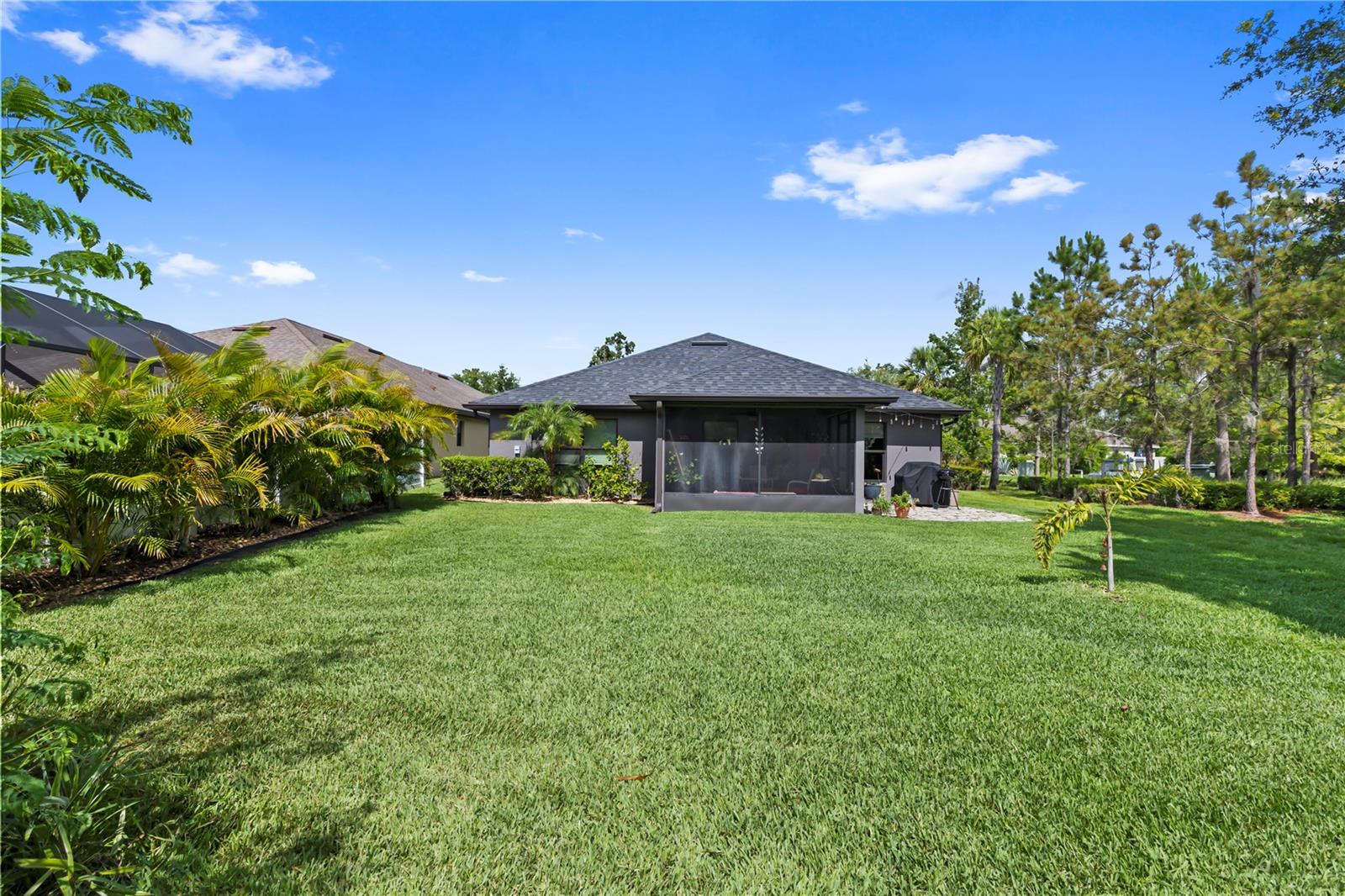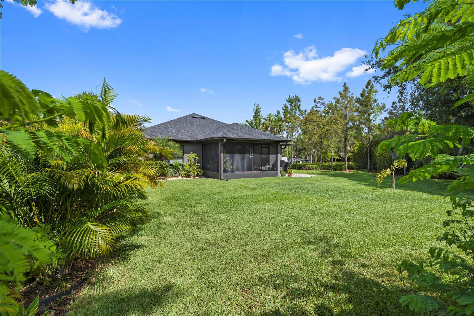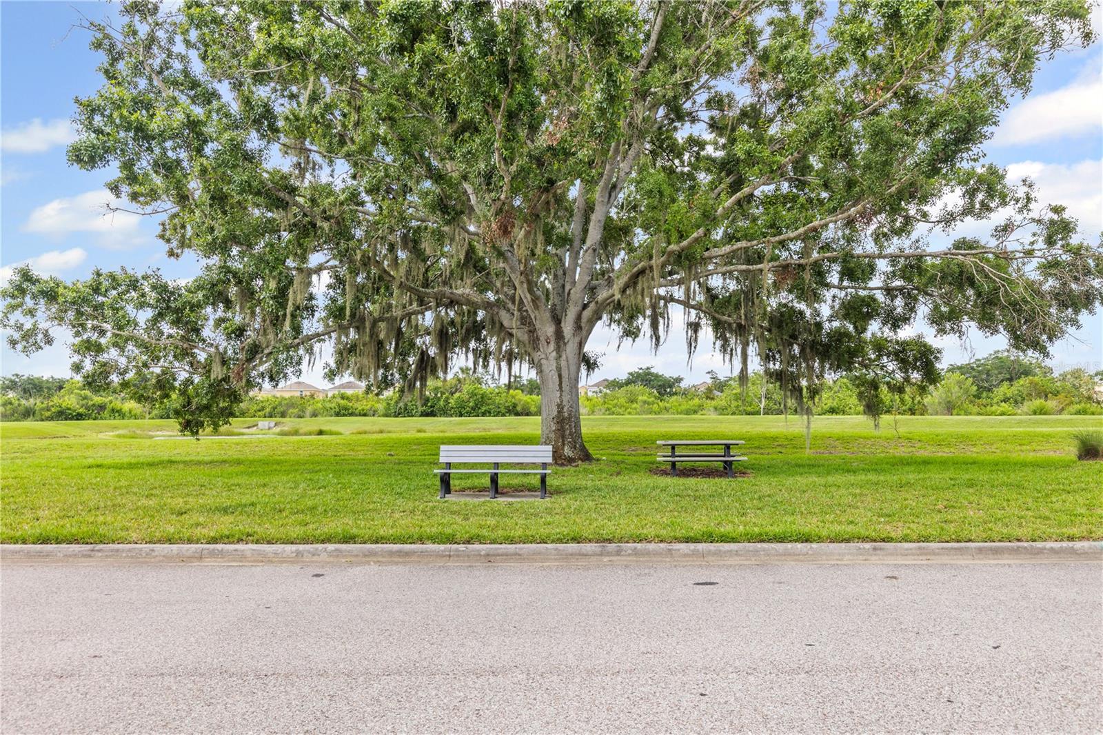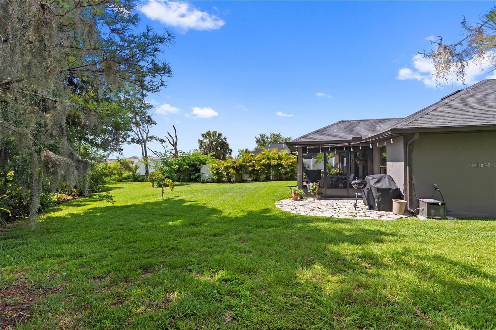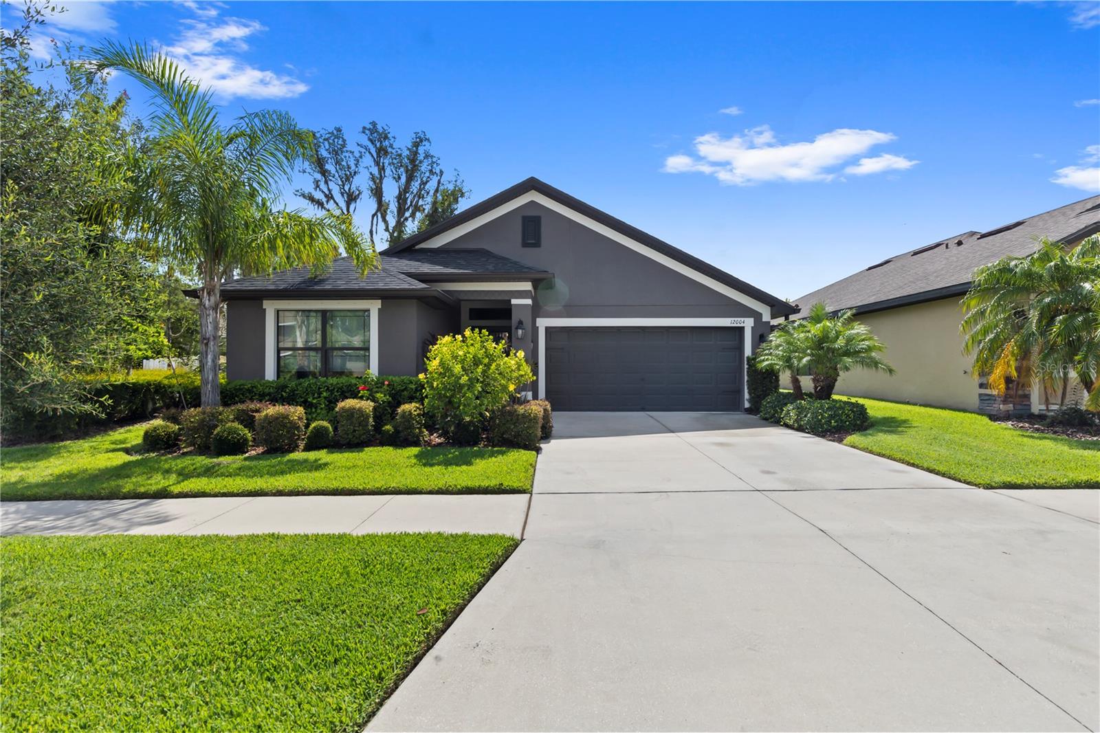Welcome to this stunning and immaculately-maintained one-story, 3-bedroom, 2-bathroom home located on a premium end lot ACROSS FROM THE CLUBHOUSE AND POOL in the desirable PARK CREEK community in Riverview, FL! Offering the perfect blend of comfort and style, this home features easy-to-maintain ceramic tile flooring with a functional split floorplan, offering privacy for everyone. The beautifully designed kitchen showcases beautiful white cabinets, sleek granite countertops, gorgeous white tile backsplash and high-end stainless-steel appliances, making it a dream for any home chef. The coveted open floorplan makes entertaining a breeze with the kitchen opening into the living room and lanai. The expansive primary suite is a true retreat, complete with a large walk-in closet, dual sinks, a relaxing garden tub, and a separate, walk-in, shower. Two other bedrooms are on the opposite side of the home and share access to an adjacent bathroom with plenty of cabinets for storage - great for long term guests! Outside, you'll love the covered patio that overlooks thick foliage and a spacious backyard, offering privacy and tranquility, perfect for enjoying a morning cup of coffee or evening cocktail. The attached two-car garage adds to the convenience of this well-appointed home and just had a BRAND NEW GARAGE OPENER installed. Updated light fixtures and NEW INTERIOR PAINT throughout put this home over the top and this location cannot be beat! Homeowners even had gutters installed so it is truly MOVE IN READY! Included in the HOA fees, are Spectrum Hi-Speed Internet AND Cable TV. Park Creek is a quick drive to the popular Tiki Docks restaurant on the water, as well as Riverview Marina so you can take a boat out and enjoy a great lunch afterwards. For outdoor enthusiasts, you'll find the nearby Alafia River State Park, perfect for hiking, fishing, and kayaking. The family-friendly Westfield Brandon Mall is just a short drive away, offering shopping, dining, and entertainment options. Take a trip to the nearby Tampa Riverwalk, where you can explore museums, parks, and waterfront dining. Additionally, the home is conveniently located near major highways, providing easy access to downtown Tampa, the beautiful Gulf Coast beaches, and other popular destinations in the Tampa Bay area. Community Amenities include: pool, clubhouse, SPECTRUM HI-SPEED INTERENT, CABLE TV, walking trails and more! Kitchen appliances and garage refrigerator CONVEY.