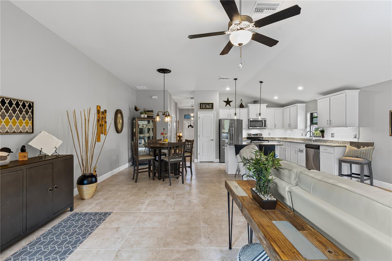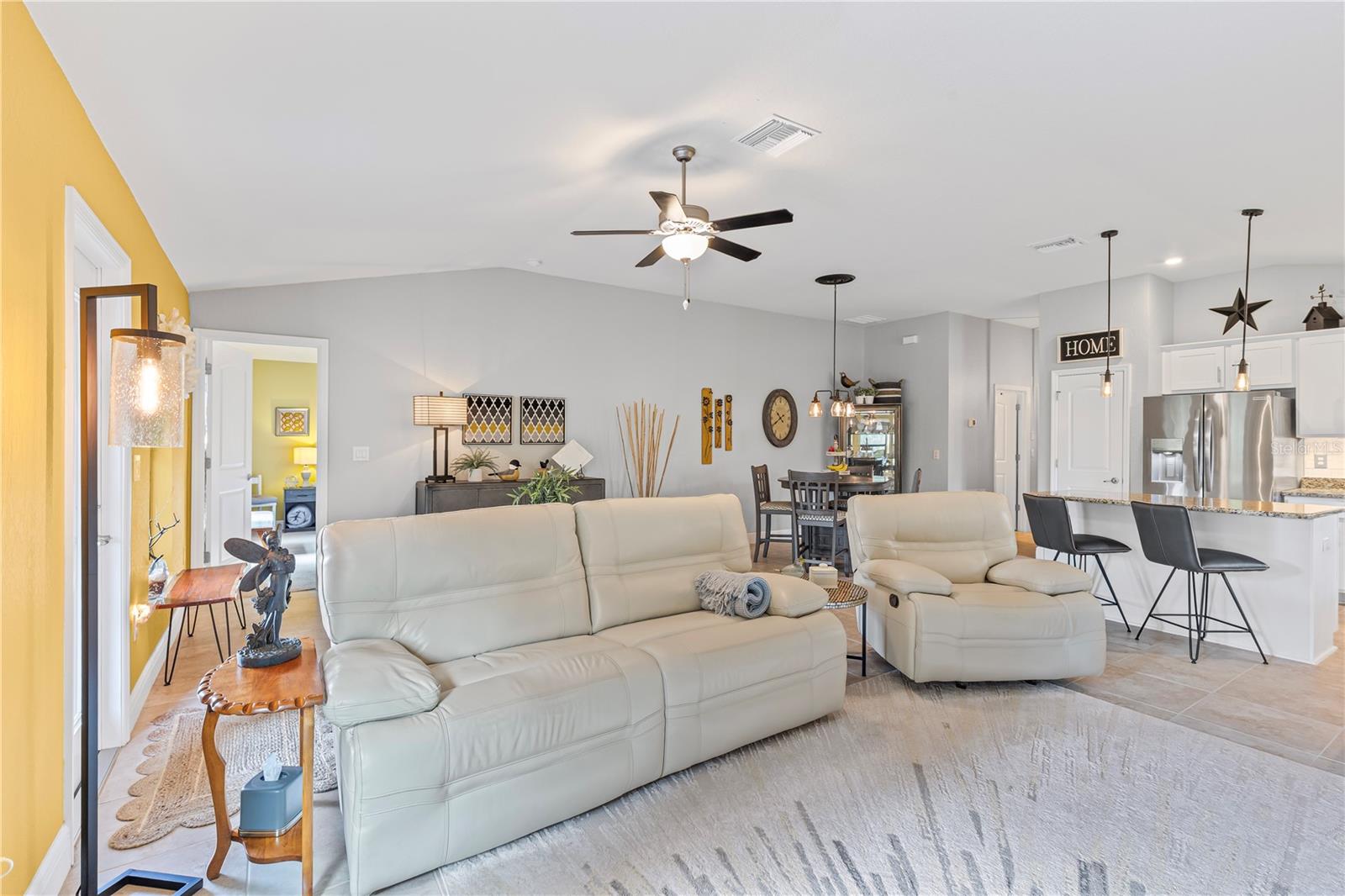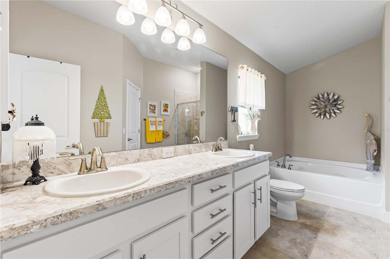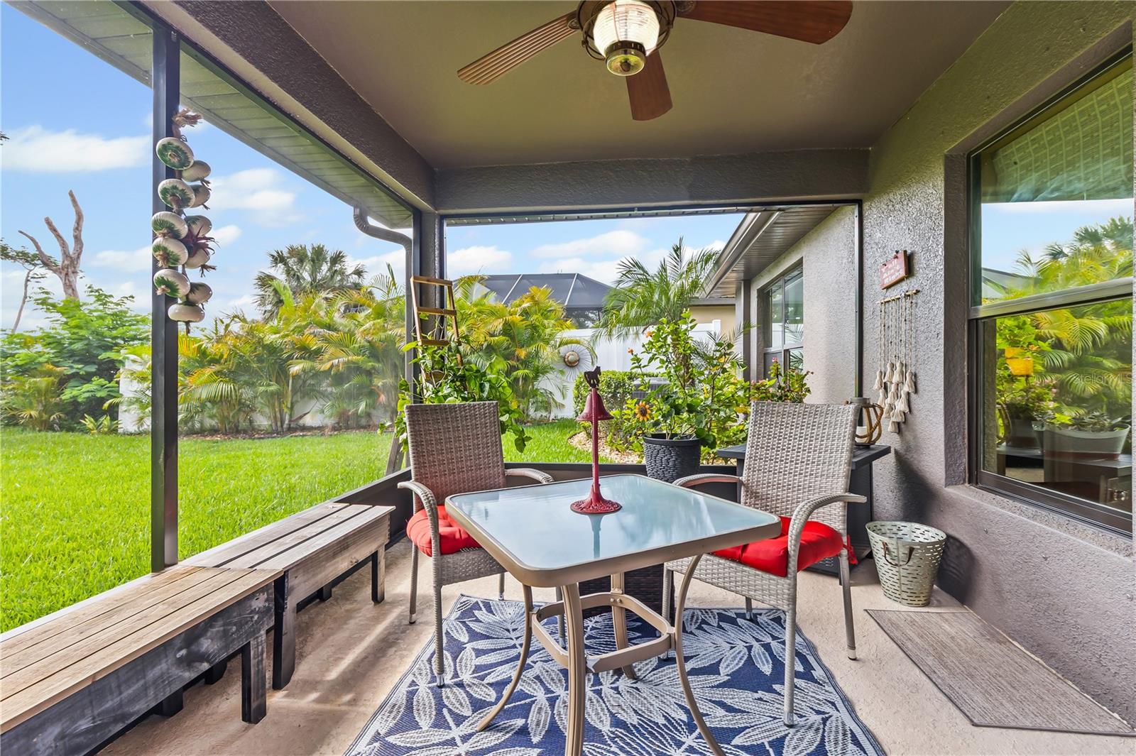Welcome to this stunning and immaculately-maintained one-story, 3-bedroom, 2-bathroom home located on a premium end lot ACROSS FROM THE CLUBHOUSE AND POOL in the desirable PARK CREEK community in Riverview, FL! Offering the perfect blend of comfort and style, this home features easy-to-maintain ceramic tile flooring with a functional split floorplan, offering privacy for everyone. The beautifully designed kitchen showcases beautiful white cabinets, sleek granite countertops, gorgeous white tile backsplash and high-end stainless-steel appliances, making it a dream for any home chef. The coveted open floorplan makes entertaining a breeze with the kitchen opening into the living room and lanai. The expansive primary suite is a true retreat, complete with a large walk-in closet, dual sinks, a relaxing garden tub, and a separate, walk-in, shower. Two other bedrooms are on the opposite side of the home and share access to an adjacent bathroom with plenty of cabinets for storage - great for long term guests! Outside, you'll love the covered patio that overlooks thick foliage and a spacious backyard, offering privacy and tranquility, perfect for enjoying a morning cup of coffee or evening cocktail. The attached two-car garage adds to the convenience of this well-appointed home and just had a BRAND NEW GARAGE OPENER installed. Updated light fixtures and NEW INTERIOR PAINT throughout put this home over the top and this location cannot be beat! Homeowners even had gutters installed so it is truly MOVE IN READY! Included in the HOA fees, are Spectrum Hi-Speed Internet AND Cable TV. Park Creek is a quick drive to the popular Tiki Docks restaurant on the water, as well as Riverview Marina so you can take a boat out and enjoy a great lunch afterwards. For outdoor enthusiasts, you'll find the nearby Alafia River State Park, perfect for hiking, fishing, and kayaking. The family-friendly Westfield Brandon Mall is just a short drive away, offering shopping, dining, and entertainment options. Take a trip to the nearby Tampa Riverwalk, where you can explore museums, parks, and waterfront dining. Additionally, the home is conveniently located near major highways, providing easy access to downtown Tampa, the beautiful Gulf Coast beaches, and other popular destinations in the Tampa Bay area. Community Amenities include: pool, clubhouse, SPECTRUM HI-SPEED INTERENT, CABLE TV, walking trails and more! Kitchen appliances and garage refrigerator CONVEY.