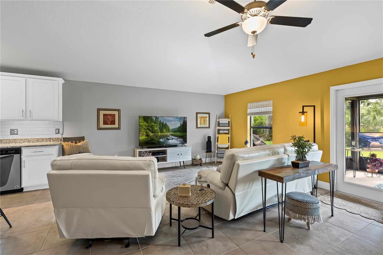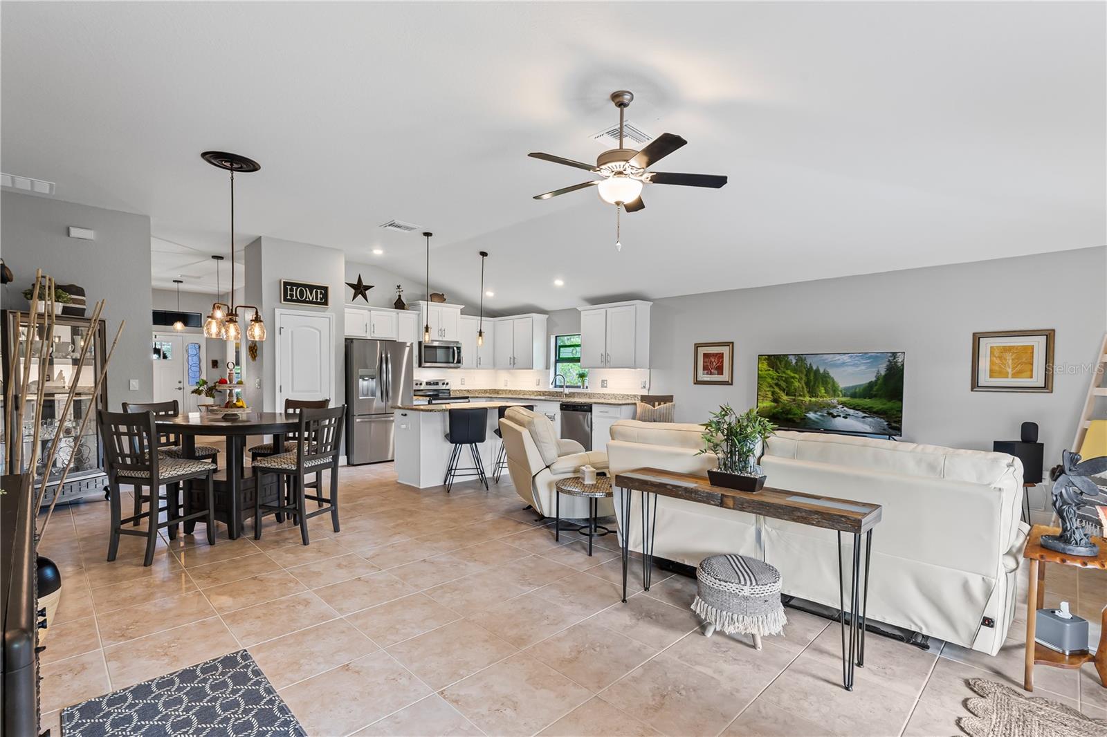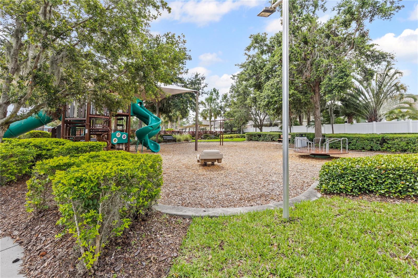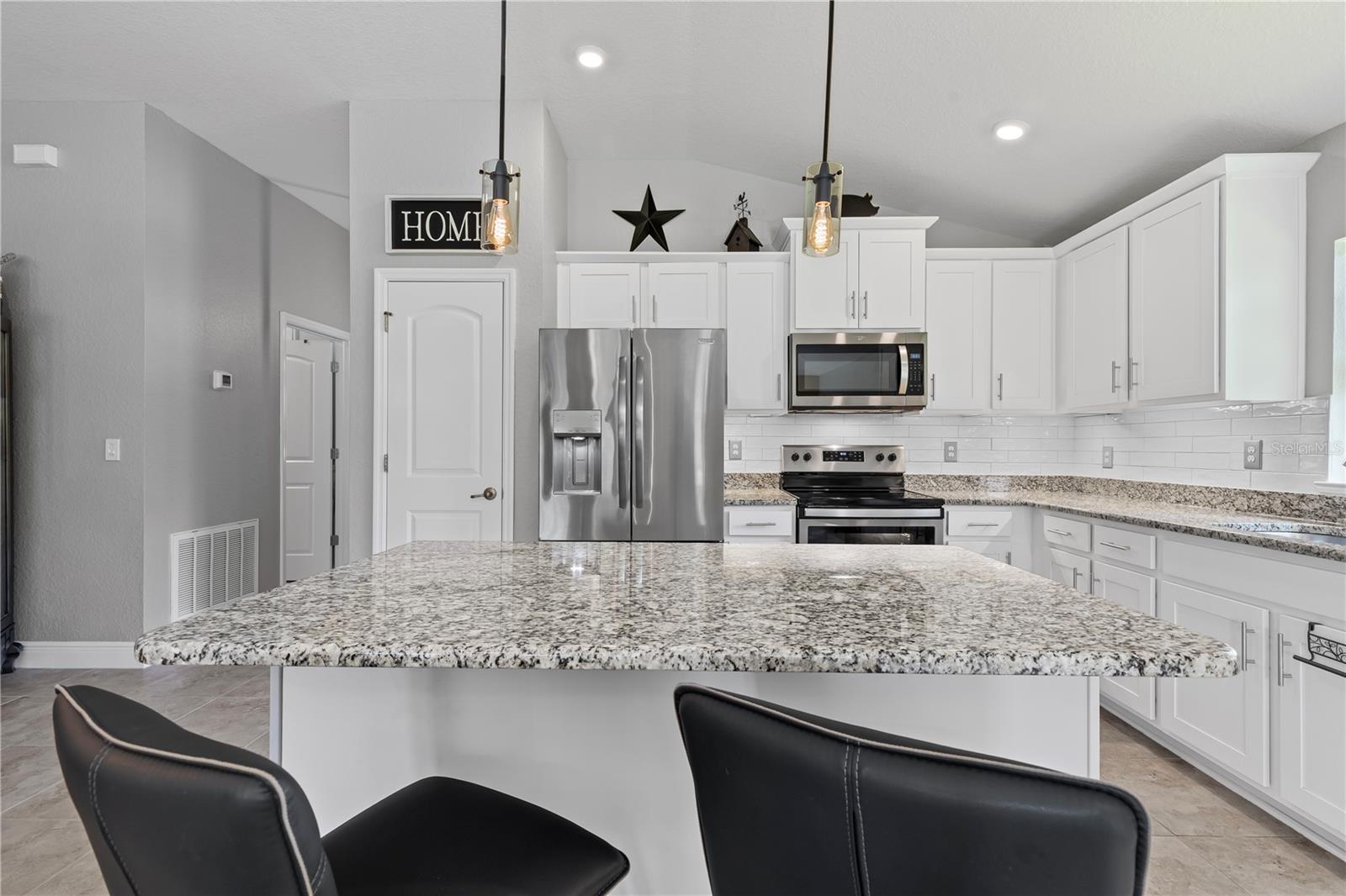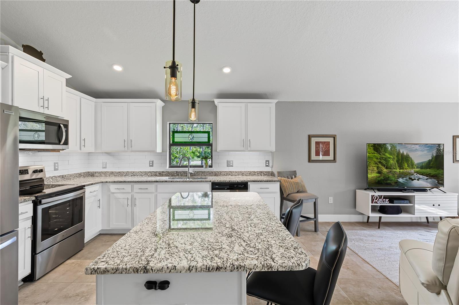 Welcome to this stunning and immaculately-maintained one-story, 3-bedroom, 2-bathroom home located on a premium end lot ACROSS FROM THE CLUBHOUSE AND POOL in the desirable PARK CREEK community in Riverview, FL! Offering the perfect blend of comfort and style, this home features easy-to-maintain ceramic tile flooring with a functional split floorplan, offering privacy for everyone. The beautifully designed kitchen showcases beautiful white cabinets, sleek granite countertops, gorgeous white tile backsplash and high-end stainless-steel appliances, making it a dream for any home chef. The coveted open floorplan makes entertaining a breeze with the kitchen opening into the living room and lanai. The expansive primary suite is a true retreat, complete with a large walk-in closet, dual sinks, a relaxing garden tub, and a separate, walk-in, shower. Two other bedrooms are on the opposite side of the home and share access to an adjacent bathroom with plenty of cabinets for storage - great for long term guests! Outside, you'll love the covered patio that overlooks thick foliage and a spacious backyard, offering privacy and tranquility, perfect for enjoying a morning cup of coffee or evening cocktail. The attached two-car garage adds to the convenience of this well-appointed home and just had a BRAND NEW GARAGE OPENER installed. Updated light fixtures and NEW INTERIOR PAINT throughout put this home over the top and this location cannot be beat! Homeowners even had gutters installed so it is truly MOVE IN READY! Included in the HOA fees, are Spectrum Hi-Speed Internet AND Cable TV. Park Creek is a quick drive to the popular Tiki Docks restaurant on the water, as well as Riverview Marina so you can take a boat out and enjoy a great lunch afterwards. For outdoor enthusiasts, you'll find the nearby Alafia River State Park, perfect for hiking, fishing, and kayaking. The family-friendly Westfield Brandon Mall is just a short drive away, offering shopping, dining, and entertainment options. Take a trip to the nearby Tampa Riverwalk, where you can explore museums, parks, and waterfront dining. Additionally, the home is conveniently located near major highways, providing easy access to downtown Tampa, the beautiful Gulf Coast beaches, and other popular destinations in the Tampa Bay area. Community Amenities include: pool, clubhouse, SPECTRUM HI-SPEED INTERENT, CABLE TV, walking trails and more! Kitchen appliances and garage refrigerator CONVEY.