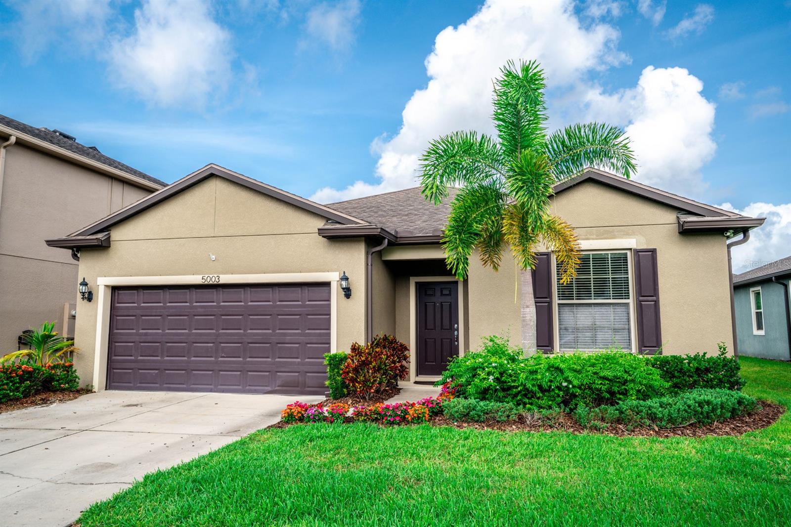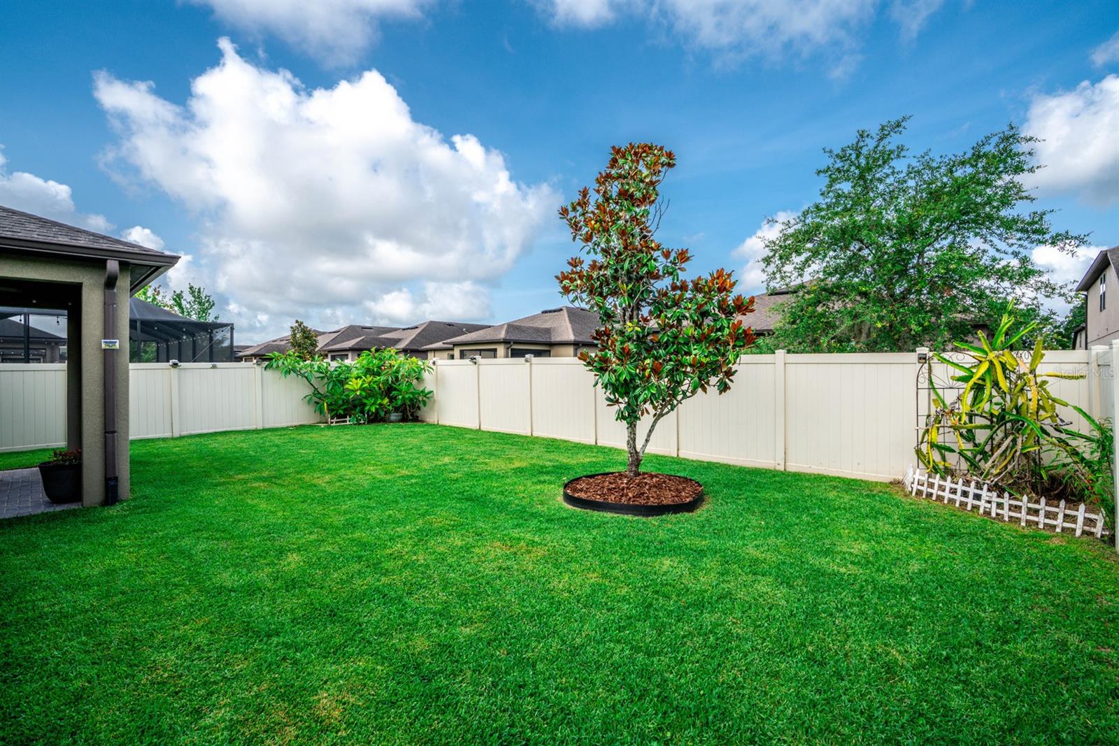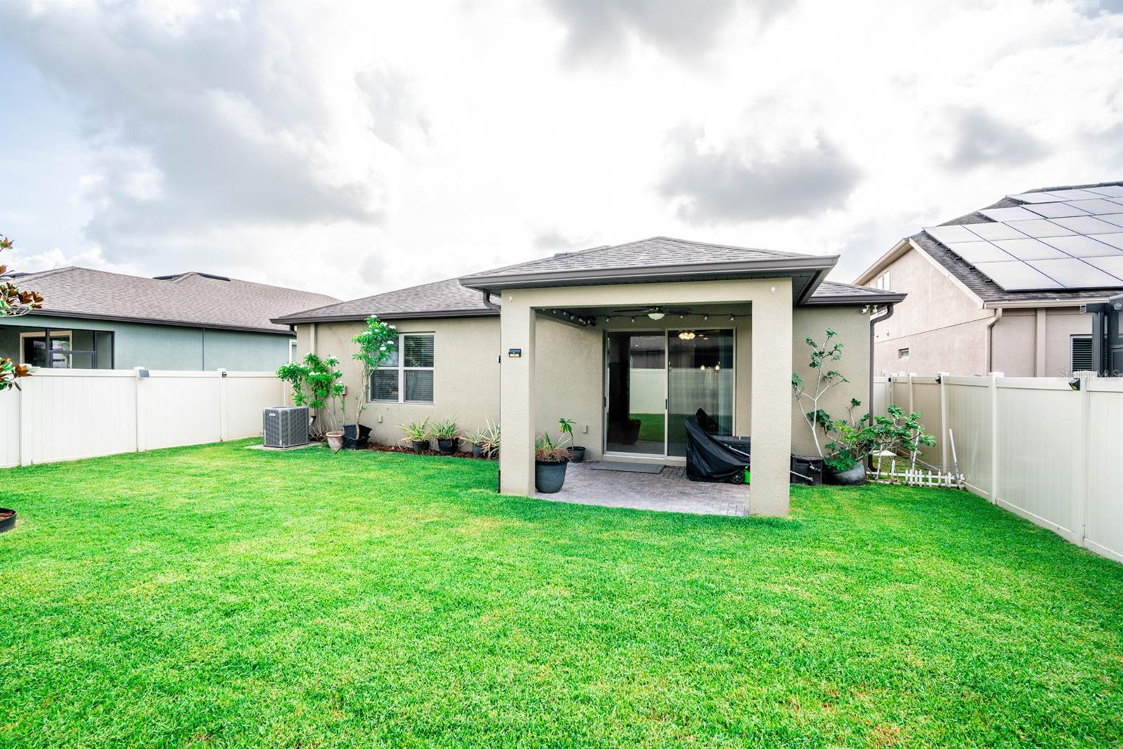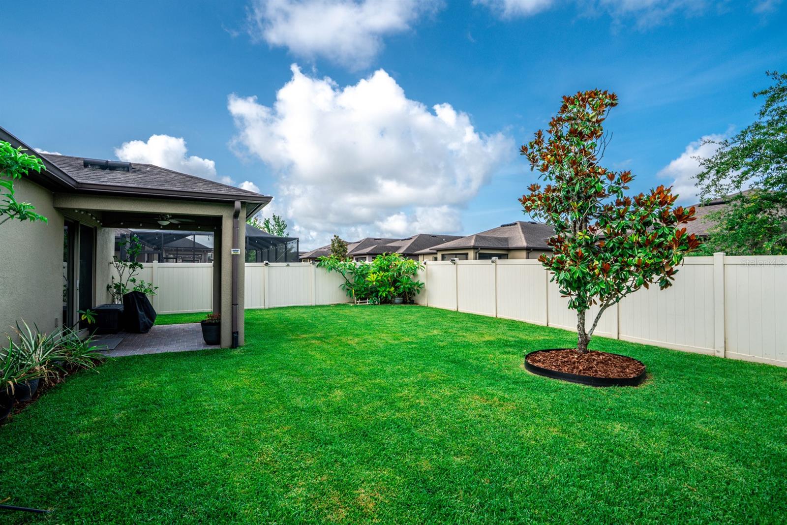 Welcome to the GATED community of Magnolia Park! This 4 bedroom, 2-bath home offers an open-concept layout with a split-bedroom floorplan. Entering the foyer, the fourth bedroom is to the right, which can also serve as a perfect home office. The two additional secondary bedrooms are tucked away with a full bath nearby. The kitchen boasts granite countertops with large center island, stainless steel appliances, recessed lighting, and overlooks the combined dining and living room. Glass sliders lead out onto the covered lanai, complete with upgraded pavers. The spacious backyard is fully fenced and provides plenty of room for outdoor activities and entertaining. Back inside, the primary bedroom features a large walk-in closet and ensuite bathroom with dual vanity sinks and a glass-enclosed shower. Added feature: 3-stage water filtration system with UV light sanitizer. Magnolia Park is conveniently located near US Hwy 301 for access to endless shopping, dining, and schooling options, and I75 for commuting into downtown Tampa, Tampa International Airport, or MacDill Airforce Base. The community amenities include a pool, splash pad, basketball court and front lawn care.