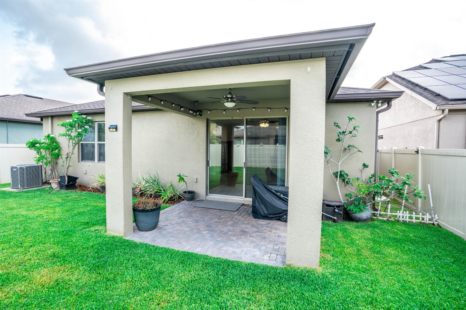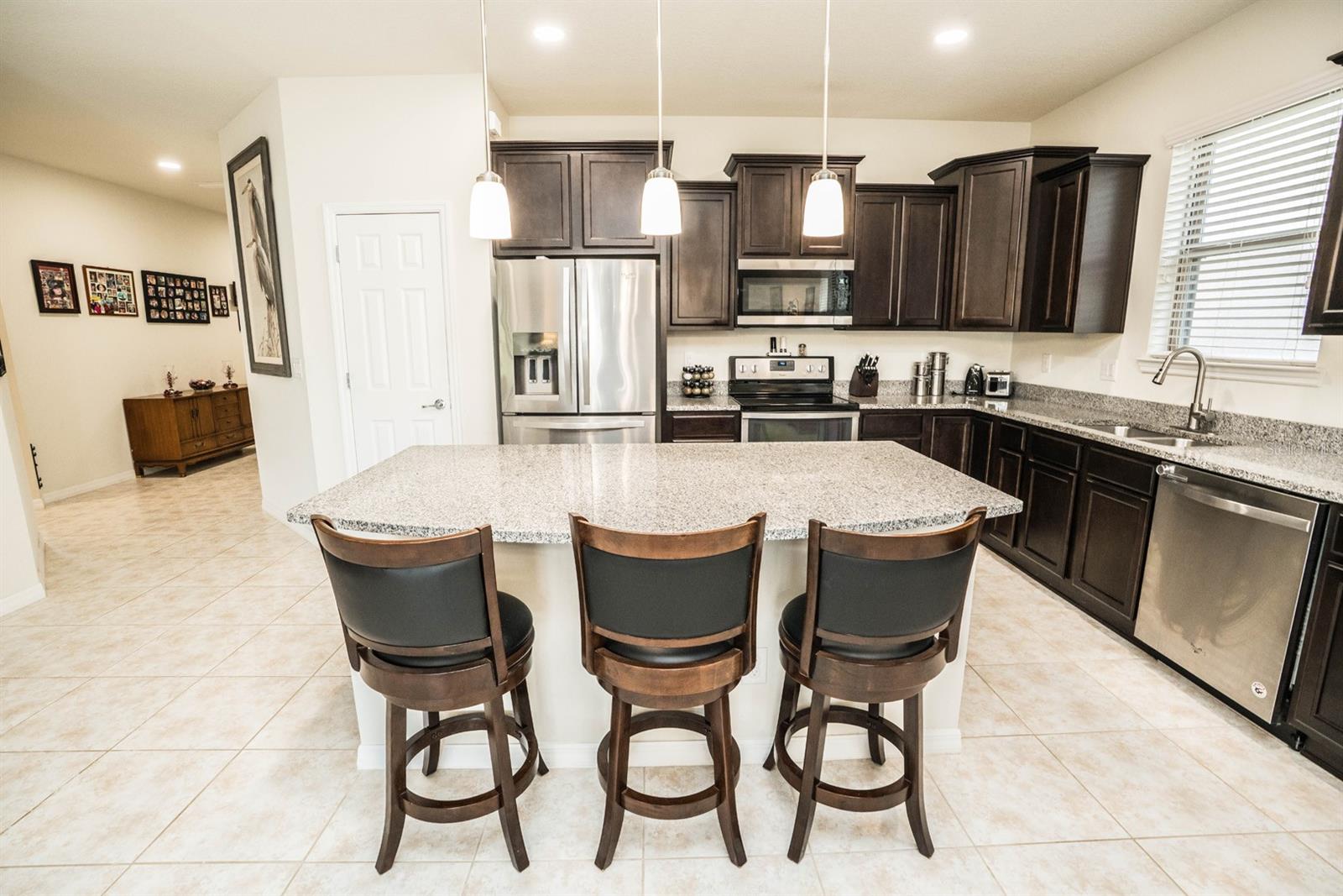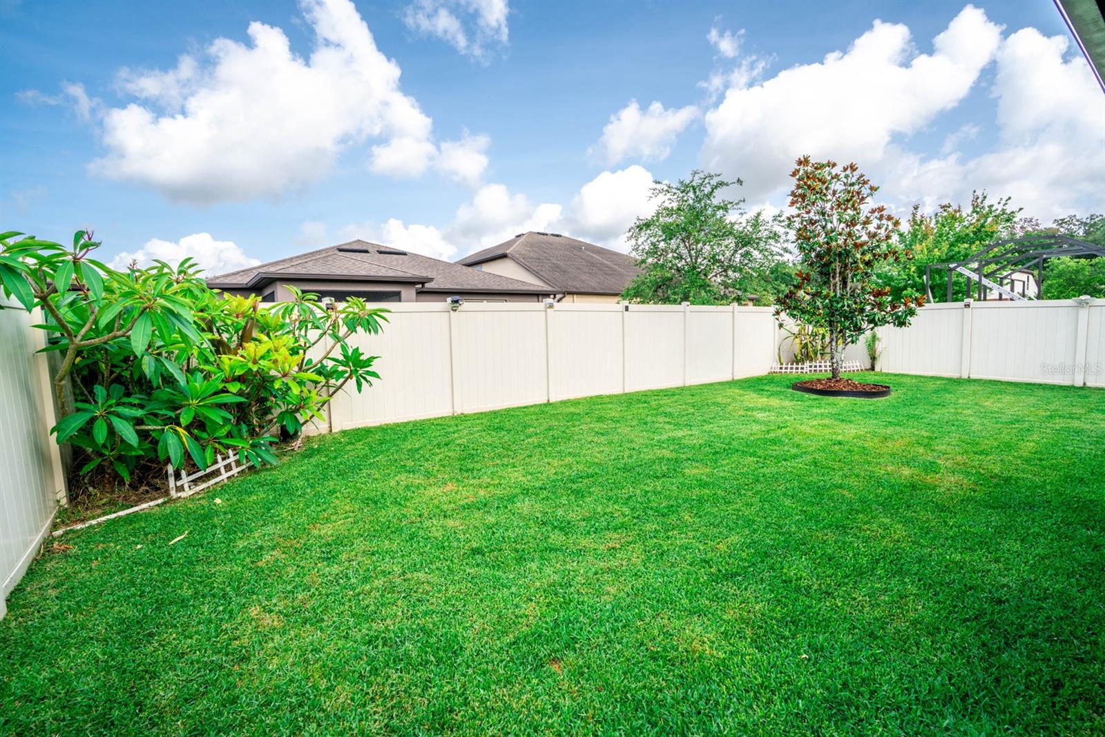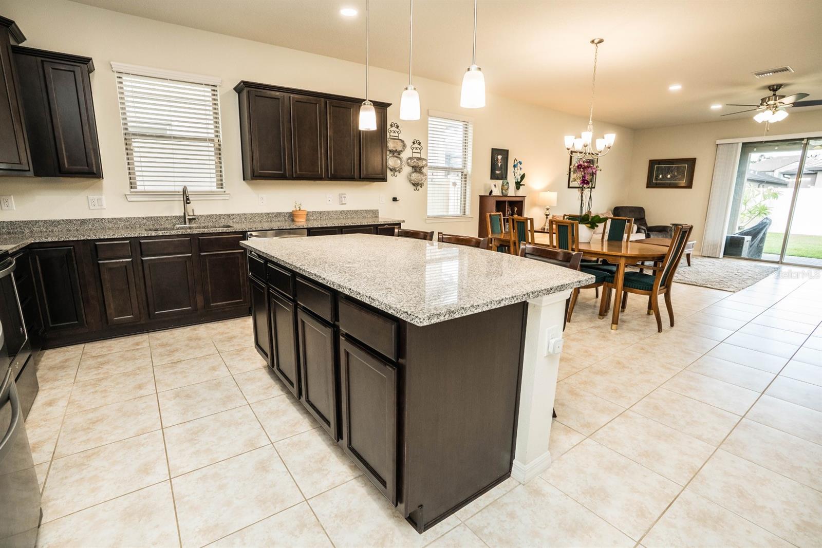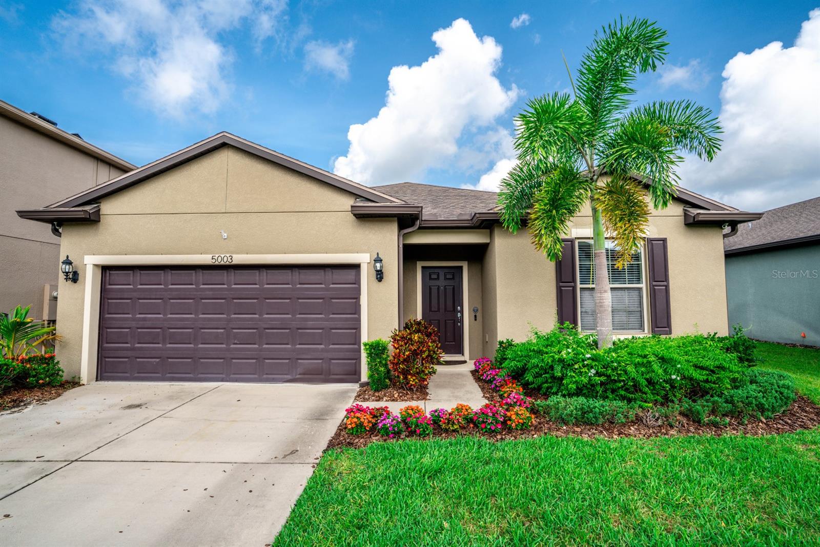Welcome to the GATED community of Magnolia Park! This 4 bedroom, 2-bath home offers an open-concept layout with a split-bedroom floorplan. Entering the foyer, the fourth bedroom is to the right, which can also serve as a perfect home office. The two additional secondary bedrooms are tucked away with a full bath nearby. The kitchen boasts granite countertops with large center island, stainless steel appliances, recessed lighting, and overlooks the combined dining and living room. Glass sliders lead out onto the covered lanai, complete with upgraded pavers. The spacious backyard is fully fenced and provides plenty of room for outdoor activities and entertaining. Back inside, the primary bedroom features a large walk-in closet and ensuite bathroom with dual vanity sinks and a glass-enclosed shower. Added feature: 3-stage water filtration system with UV light sanitizer. Magnolia Park is conveniently located near US Hwy 301 for access to endless shopping, dining, and schooling options, and I75 for commuting into downtown Tampa, Tampa International Airport, or MacDill Airforce Base. The community amenities include a pool, splash pad, basketball court and front lawn care.