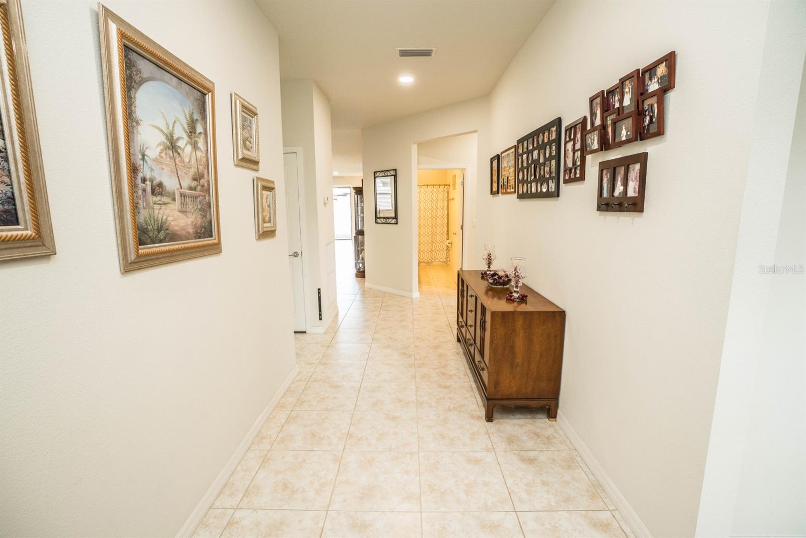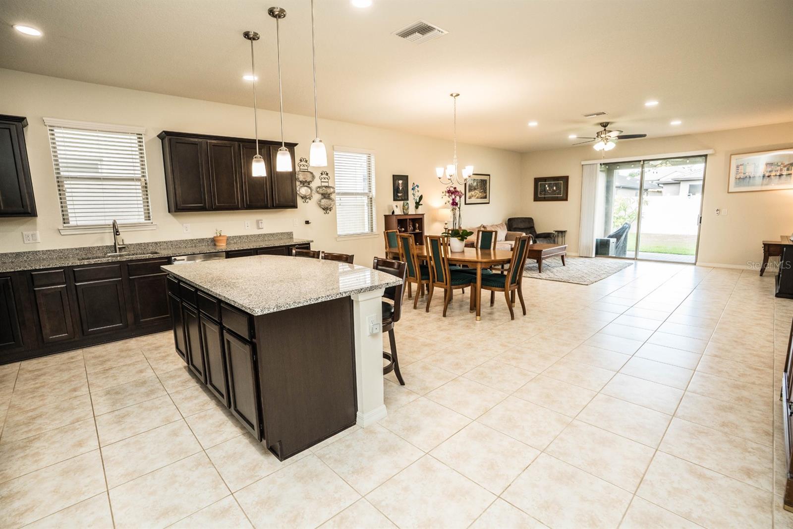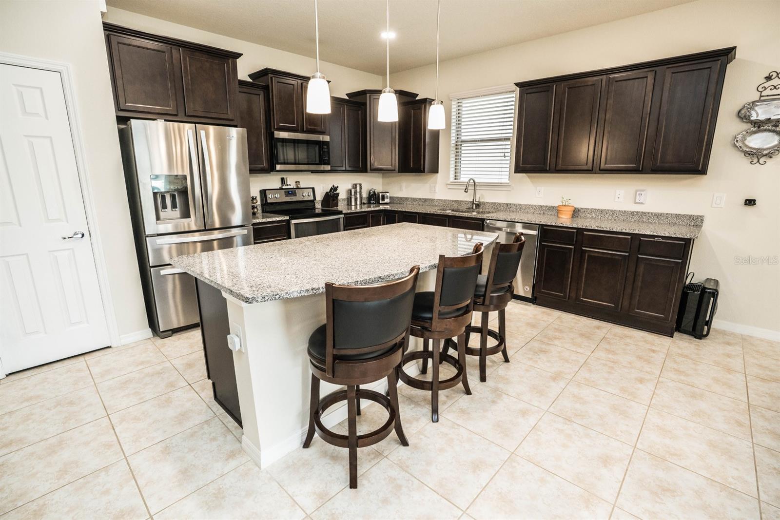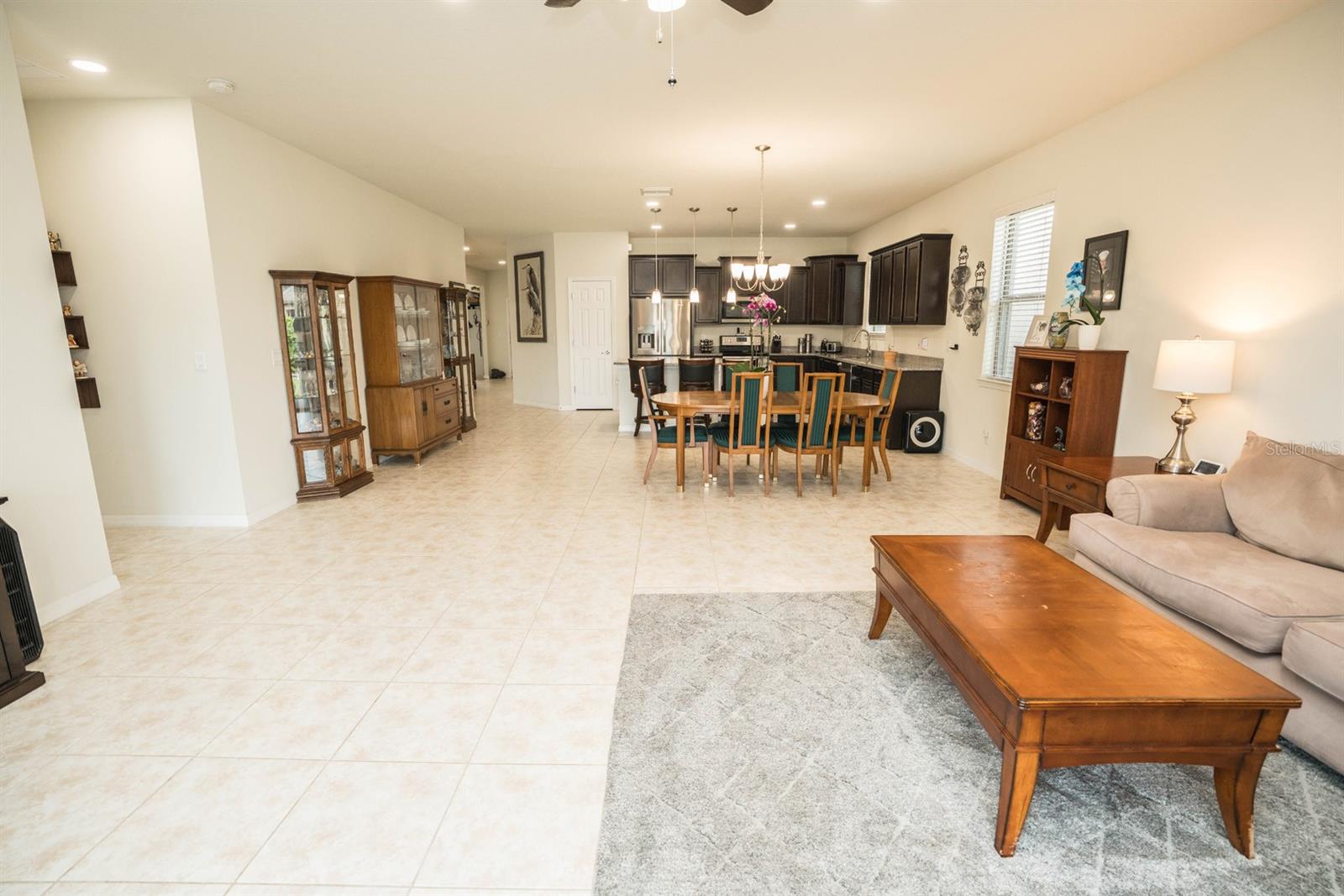 Welcome to the GATED community of Magnolia Park! This 4 bedroom, 2-bath home offers an open-concept layout with a split-bedroom floorplan. Entering the foyer, the fourth bedroom is to the right, which can also serve as a perfect home office. The two additional secondary bedrooms are tucked away with a full bath nearby. The kitchen boasts granite countertops with large center island, stainless steel appliances, recessed lighting, and overlooks the combined dining and living room. Glass sliders lead out onto the covered lanai, complete with upgraded pavers. The spacious backyard is fully fenced and provides plenty of room for outdoor activities and entertaining. Back inside, the primary bedroom features a large walk-in closet and ensuite bathroom with dual vanity sinks and a glass-enclosed shower. Added feature: 3-stage water filtration system with UV light sanitizer. Magnolia Park is conveniently located near US Hwy 301 for access to endless shopping, dining, and schooling options, and I75 for commuting into downtown Tampa, Tampa International Airport, or MacDill Airforce Base. The community amenities include a pool, splash pad, basketball court and front lawn care.