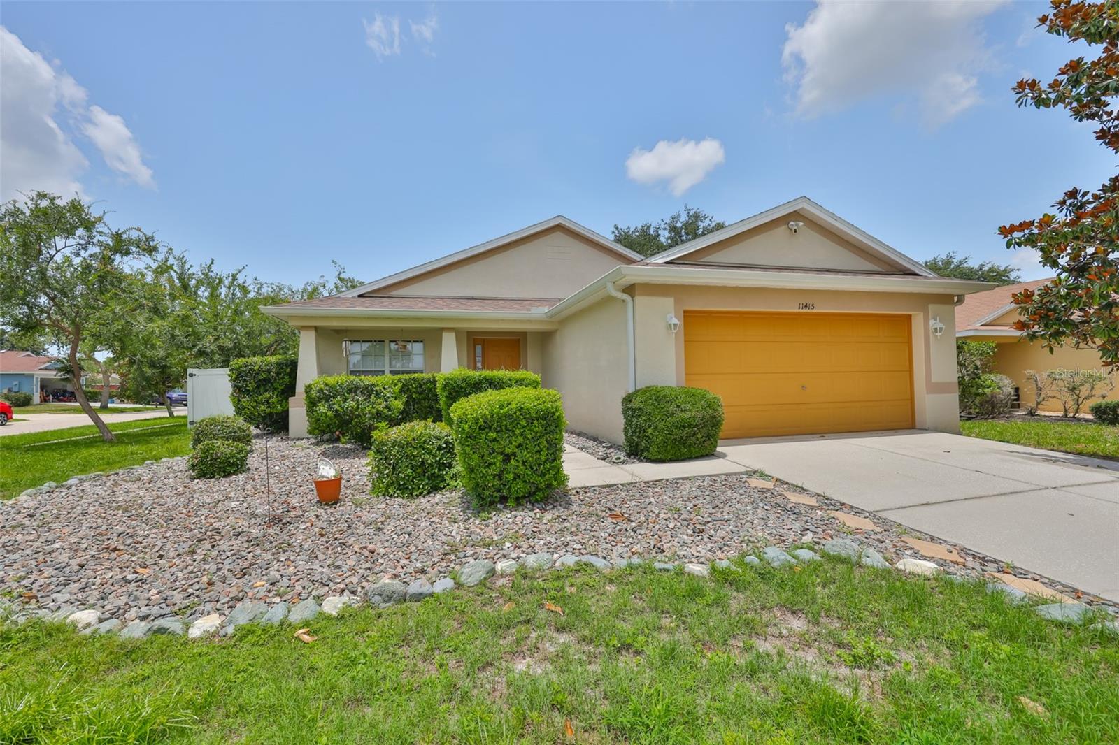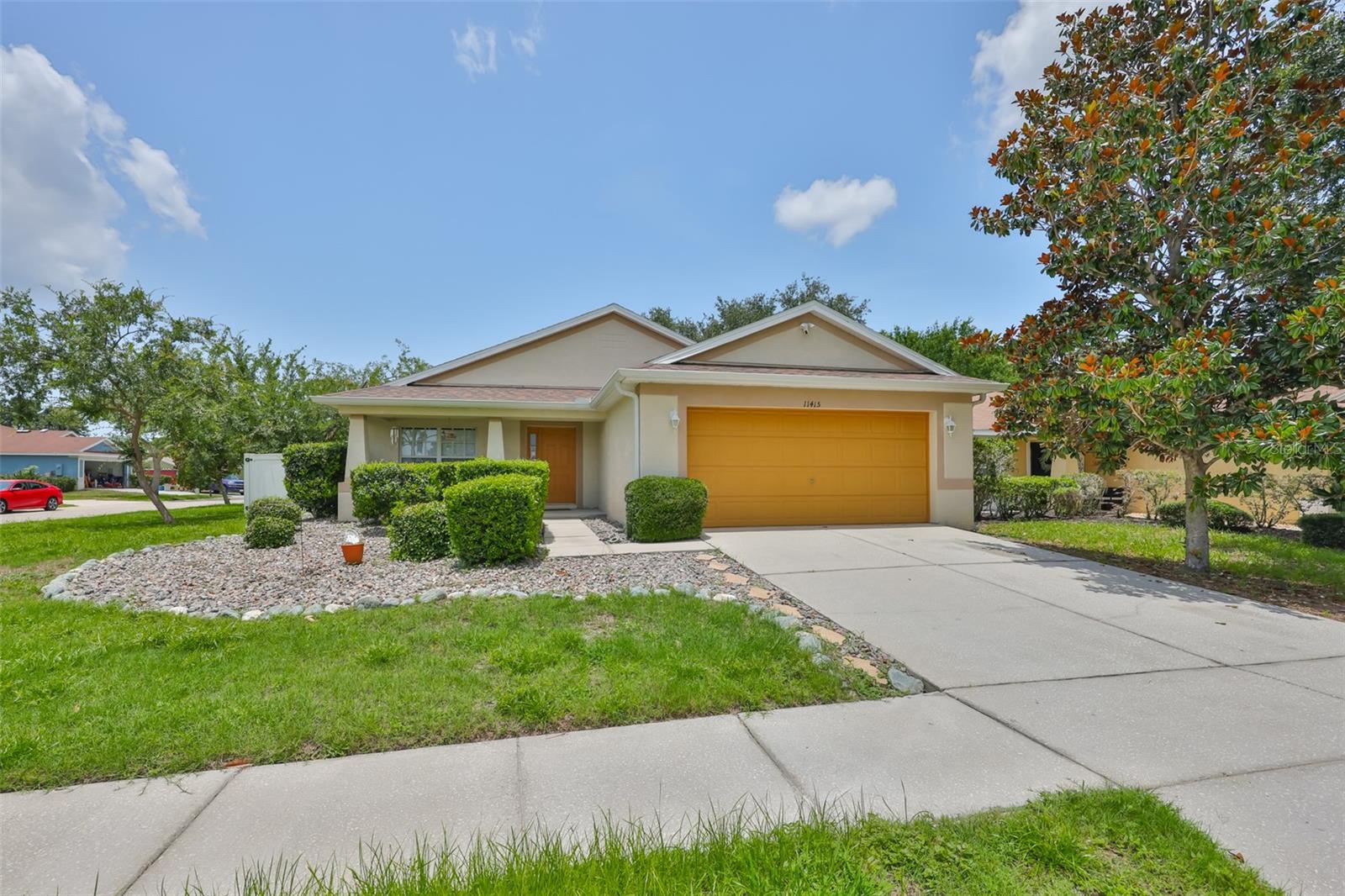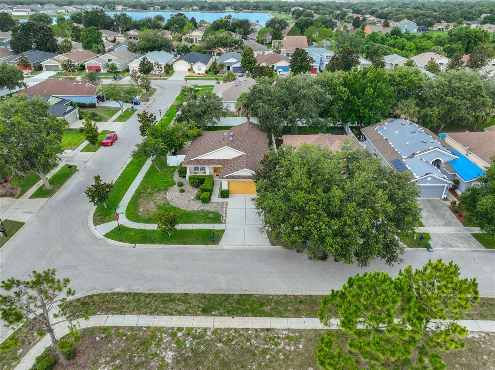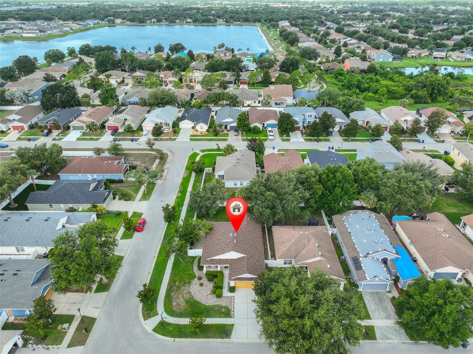 Welcome to this beautifully maintained 3-bedroom, 2-bathroom home situated on a pristine corner lot in the highly desirable Rivercrest community in Riverview. This split-bedroom floorplan offers both privacy and functionality, while soaring ceilings and abundant natural light create an open, airy feel throughout. The open kitchen features solid surface countertops, stainless steel appliances, and a breakfast bar that overlooks the spacious living and dining areas, perfect for everyday living and entertaining. A sliding glass door leads to a private, fully fenced backyard with a covered lanai and extended paver patio, ideal for relaxing or hosting guests. The primary suite features vaulted ceilings, a walk-in closet with built-in shelving, and a spa-like en suite bathroom with dual vanities, a soaking tub, and a separate shower. As a Rivercrest resident, you'll enjoy access to two community pools, a splash park, tennis and basketball courts, scenic walking trails, multiple playgrounds, and a vibrant recreation center. Conveniently located near top-rated schools, shopping, dining, I-75, I-4, and Downtown Tampa. Schedule your showing today!