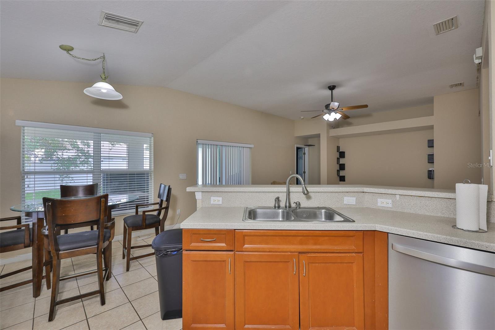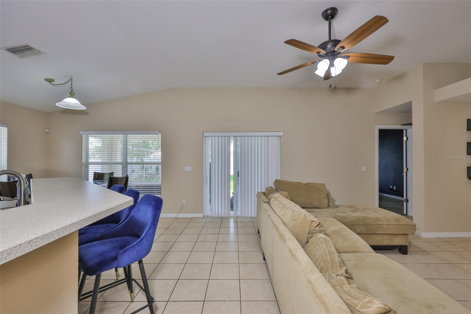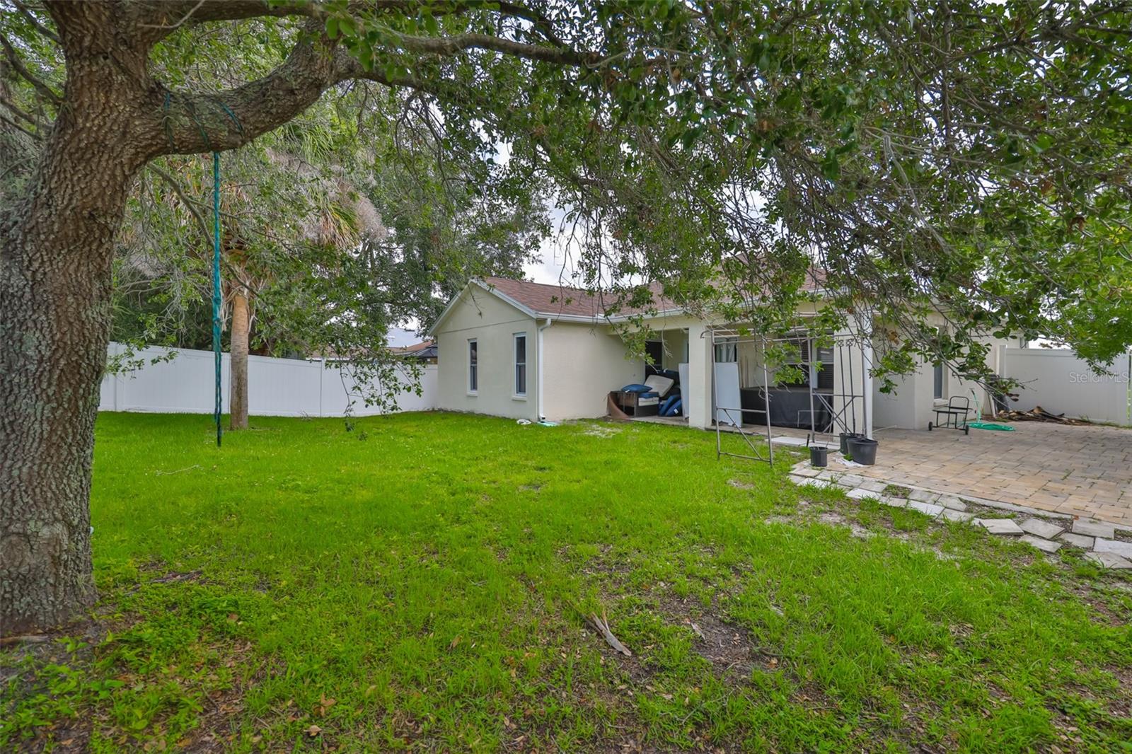 Welcome to this beautifully maintained 3-bedroom, 2-bathroom home situated on a pristine corner lot in the highly desirable Rivercrest community in Riverview. This split-bedroom floorplan offers both privacy and functionality, while soaring ceilings and abundant natural light create an open, airy feel throughout. The open kitchen features solid surface countertops, stainless steel appliances, and a breakfast bar that overlooks the spacious living and dining areas, perfect for everyday living and entertaining. A sliding glass door leads to a private, fully fenced backyard with a covered lanai and extended paver patio, ideal for relaxing or hosting guests. The primary suite features vaulted ceilings, a walk-in closet with built-in shelving, and a spa-like en suite bathroom with dual vanities, a soaking tub, and a separate shower. As a Rivercrest resident, you'll enjoy access to two community pools, a splash park, tennis and basketball courts, scenic walking trails, multiple playgrounds, and a vibrant recreation center. Conveniently located near top-rated schools, shopping, dining, I-75, I-4, and Downtown Tampa. Schedule your showing today!