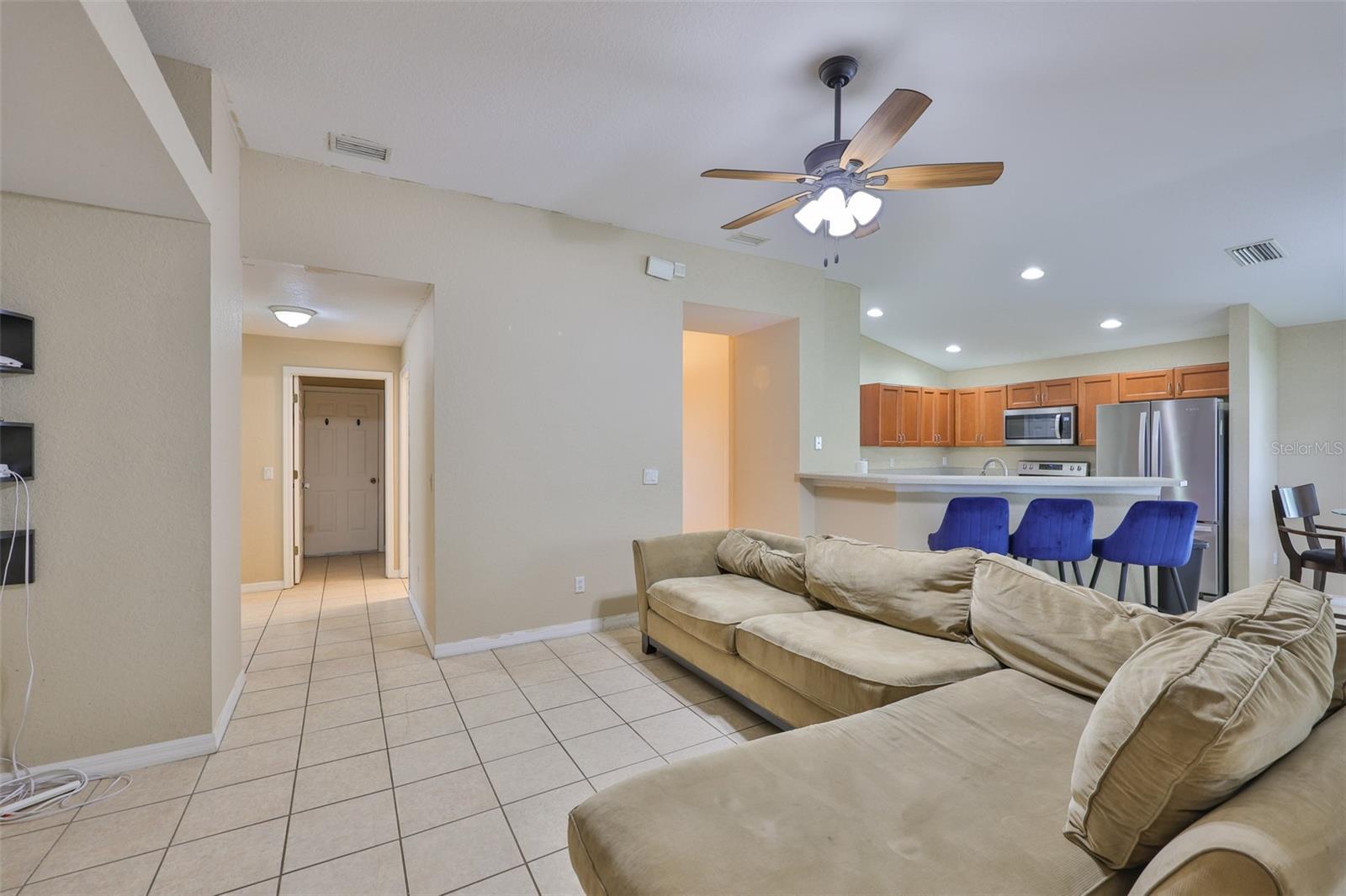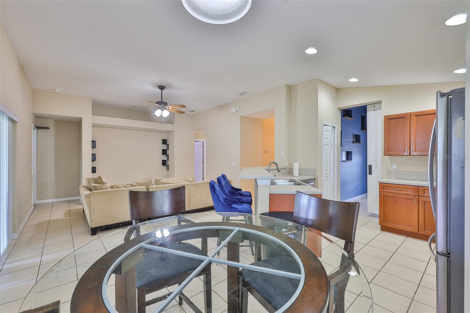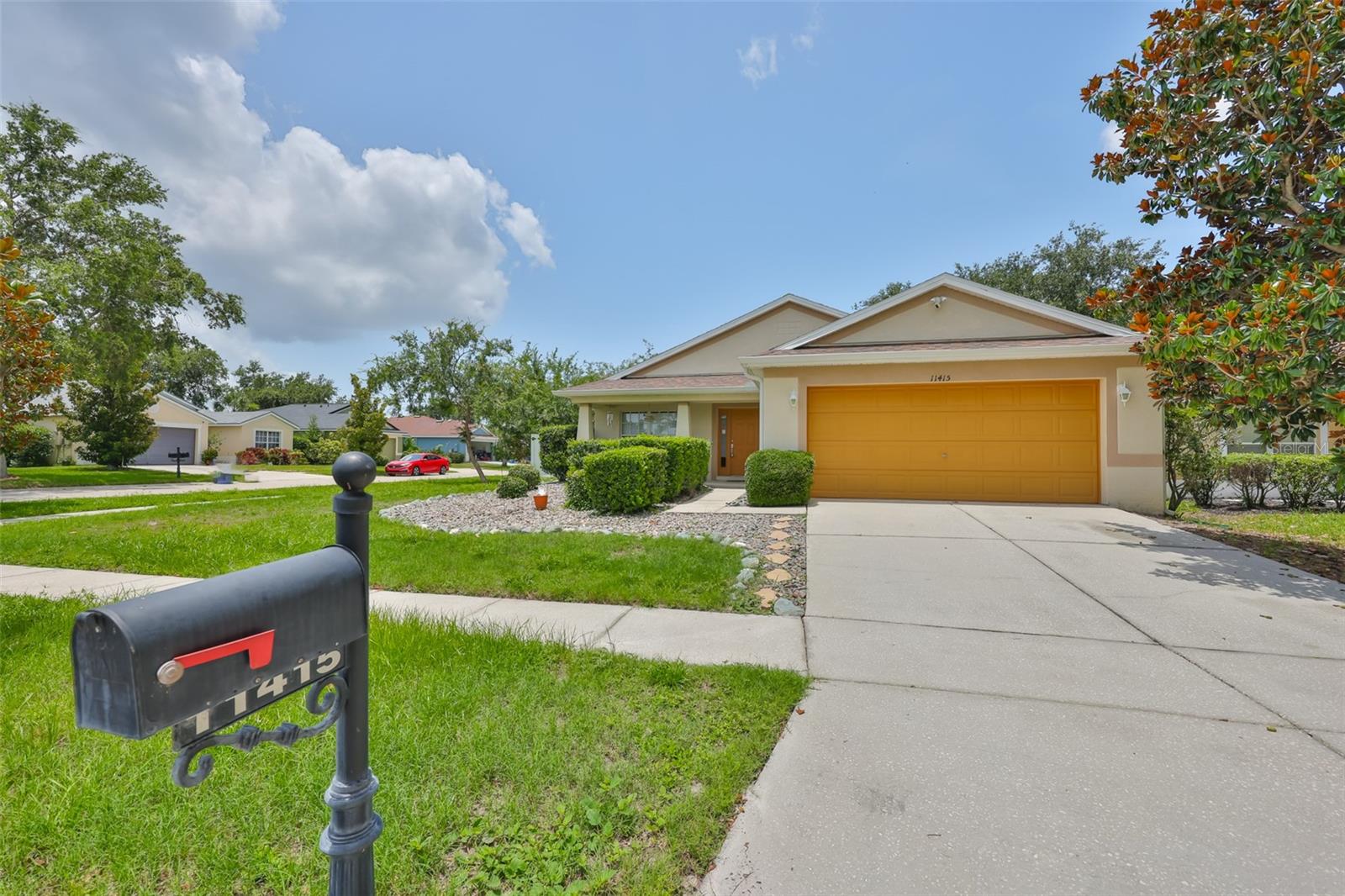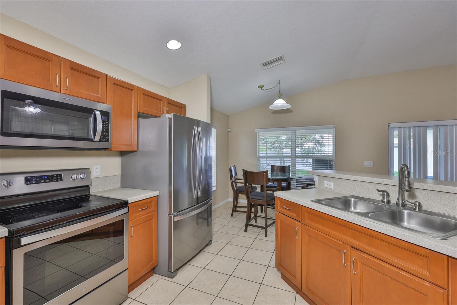 Welcome to this beautifully maintained 3-bedroom, 2-bathroom home situated on a pristine corner lot in the highly desirable Rivercrest community in Riverview. This split-bedroom floorplan offers both privacy and functionality, while soaring ceilings and abundant natural light create an open, airy feel throughout. The open kitchen features solid surface countertops, stainless steel appliances, and a breakfast bar that overlooks the spacious living and dining areas, perfect for everyday living and entertaining. A sliding glass door leads to a private, fully fenced backyard with a covered lanai and extended paver patio, ideal for relaxing or hosting guests. The primary suite features vaulted ceilings, a walk-in closet with built-in shelving, and a spa-like en suite bathroom with dual vanities, a soaking tub, and a separate shower. As a Rivercrest resident, you'll enjoy access to two community pools, a splash park, tennis and basketball courts, scenic walking trails, multiple playgrounds, and a vibrant recreation center. Conveniently located near top-rated schools, shopping, dining, I-75, I-4, and Downtown Tampa. Schedule your showing today!