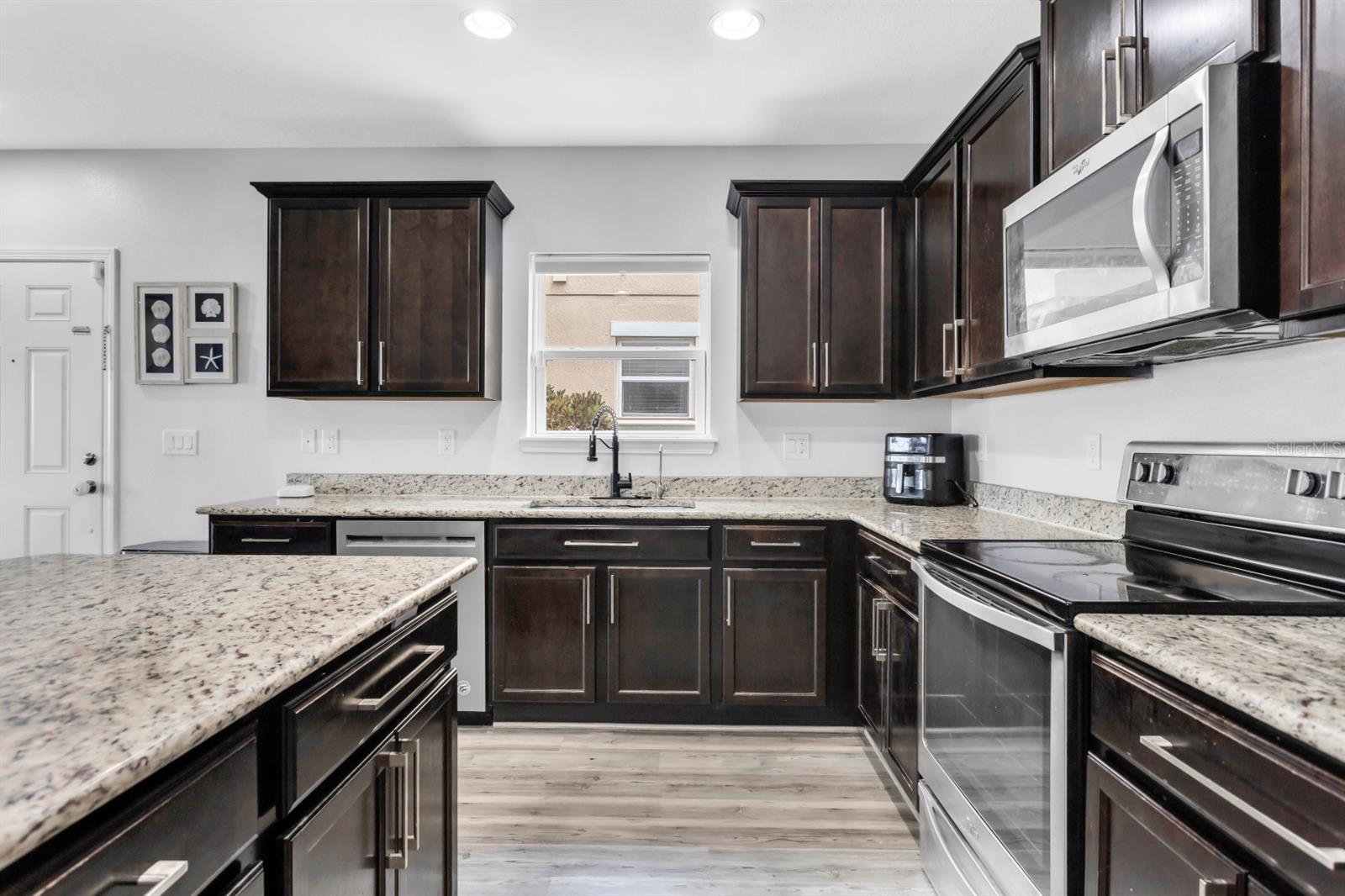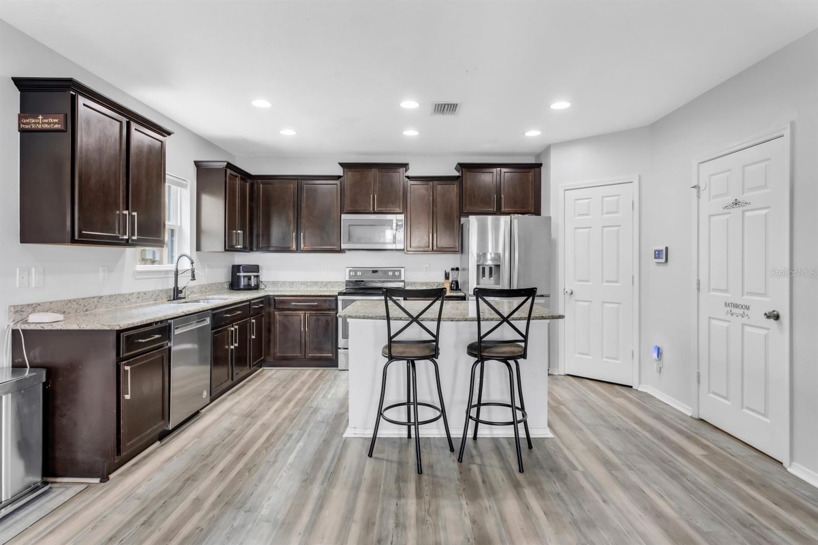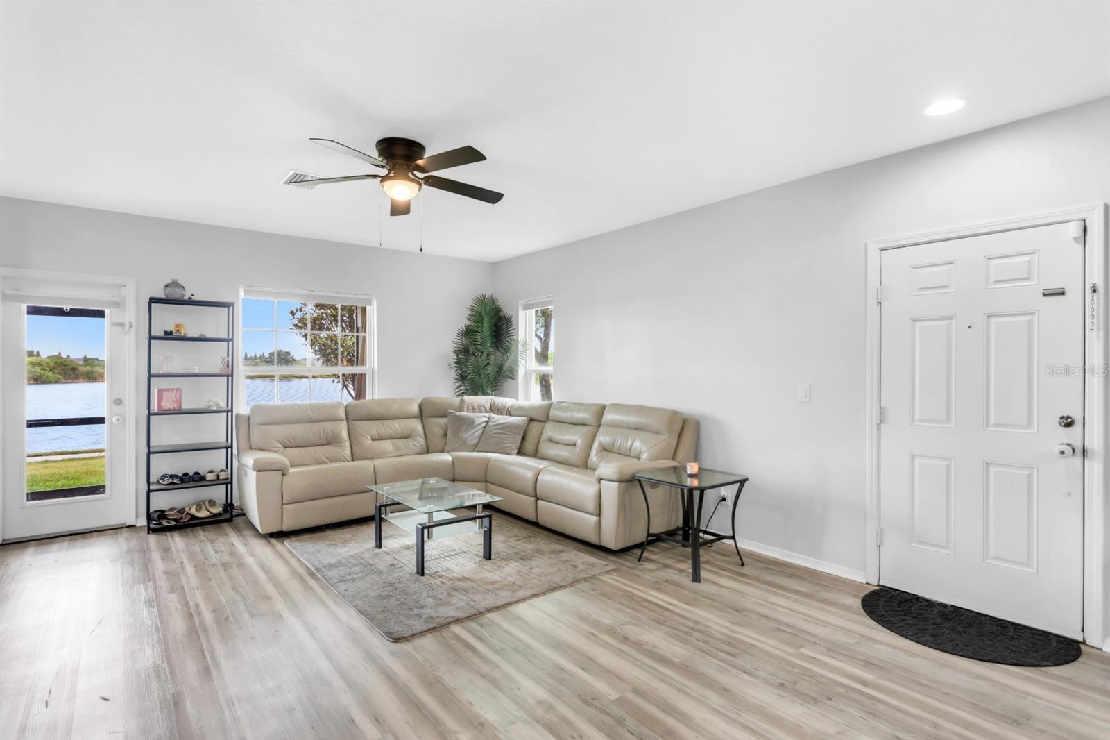 Beautiful waterfront townhome in Magnolia Park! Features include newer waterproof vinyl flooring, granite counters, stainless appliances, walk-in pantry, and a screened-in patio with serene pond views. Upstairs laundry, generous storage, and spacious layout. Enjoy community perks like a pool, splash pad, trails, dog park, and more. Just 15 minutes to downtown Tampa?low-maintenance living in a peaceful setting.