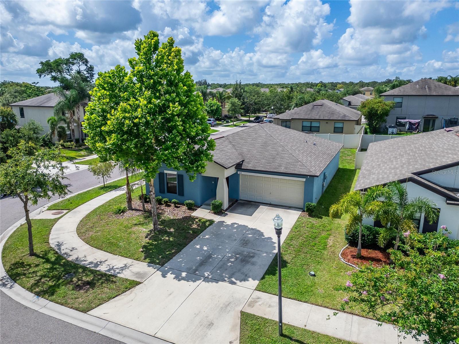 Welcome to this beautifully charming home situated on a desirable corner lot, in the highly desirable Twin Creek neighborhood! This delightful residence showcases thoughtful design and modern comfort throughout its 3 spacious bedrooms, 2 well-appointed bathrooms and 2 car-garage. This well-maintained home offers a spacious and functional layout, ideal for both everyday living and entertaining. From the moment you arrive, you’ll be captivated by the long driveway, curb appeal and generous yard space that wraps around the property, perfect for both play and quiet outdoor enjoyment. Inside, this home features a bright, open-concept layout that flows seamlessly from the spacious family room to the dedicated dining area and modern kitchen—complete with plenty counter space, sleek cabinetry, tile flooring, and a full suite of matching appliances, which includes a refrigerator, range, microwave, and dishwasher. An oversized walk-in pantry adds both style and functionality, offering abundant storage and tying the space together beautifully for effortless everyday living and entertaining. Retreat to the serene master suite, where comfort meets sophistication. Enjoy a luxurious walk-in closet and a spa-like en-suite bathroom with dual vanities—designed to accommodate both relaxation and practicality. Two additional bedrooms with flexible space for family, guests, or a home office. A spacious two-car garage adds everyday convenience and abundant storage options. Additionally, the outdoor space is perfect for enjoying the Florida sunshine or hosting BBQs with friends and family. Twin Creek is more than just a neighborhood—it’s a community where families thrive. Enjoy the beautiful community pool with plenty of deck space, ideal for catching some rays and cooling off during those warm and sunny Florida days. Conveniently located just minutes from premier shopping centers, esteemed educational institutions, medical facilities, great schools, baseball sporting facilities, Publix’s, Sams Club and a diverse range of dining establishments to name a few. With easy direct access to 301, Selmon Expressway, and I-75, this home provides a quick commute and easy access to all that Tampa Bay offers. Schedule your private tour today! Virtual tour available via the provided link.