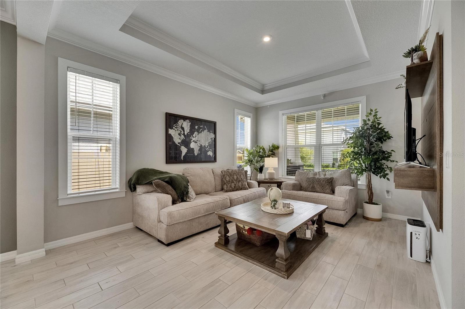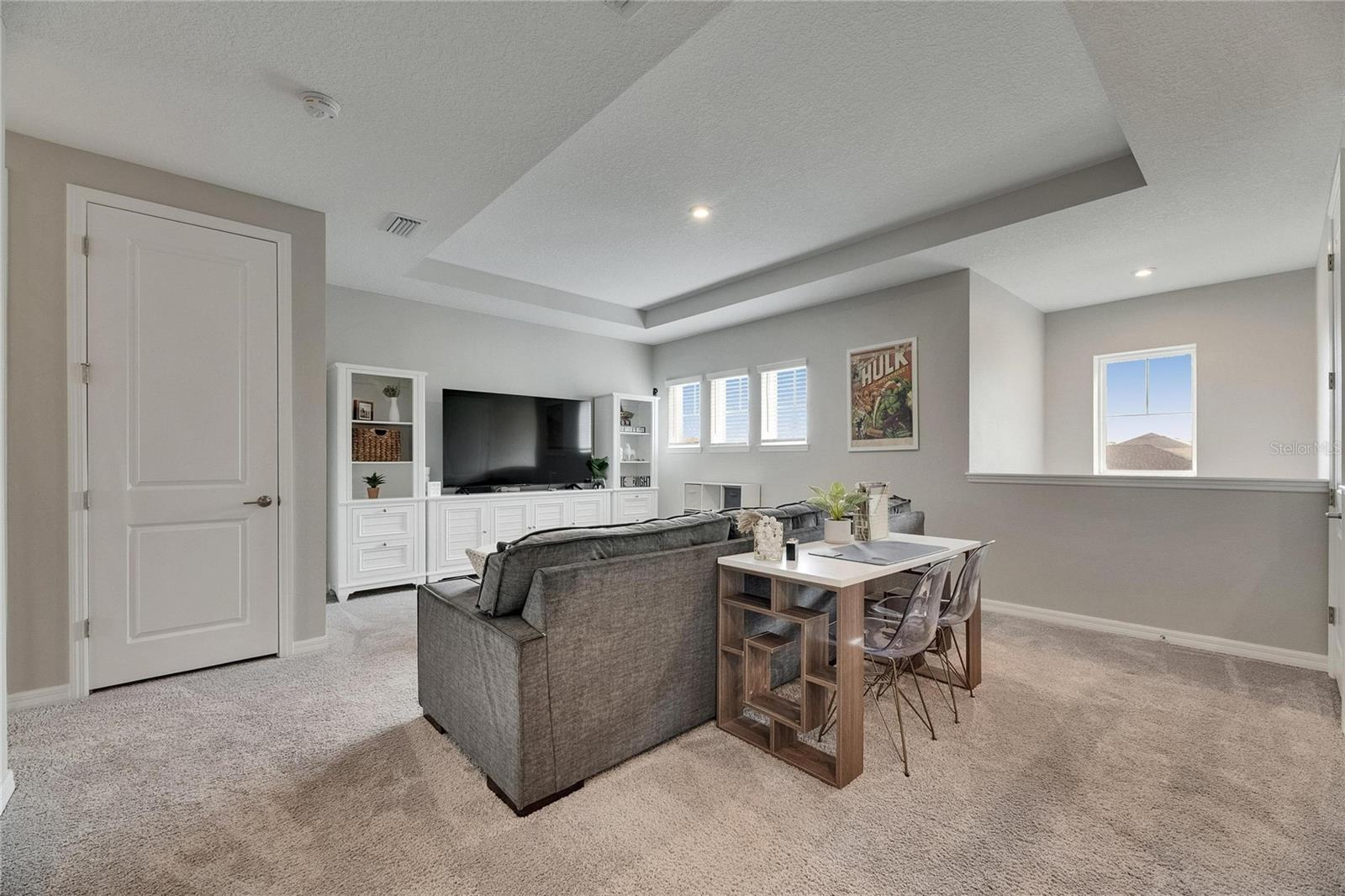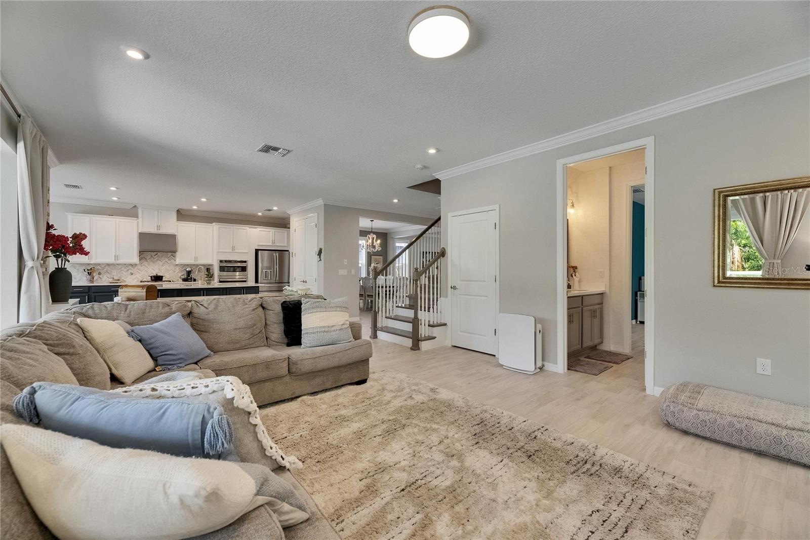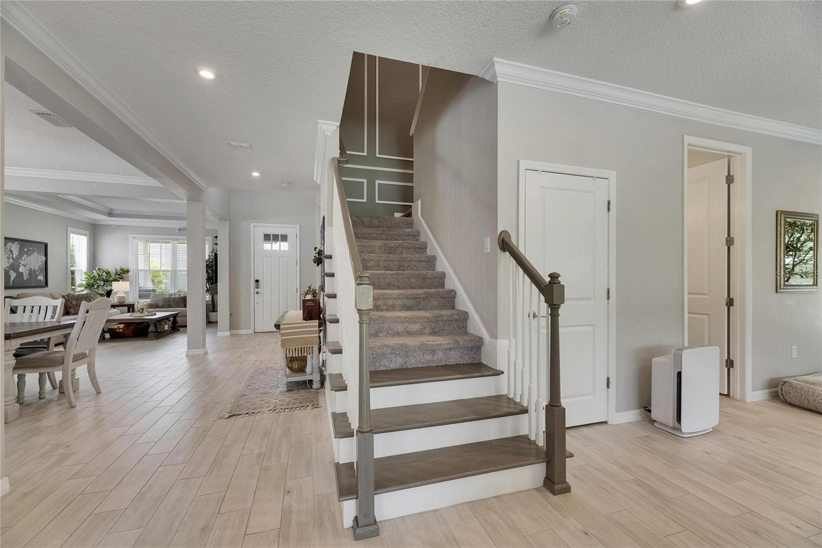 10399 Boyette Brook Street | Echo Park, Riverview 5 Beds | 4 Baths | 3,506 Sq Ft | No CDD | Oversized Lot on a Cul-de-Sac Welcome to the home and double lot you've been waiting for—nestled on a quiet cul-de-sac in the highly sought-after Echo Park community, this 2022 Taylor Morrison-built Barbados floorplan offers 5 bedrooms, 4 bathrooms, and over 3,500 square feet of flexible living space. Best of all, there are no CDD fees. Located in the heart of Riverview’s popular Boyette area, this two-story home sits on one of the largest lots in the neighborhood. Enjoy curb appeal with a welcoming front porch, lush landscaping, and an oversized fenced backyard with covered lanai for outdoor living. Inside, the home features soaring ceilings, crown moulding, 8’ interior doors, tray ceilings, upgraded lighting, and wood-look tile throughout the first floor. The gourmet kitchen is a true highlight—offering quartz countertops, a gas cooktop, upgraded backsplash, a walk-in pantry, and a large center island with pendant lighting. There’s ample cabinet space and a convenient pass-through to the formal dining room. A cozy café-style breakfast nook with bay windows adds charm and natural light. The spacious family room features large sliding glass doors that lead to the backyard. The main level is open and adaptable, with space for a home office, formal living and dining, and a private guest suite tucked away for visitors. Upstairs, you'll find a large loft/game room, four more bedrooms, and three additional bathrooms. The owner’s suite includes its own private balcony, a large walk-in closet, dual vanities, a garden tub, and a walk-in shower. This is a rare opportunity to own a home on an oversized lot in a tucked-away location with no CDD and easy access to HIGHLY RATED SCHOOL, shopping, dining, and major highways. Move-in ready and loaded with upgrades.
