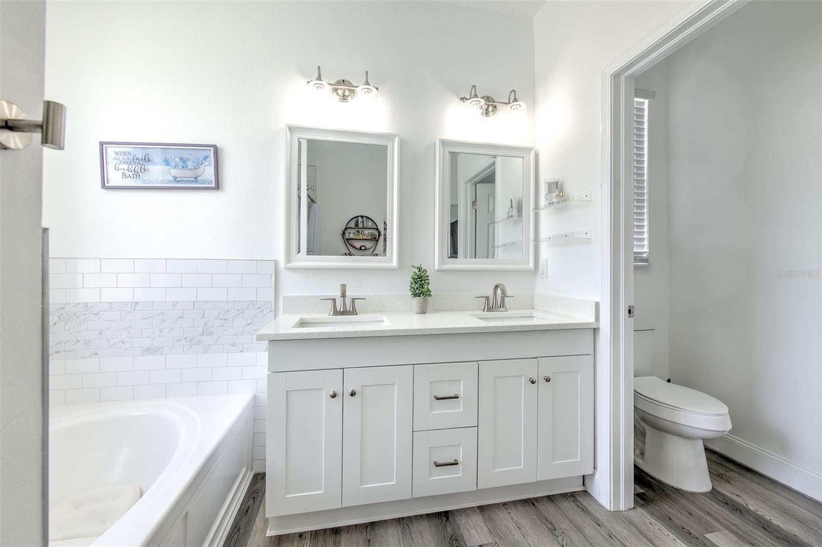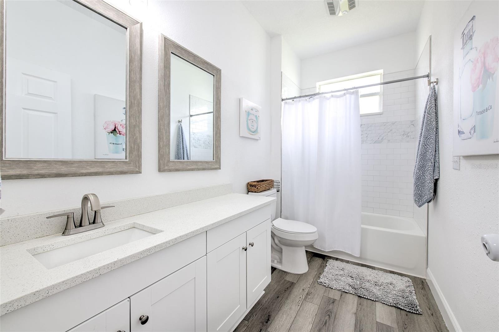 This completely updated 4-bedroom, 2-bathroom, 3-car garage home offers the perfect blend of style, comfort, and convenience. From the moment you arrive, you'll appreciate the attention to detail and thoughtful upgrades throughout and you will have peace of mind with a NEW ROOF and AC added at the end of 2023. The heart of the home features a modern, open-concept layout with updated flooring, tons of natural light, and a sleek kitchen complete with stainless steel appliances, quartz countertops, and ample cabinetry. The spacious living and dining areas provide the perfect setting for entertaining or quiet family nights. Retreat to the generously sized primary suite, where you'll find a massive walk-in closet and a spa-like ensuite bathroom featuring a separate shower, a luxurious soaking tub, and dual sinks with plenty of counter space. Three additional bedrooms offer versatility and comfort, each with generous closet space and easy access to the updated second bathroom. Outside, enjoy the privacy of a fully fenced backyard—ideal for pets, gatherings, or outdoor entertaining. There’s plenty of room to create your dream garden, play space, or custom patio retreat. Located just minutes from shopping, dining, and everyday conveniences, this home delivers on location and lifestyle - making it the perfect place to call home!