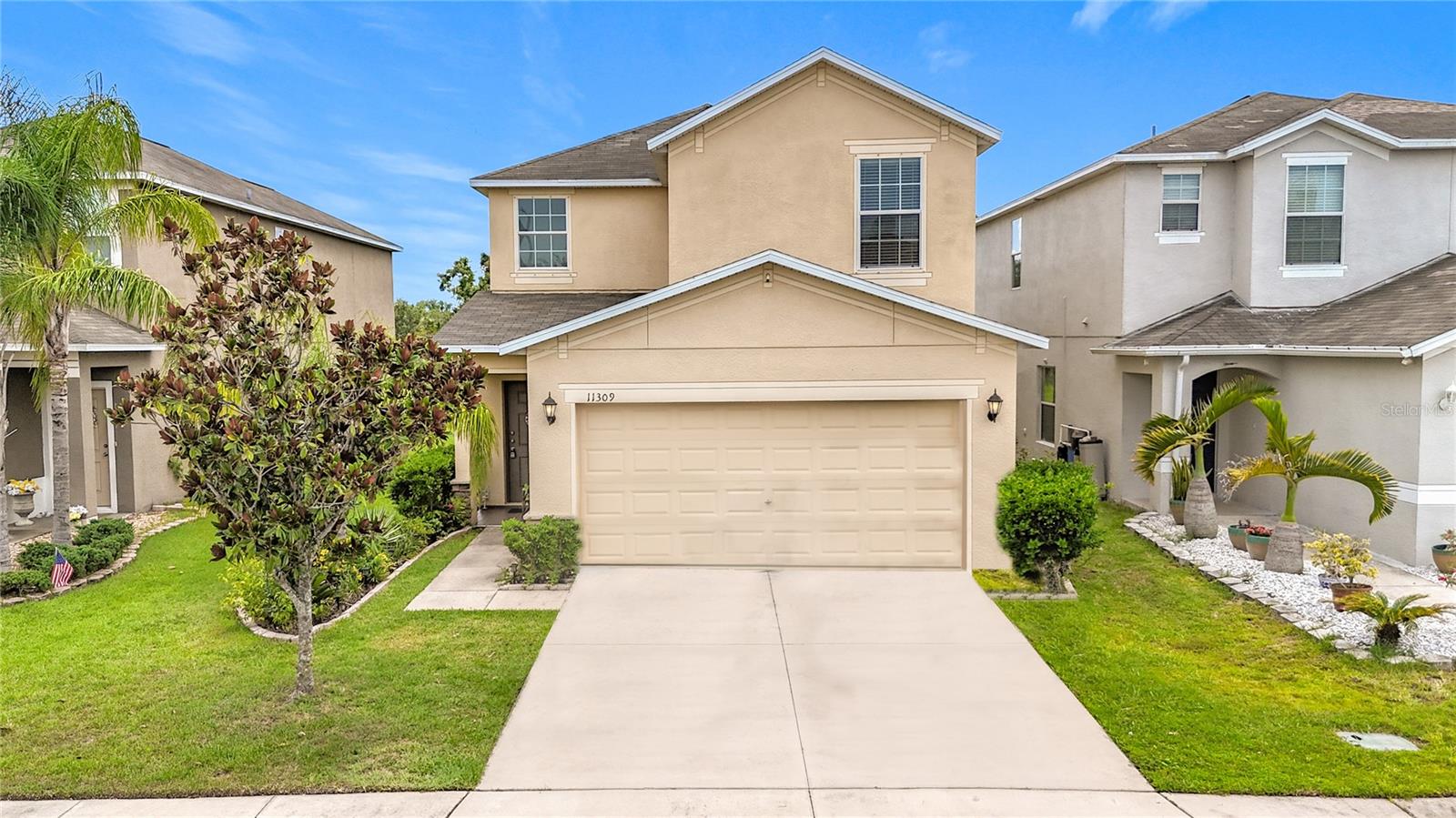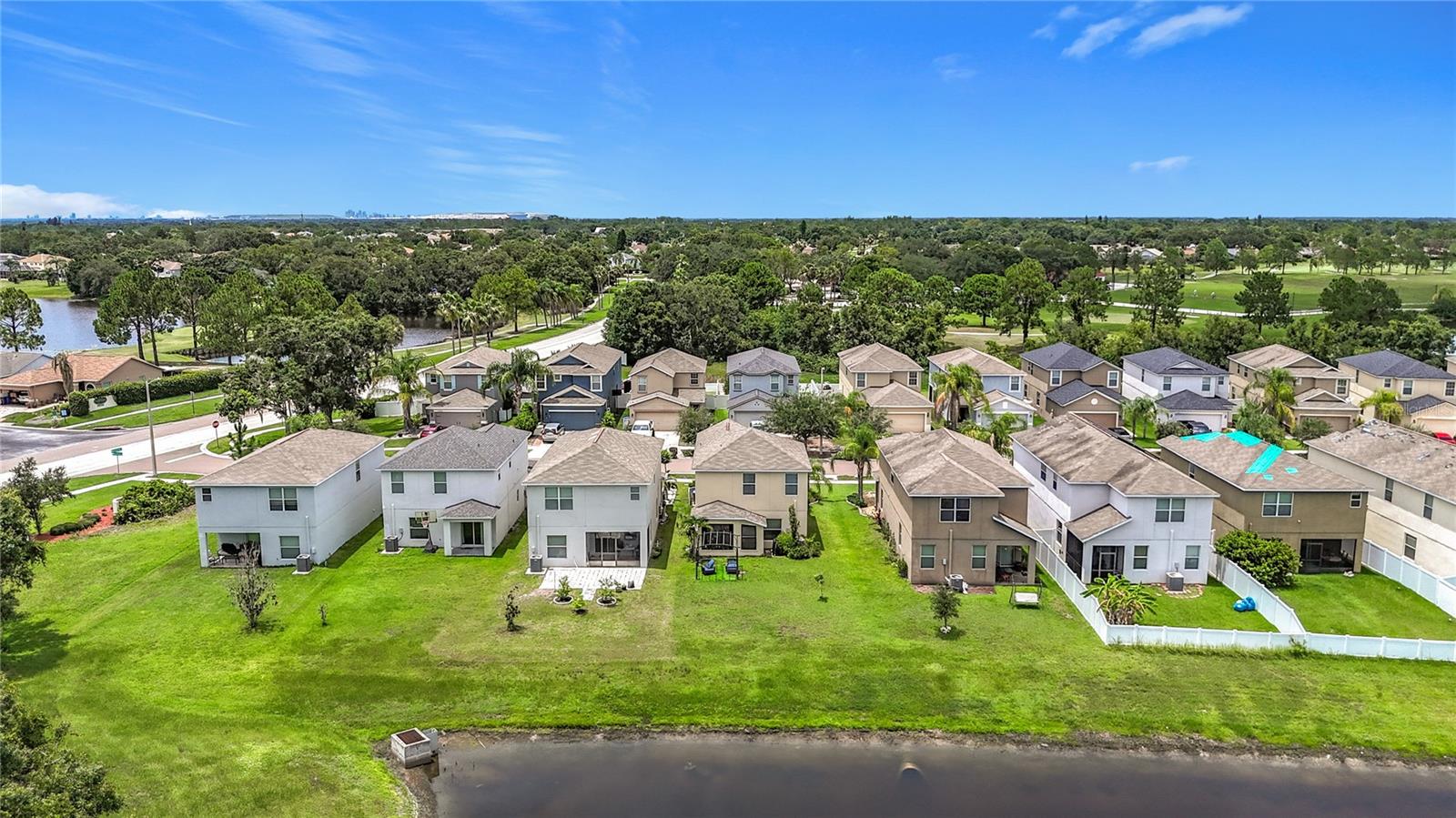 MOVE IN READY two-story home located in the sought-after Summerfield community offering resort-style amenities. NO CCD FEE AND LOW HOA FEE!!! This 3-bedroom, 2.5-bath home features a spacious layout with all bedrooms, including the master suite, located on the second floor for privacy. Enjoy tranquil pond views from the comfort of your covered lanai, perfect for morning coffee or evening relaxation. The main living area offers an open concept designed ideal for entertaining, and the two-car garage provides plenty of storage. Residents of Summerfield enjyo access to two community pools, a fully equipped fitness center, tennis, basketball courts and scenic walking paths. With easy access to I-75, shopping, dining, and top rated schools, this home combines comfort, convenience, and community lifestyle. Don't miss your chance to live in this vibrant golf course neighborhood with serene water views! SELLER WILL PROVIDE BUYER WITH CLOSING COSTS ASSISTANCE!!!