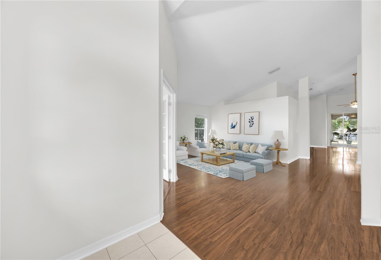 One or more photo(s) has been virtually staged. "SOUTH FORK" A spectacular home that greets you with a vibrant front door that opens to the sweeping views of high ceilings and the living space, dining room, and see through to the fenced-in backyard! The home is in one of the nicest neighborhoods in South Tampa! Florida luxury living at its finest. A subdivision of South Fork (Meadow Glen) tucked away on a premium lot and in a very friendly neighborhood. With a 3-way split floor plan, this home features 4 bedrooms and 3 full bathrooms. The great curb appeal is complemented by a large 3-car garage and front door. Natural light fills the home, and the high ceilings create a grand, airy feel. The kitchen boasts an abundance of counter space, corian countertops, beautiful wood cabinets, stainless steel appliances, a breakfast bar, a family room and living room. A great home office as you enter the front door and even space for a cozy dinette area. The kitchen seamlessly flows into the family room and opens up to the back patio, allowing for effortless entertaining whether you’re in the kitchen, family room, or outside. The primary bedroom offers an oversized closet and an en-suite bathroom. The luxurious en-suite bathroom includes an oversized garden tub, dual sinks, and a walk-in shower. The split floor plan includes one guest bedroom with a bathroom that exits to the lani. This home has two additional bedrooms with a shared bathroom. The outdoor space is perfect for relaxing or entertaining, featuring a large, covered patio with a screened enclosure. This home is truly move-in ready with a new A/C system (2022), a new water heater (2025), a home water filtration system, new gutters in front and back(2022), new paint outside (2022). The South Fork community offers great amenities, including a community pool, parks, playground, basketball courts, tennis courts, and walking trails. Conveniently located near excellent shopping, dining, and a variety of activities such as indoor skydiving, golfing, and just a short drive to theme parks, the airport, and much more! Give me a call today to see this fabulous home.