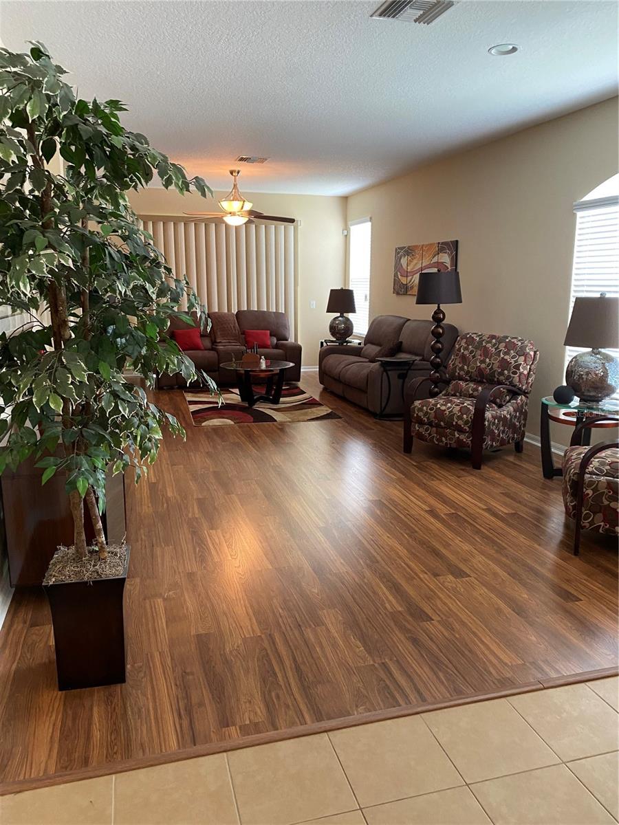Discover tranquility in this charming 3-bedroom 2-bathroom villa, located within the gated section of the highly desirable Panther Trace community. Upon entry, you will appreciate the open and airy floor plan, featuring tile flooring in the living and dining areas that extend into a generous screened-in lanai and ideal space for entertaining or just relaxing. The master suite serves a personal retreat, offering direct access to the lanai, a tray ceiling, and two closets and two upgraded ceiling fans. The kitchen is to delight any culinary enthusiast, granite countertops, a breakfast bar, and essential appliances, built microwave, and dishwasher. The spacious pantry provides ample storage for all necessities. The master bathroom exudes luxury, creating a-like experience perfect for relaxation. Additional highlights include a roof that is less than two years old and a 2-car garage for parking and extra storage. Residents of this exclusive gated area enjoy access to a private pool, as well as the extensive amenities Panther Trace offers, a clubhouse, community pool, tennis pickleball courts, soccer fields, and basketball courts. The location is unparalleled with convenient proximity to shops, restaurants, and major highways. Schedule a private tour today to experience why this villa is perfect place to call home. All room should be independently verified by the buyer. The primary bedroom is notably spacious and features updated flooring.