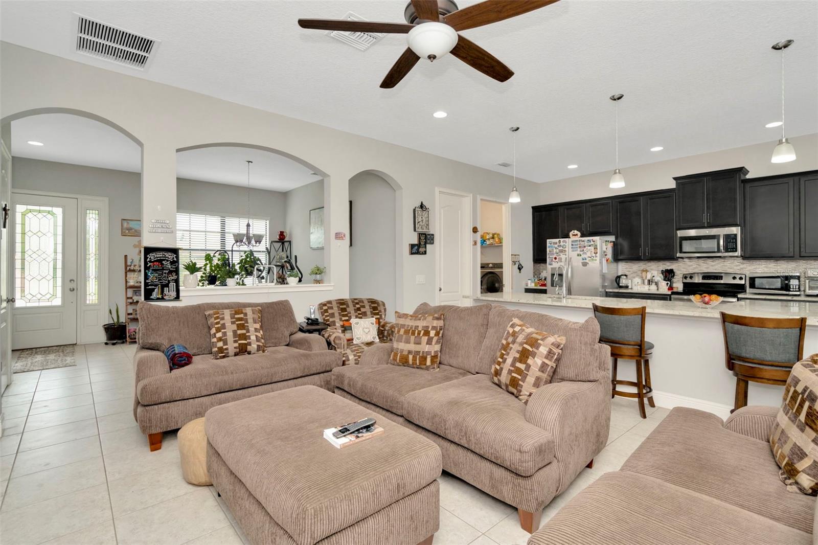 Welcome to your Elegant Sanctuary in the heart of Riverview, Florida. Experience elevated living in this exquisite William Ryan-built residence showcasing the sought-after Canaveral floor plan in the exclusive, gated enclave of Providence Ranch a boutique community of just 21 distinguished homes. From the moment you arrive, impeccable curb appeal sets the tone, with lush professional landscaping a stately front entry and timeless architectural accents that exude curbside charm and sophistication. Inside, a bright, open concept layout unfolds beneath soaring 10-foot ceilings and 8-foot interior doors, lending an airy, grand ambiance throughout. Rich bamboo wood flooring flows across the expansive living spaces, including three over-sized bedrooms and a dedicated home office/study, perfect for today's lifestyle needs. At the heart of the home, the chef's kitchen is a culinary showpiece, appointed with stone countertops, custom cabinetry, stainless steel appliances, and an oversized island that anchors the open dining and living areas. Whether entertaining or unwinding, this seamless flow offers both elegance and ease. The primary suite is a luxurious private retreat, adorned with tray ceilings, walk-in closets, and a luxurious spa-style bathroom complete with a soaking tub, glass enclosed shower and dual vanities. Secondary bedrooms are generously proportioned and thoughtfully designed offering comfort and privacy for family or guests. Step outside to your covered lanai and enjoy a beautifully manicured backyard oasis, ideal for Florida's year-round outdoor living. Whether you are enjoying morning coffee, hosting weekend BBQs, or unwinding after a long day, this space offers the perfect blend of serenity and style. Centrally located this home offers convenient access to top rated schools, shopping and major commuting routes-making it as practical as beautiful.