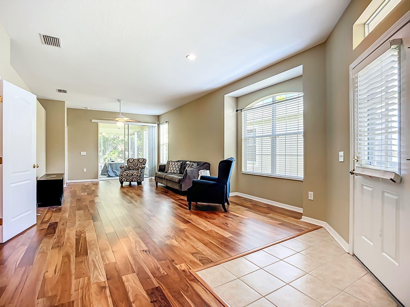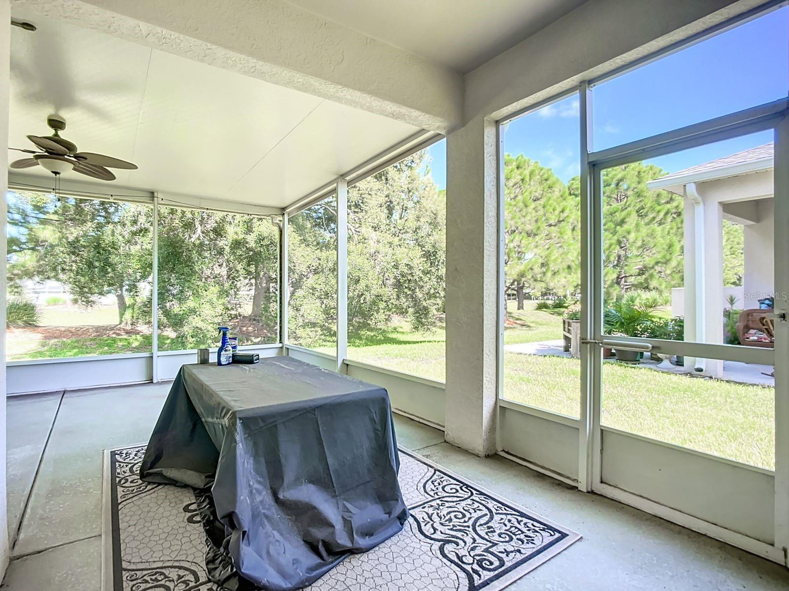 Come enjoy maintenance Free living, Monthly management takes care of exterior painting, roofs, lawn service and more. Come check out this super cute villa with a THIRD private room that can also be used for guests' room, office space, or play area etc. in addition to two full bedrooms and two full bathrooms with 2 car garage. Ready for move in. Located in Panther Trace community where you have access to all community amenities plus private pool for only Villa residents on Cambray Creek Loop. This home has ceramic tile in all wet areas and laminate vinyl plank throughout the rest of the home. Soft neutral colors throughout. Large eat in kitchen with counter bar and all appliances included plus gas range. Full size washer and dryer also included and located in separate laundry room. HUGE screened in lanai for those who love the outdoors or entertaining. Master bedroom easily accommodates a king size bed; master bathroom has double vanity, walk in shower, separate water closet plus California walk in closet for better storage. Easy to show, call today to view this beautiful home.