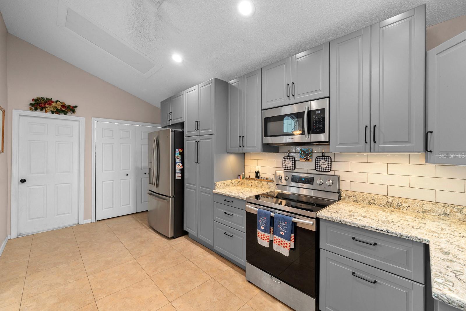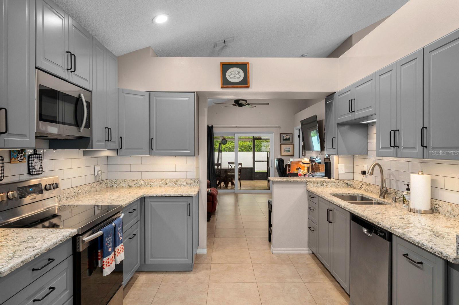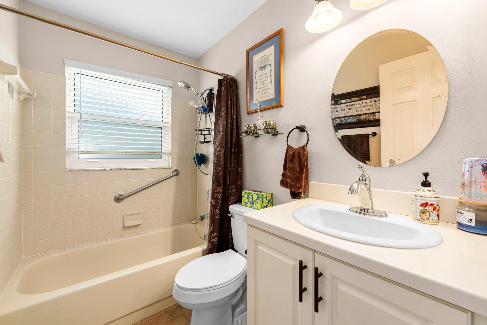 Welcome to Riverglen—where homes don’t just look good, they feel good. This fully renovated 3-bedroom, 2-bath home sits on an oversized 80x125 lot with no backyard neighbors, and it shows the kind of pride of ownership you can feel the second you pull up. From the moment you walk in, the home feels calm, clean, and refreshed. The layout is bright and open with tall ceilings, tile floors throughout, and a warm, neutral palette that makes everything feel bigger and more inviting. The kitchen is completely redone with quartz counters, soft-close cabinets, and clever storage like multiple lazy Susans—exactly the kind of everyday upgrades that make life easier. It flows right into the living and dining spaces, creating a natural spot for family time, dinner with friends, or simply relaxing after a long day. The primary suite is a peaceful retreat tucked away from the rest of the home. You’ll find a large walk-in closet and an updated bathroom with a garden tub, dual sinks, and a separate walk-in shower—your own private unwind zone. Two additional bedrooms and a full bath sit on the other side of the home, offering privacy for guests, kids, or a dedicated office. This home isn’t just stylish—it’s smart. Hurricane-rated windows and doors, whole-house solar panels with battery backup, and modern fixtures throughout help keep your utility bills low and your home comfortable year-round. In fact, during peak months, you might even get money back from the electric company. Step outside to the screened-in back patio with epoxy flooring—an easy, breezy spot for morning coffee, evening wine, or listening to the birds with no neighbors behind you. And if you’ve ever dreamed of a dedicated workspace, this home delivers: a climate-controlled workshop tucked behind the garage, complete with its own mini-split AC. It’s perfect for a home business, crafting, woodworking, fitness, or the hobby you’ve always wanted more room for. This home has been loved, updated, and cared for in all the ways buyers wish more homes were. Located in the sought-after Riverglen community, you’re just minutes from shops, dining, and top-rated schools—yet the home still feels private and tucked away. If you’ve been looking for a move-in-ready home with space, privacy, smart upgrades, and a workshop that truly sets it apart, this is the one you don’t want to miss.