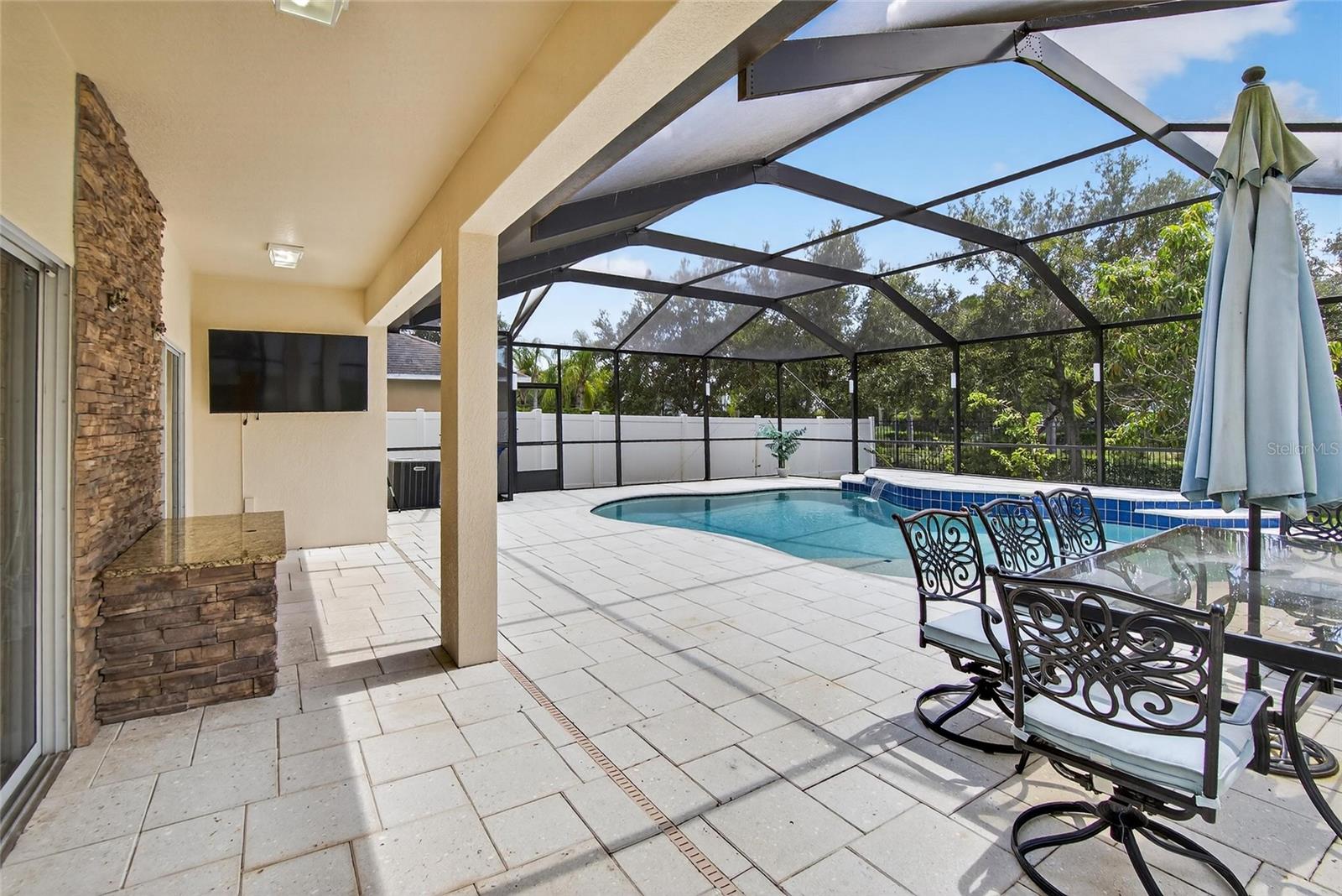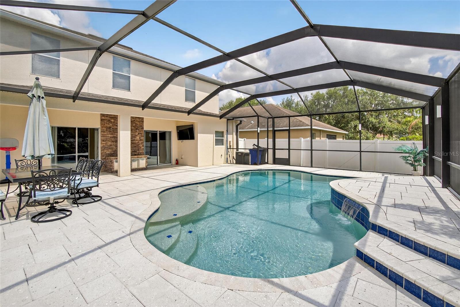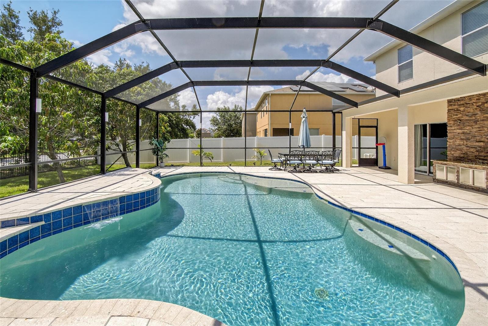 Huge Price Reduction! Welcome to your dream home in the highly sought-after Panther Trace community in Riverview, FL! This stunning two-story single-family residence offers 2,502 square feet of beautifully updated living space, featuring 4 spacious bedrooms, 2.5 baths, and a 2-car garage with custom cabinetry. Step inside to find gorgeous flooring throughout, a modernized kitchen with solid cabinetry, granite countertops, an expanded island, and a designer backsplash, along with fully upgraded marble bathrooms. Upstairs, all bedrooms are conveniently located, including the luxurious primary suite with a walk-in closet (featuring a built-in organizer) and a spa-like en-suite bath with dual sinks, walk-in shower, and soaking tub. The backyard is a private retreat designed for both relaxation and entertaining. Enjoy the sparkling heated pool with dual water features, LED lighting, and a screened enclosure with an additional 8 LED lights. The backyard also boasts a stone-accented outdoor kitchen (just add your grill), shellock paver deck, fruit trees and vinyl/metal fencing for added privacy. This home has been meticulously maintained and updated for peace of mind: New roof (2025) Pool with LED lights & screened enclosure (2020) Backyard shellock pavers (2020) Outdoor kitchen with granite top (2023) Driveway pavers & stone-accented exterior (2023) Fully upgraded bathrooms with marble finishes (2023) Expanded kitchen island & tile flooring (2023) Custom closets in garage & bedrooms (2018) New washer (2024) & water softener (2025) THERE IS NO WATER BILL! Community Amenities: Panther Trace offers resort-style living with a lagoon pool, splash park, clubhouse, playgrounds, tennis and basketball courts, walking trails, and an onsite elementary school. Conveniently located just minutes from I-75 and Hwy 301, you’ll be within easy reach of Downtown Tampa (15 miles), Busch Gardens (18 miles), The Florida Aquarium (15 miles), Brandon Town Center (10 miles), and the sandy shores of Apollo Beach (20 miles). With its blend of luxury updates, community amenities, and unbeatable location, this home is move-in ready and waiting for its next owner!