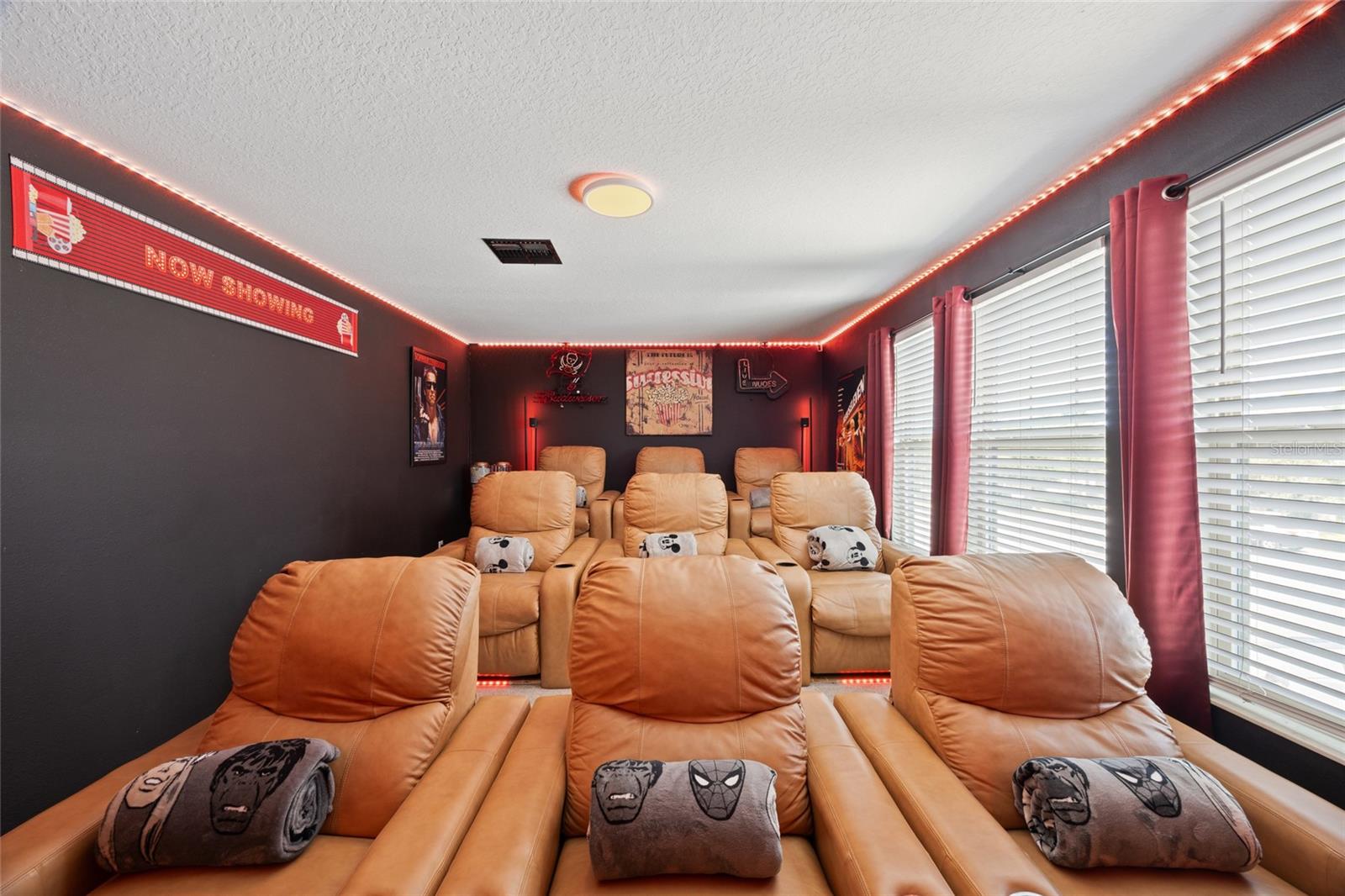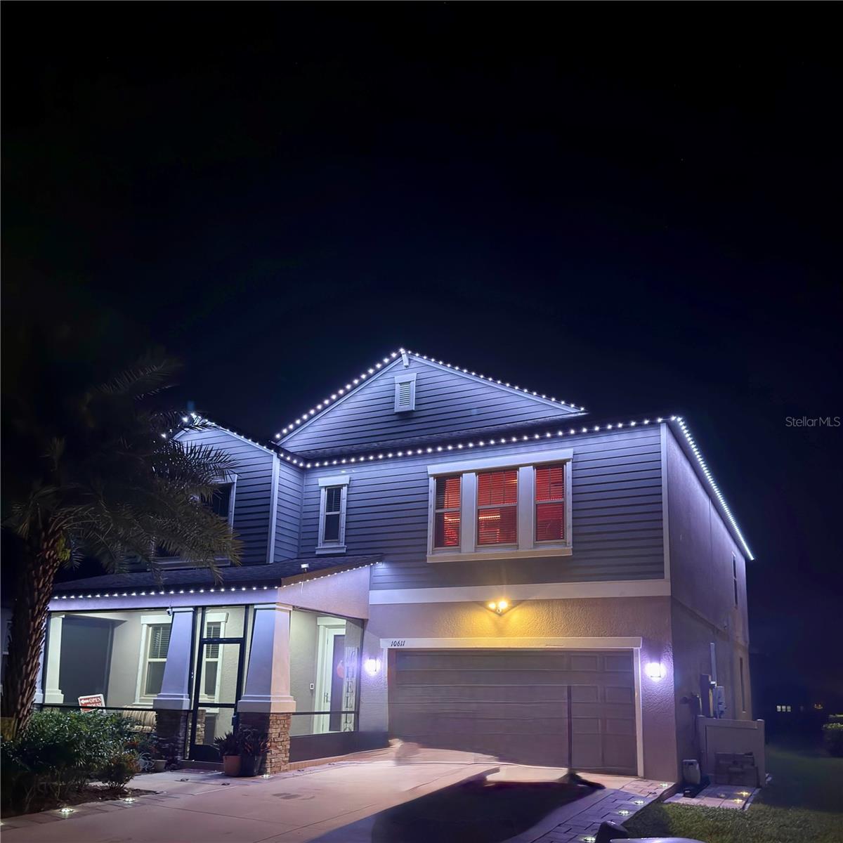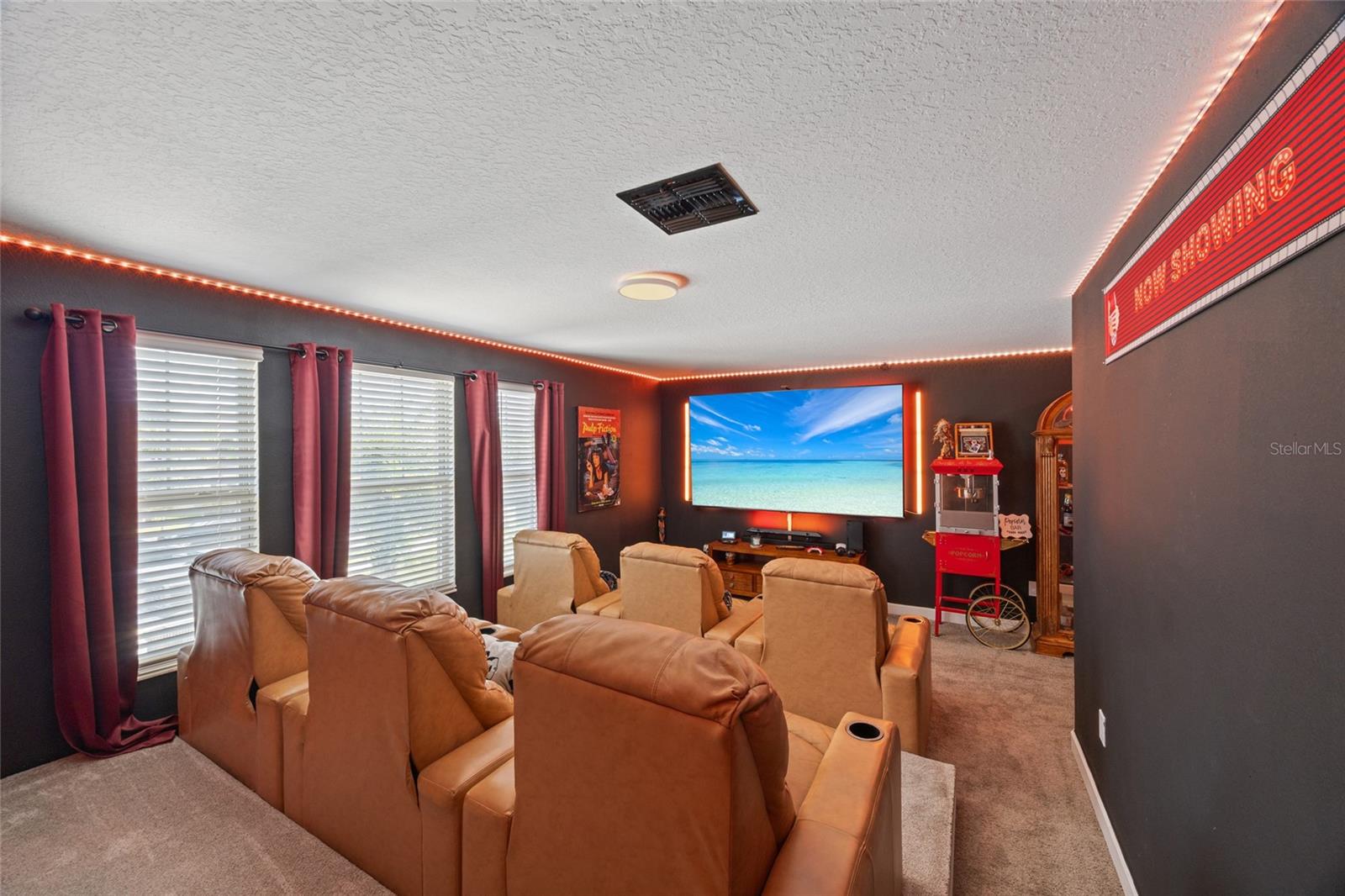 Waterfront Luxury Living in Shady Creek! Spacious 5-Bed, 3.5-Bath, 3-Car Garage, Plus Media Room! Welcome to your dream home! This elegant 3,854 sq. ft. Virginia floor plan is set on a premium waterfront lot in the highly sought-after Oaks at Shady Creek Phase 2. Offering 5-7 bedrooms, 3.5 bathrooms, 3 car tandem garage, this residence blends style, comfort, and smart living. • Waterfront Backyard Oasis: Enjoy peaceful mornings and stunning sunsets from your custom extended, fully screened lanai, ideal for both relaxation and entertaining. • Gourmet Chef’s Kitchen: under sink reverse osmosis system, 42” cabinets, granite countertops, large center island, stainless steel appliances, and walk-in pantry. • Primary Retreat on the First Floor: Spacious suite with tray ceiling, luxurious spa-style bathroom, and an oversized customized walk-in closet—with its own laundry area nearby for ultimate convenience. • Entertainment Spaces Galore: Upstairs features a huge dedicated movie theater with custom platforms, plus four secondary bedrooms each with walk-in closets, and a second laundry room for added ease. • Energy-Efficient & Upgraded: 15 SEER high-efficiency A/C system, tankless water heater, ceramic tile flooring in main areas and baths, ceiling fans, upgraded landscaping package, and 2019 solar panels for lower utility costs. Exterior Jellyfish lighting system, Attic flooring installed for additional storage, Under-stair storage accessible through garage, Dining room conversion to bedroom/flex space, Custom movie theatre room with tiered platforms, Reverse osmosis system under kitchen sink, Mini-split A/C unit in garage, 50-amp electrical panel for EVs or RVs, Dedicated generator switch for peace of mind, Govee lighting along driveway & front patio, Smart home system (Alexa or Google) controlling lights, doors, garage and AC. Does Not Convey: All washers & dryers, kitchen refrigerator, and garage freezer • Community Perks: Resort-style amenities include a huge swimming pool, fitness center, basketball court, playground, and more—all with low HOA fees that include lawn maintenance! • Prime Location: Just minutes from I-75, you’ll have quick access to shopping, dining, downtown Tampa, and the sandy Gulf beaches. Top-rated schools nearby. You should live here! Come see your new home!