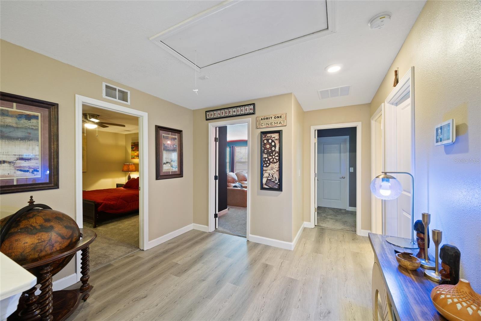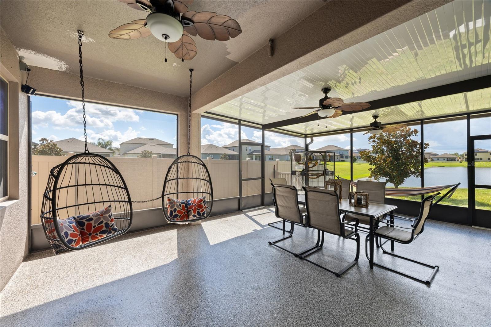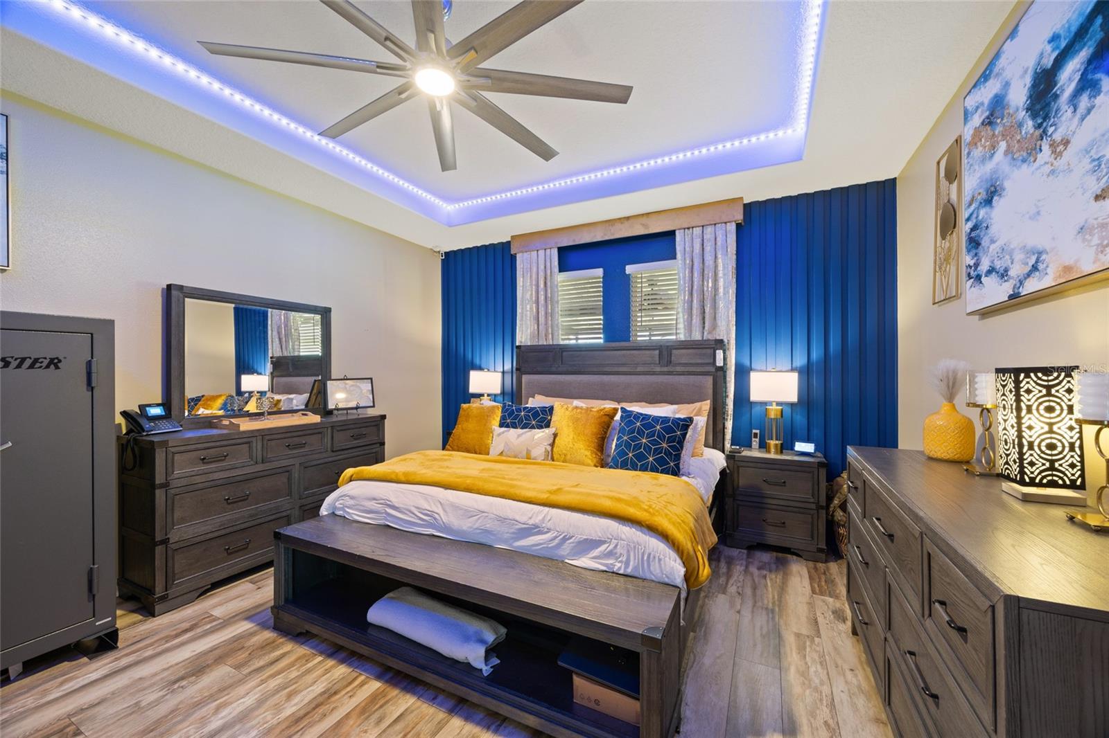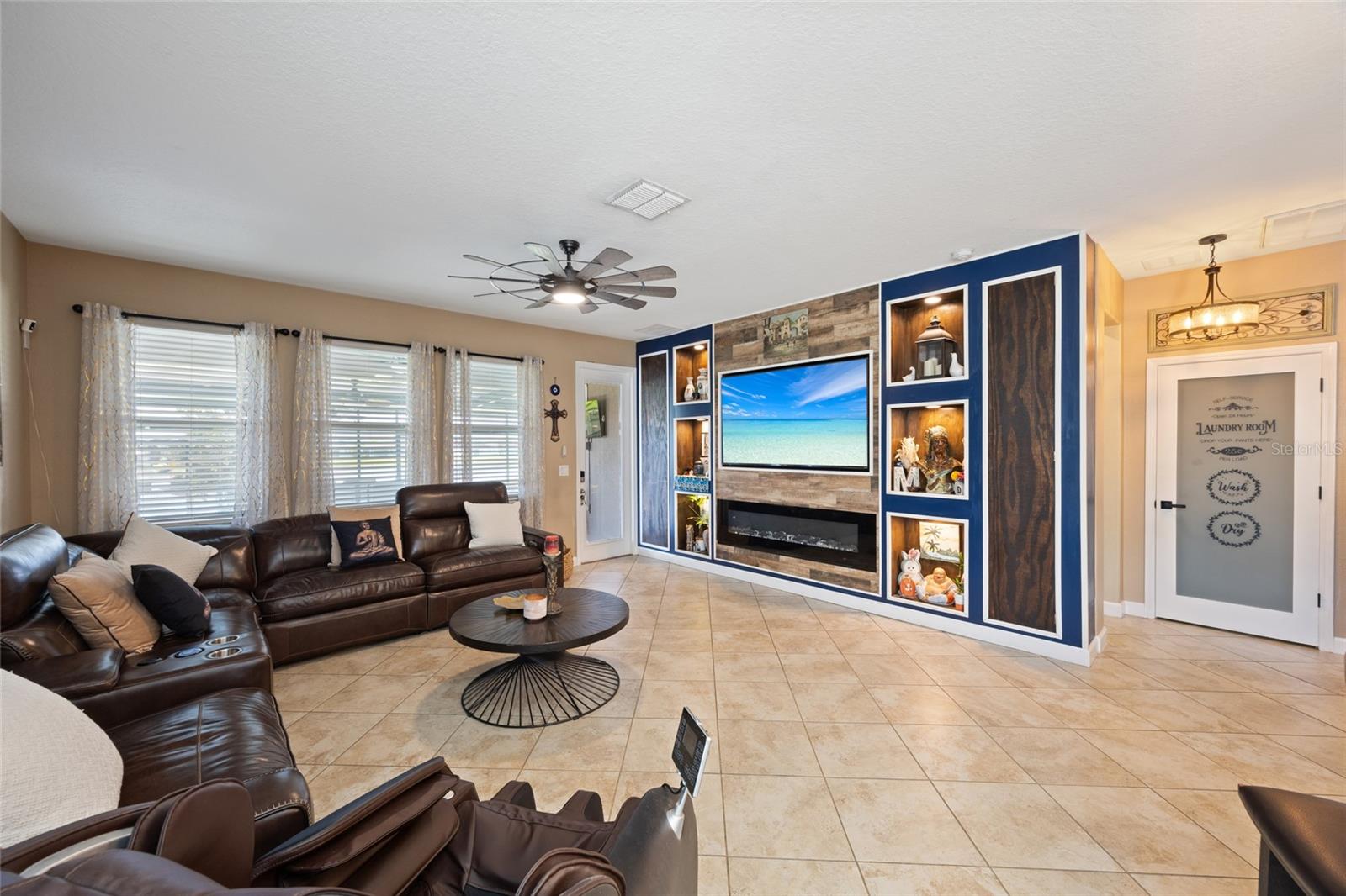 Waterfront Luxury Living in Shady Creek! Spacious 5-Bed, 3.5-Bath, 3-Car Garage, Plus Media Room! Welcome to your dream home! This elegant 3,854 sq. ft. Virginia floor plan is set on a premium waterfront lot in the highly sought-after Oaks at Shady Creek Phase 2. Offering 5-7 bedrooms, 3.5 bathrooms, 3 car tandem garage, this residence blends style, comfort, and smart living. • Waterfront Backyard Oasis: Enjoy peaceful mornings and stunning sunsets from your custom extended, fully screened lanai, ideal for both relaxation and entertaining. • Gourmet Chef’s Kitchen: under sink reverse osmosis system, 42” cabinets, granite countertops, large center island, stainless steel appliances, and walk-in pantry. • Primary Retreat on the First Floor: Spacious suite with tray ceiling, luxurious spa-style bathroom, and an oversized customized walk-in closet—with its own laundry area nearby for ultimate convenience. • Entertainment Spaces Galore: Upstairs features a huge dedicated movie theater with custom platforms, plus four secondary bedrooms each with walk-in closets, and a second laundry room for added ease. • Energy-Efficient & Upgraded: 15 SEER high-efficiency A/C system, tankless water heater, ceramic tile flooring in main areas and baths, ceiling fans, upgraded landscaping package, and 2019 solar panels for lower utility costs. Exterior Jellyfish lighting system, Attic flooring installed for additional storage, Under-stair storage accessible through garage, Dining room conversion to bedroom/flex space, Custom movie theatre room with tiered platforms, Reverse osmosis system under kitchen sink, Mini-split A/C unit in garage, 50-amp electrical panel for EVs or RVs, Dedicated generator switch for peace of mind, Govee lighting along driveway & front patio, Smart home system (Alexa or Google) controlling lights, doors, garage and AC. Does Not Convey: All washers & dryers, kitchen refrigerator, and garage freezer • Community Perks: Resort-style amenities include a huge swimming pool, fitness center, basketball court, playground, and more—all with low HOA fees that include lawn maintenance! • Prime Location: Just minutes from I-75, you’ll have quick access to shopping, dining, downtown Tampa, and the sandy Gulf beaches. Top-rated schools nearby. You should live here! Come see your new home!