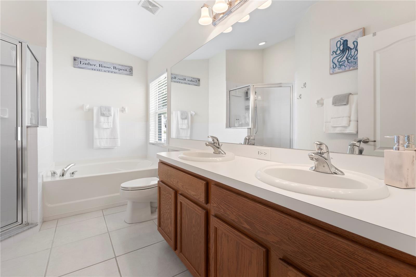 Tucked away on a tree-lined street in the heart of Riverview, this beautifully updated and expanded 4-bedroom, 3-bathroom home features exceptional upgrades and a spacious, flexible layout. A fully permitted 650 sq. ft. addition and a large screened-in lanai create the perfect blend of everyday living space and areas designed for entertaining. Inside, you’ll find beautiful hardwood floors throughout the main living areas and abundant natural light streaming through the windows. The pristine kitchen is spacious, offers eat-in space, and is perfectly positioned for gatherings and everyday meals. The primary suite, entered through elegant French doors, is a private retreat featuring dual vanities, a relaxing garden tub, a spacious walk-in closet, and a second hidden closet cleverly tucked behind custom bookshelves. Bedrooms 2 and 3 share a convenient Jack and Jill bathroom, while the 4th bedroom—located at the front of the home next to the 3rd bath—provides the ideal setup for guests, extended family, or a private home office. The laundry room is just off the kitchen for added convenience. This home offers peace of mind with a brand-new HVAC system (July 2025), a new water heater (2023), and a roof installed in 2018. The fully fenced backyard includes irrigation and a storage shed, providing space for gardening, pets, and outdoor entertaining. The garage is outfitted with retractable screens, making it easy to enjoy the space while keeping bugs out—perfect for projects, workouts, or simply relaxing. The home’s expansive addition serves as a game room and entertainment hub, complete with a pool table, multiple TVs, premium surround sound speakers, and a built-in service area with a bar fridge—perfect for hosting family and friends. Located just minutes from many shopping and dining options, this home also offers quick access to I-75 and the Selmon Expressway, making commutes to Downtown Tampa, Brandon, or MacDill AFB a breeze. Outdoor enthusiasts will love being close to Alafia River State Park and other recreational options. With its spacious floor plan, low HOA, thoughtful upgrades, and light-filled interiors, this Riverview home is truly move-in ready.