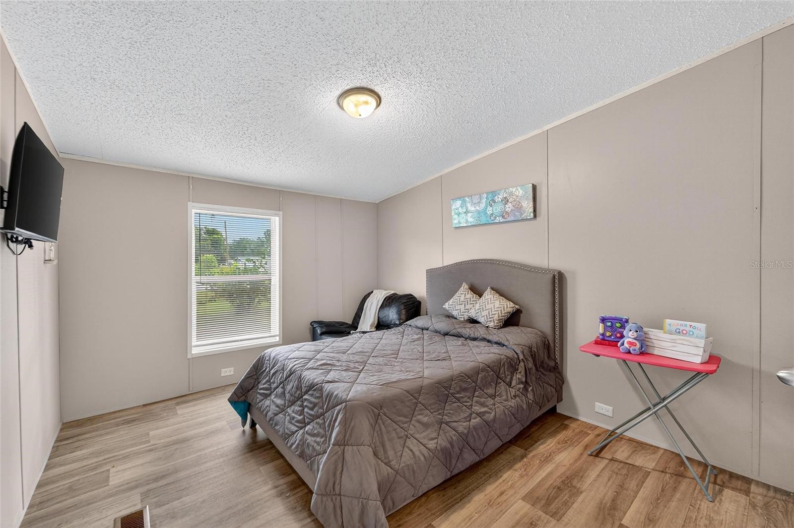 This 4 Bedroom, 2 Bathroom home, located on a private and peaceful 1-Acre (MOL) of land, is now available for viewing. The backyard offers a wonderful pond view, a storage shed, and an 'office' shed - with laminate flooring, electric and AC. You can continue to explore endless possibilities by adding a pool, garden, outdoor entertainment area or guest house. There is a second septic system located at the back of the property, great for adding an additional building. Once you step inside you will appreciate the open and airy feel of the main living space, connecting the family room, kitchen and dining area. The kitchen features a functional layout and includes a full appliance package, a breakfast bar, ample counter space and cabinet storage, and neutral finishes which create an inviting atmosphere for both everyday meals and entertaining. The split plan offers the master bedroom to the left, which incudes a full ensuite with separate soaking tub, stand alone shower and a walk in closet. The second bathroom and 3 additional bedrooms are conveniently located to the right of the home. Rounding out this wonderful property is a dedicated laundry area. Upgrades/amenities: AC 2024, new vinyl fencing on sides of the home, new vinyl flooring throughout, new light fixtures throughout.