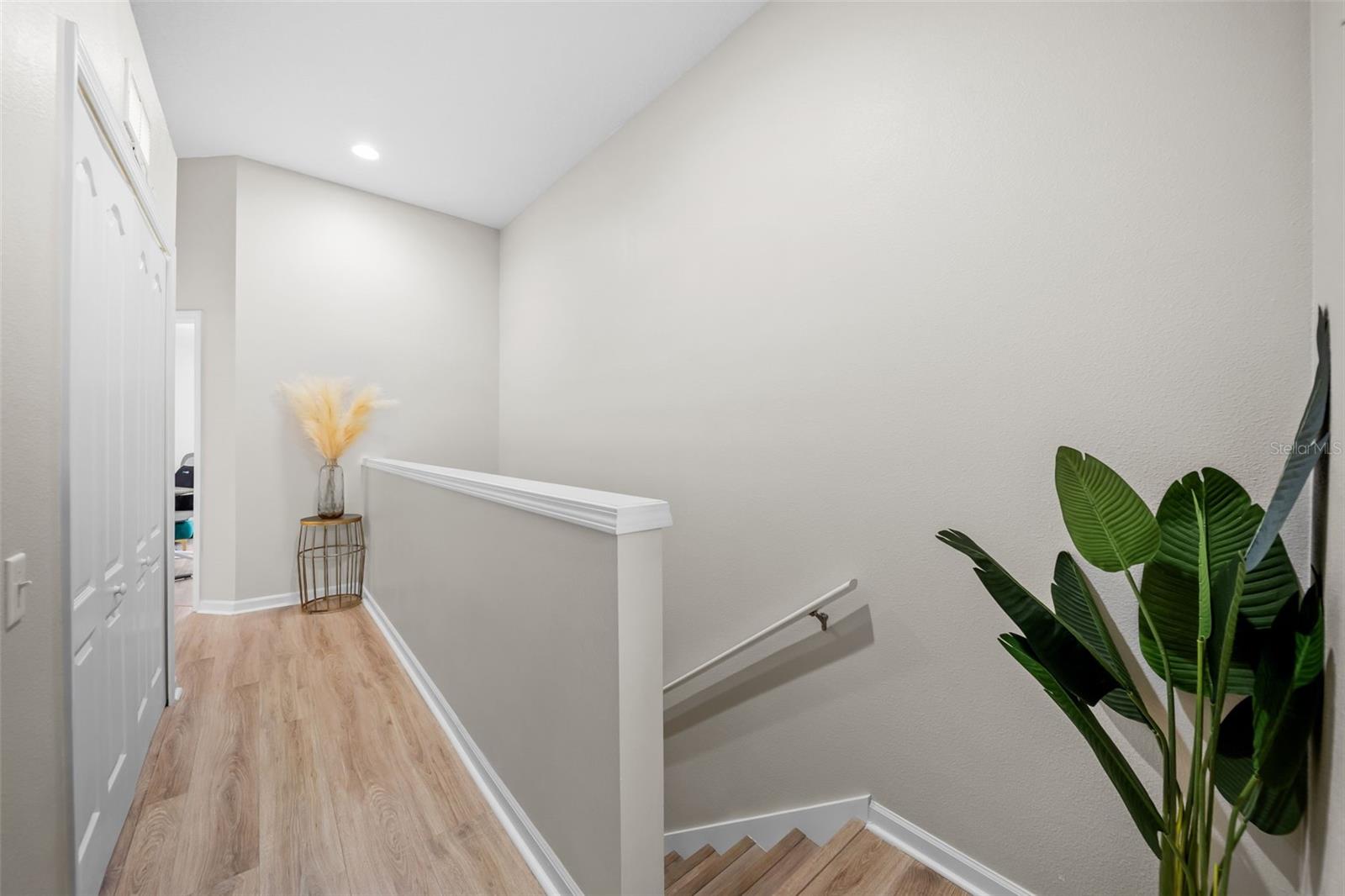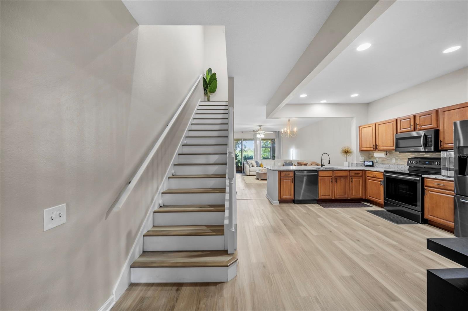 Back on the market due to buyer financing. Seller is open to negotiating closing cost assistance for buyer. Welcome to a refreshed and move-in ready gem nestled in the highly desirable Valhalla gated community of Riverview. This light-filled three-bedroom, two-and-a-half-bath townhome offers 1,644 square feet of comfortable Florida living with stylish upgrades and maintenance-free ease. Sleek plank flooring flow seamlessly throughout the main living areas and tile in bathrooms and laundry, complemented by fresh, neutral paint that enhances the bright, open floorplan. The updated kitchen features beautiful granite countertops, stainless steel appliances, and a layout that opens to the living and dining areas—ideal for gatherings. Just beyond, a tall sliding glass door leads out to the private covered and screened lanai, offering serene, treed views and a peaceful spot for morning coffee or evening wind-down. Upstairs, the generous primary suite includes dual vanities, an enclosed water closet, and plenty of closet space. Two additional bedrooms share a refreshed hallway bath, while the convenient upstairs laundry makes everyday living simple. The home also boasts a one-car garage with a newly epoxy-coated floor, providing both durability and a polished finish. Valhalla is a gated, pet-friendly community designed for maintenance-free living, with exterior upkeep, water, trash, basic cable/internet, and lawn care all included. Residents enjoy access to two resort-style pools, plenty of guest parking, and beautifully maintained common areas. Conveniently located near I-75, the Crosstown Expressway, and U.S. 301, the home provides quick access to downtown Tampa, MacDill AFB, Ybor, shopping, dining, and entertainment. Built in 2005, this townhome combines practical updates with an ideal location. Whether you’re a first-time buyer, relocating, or seeking a low-maintenance lifestyle, this Valhalla beauty is ready to welcome you home.