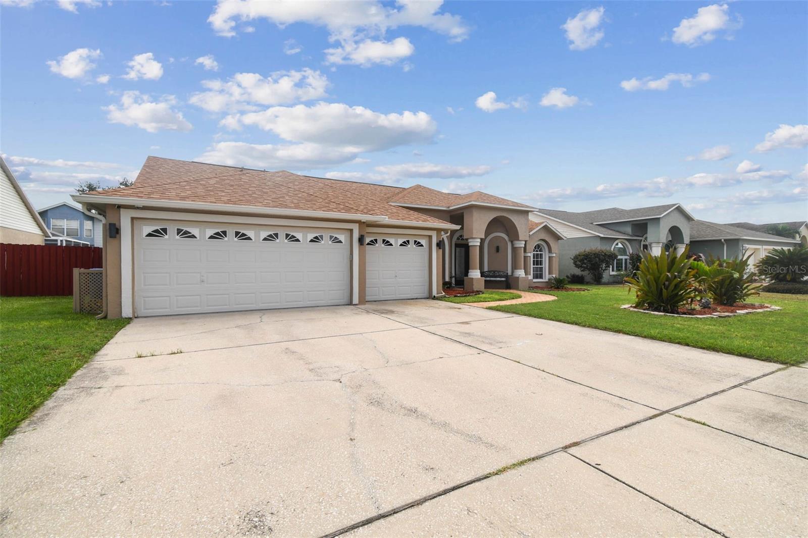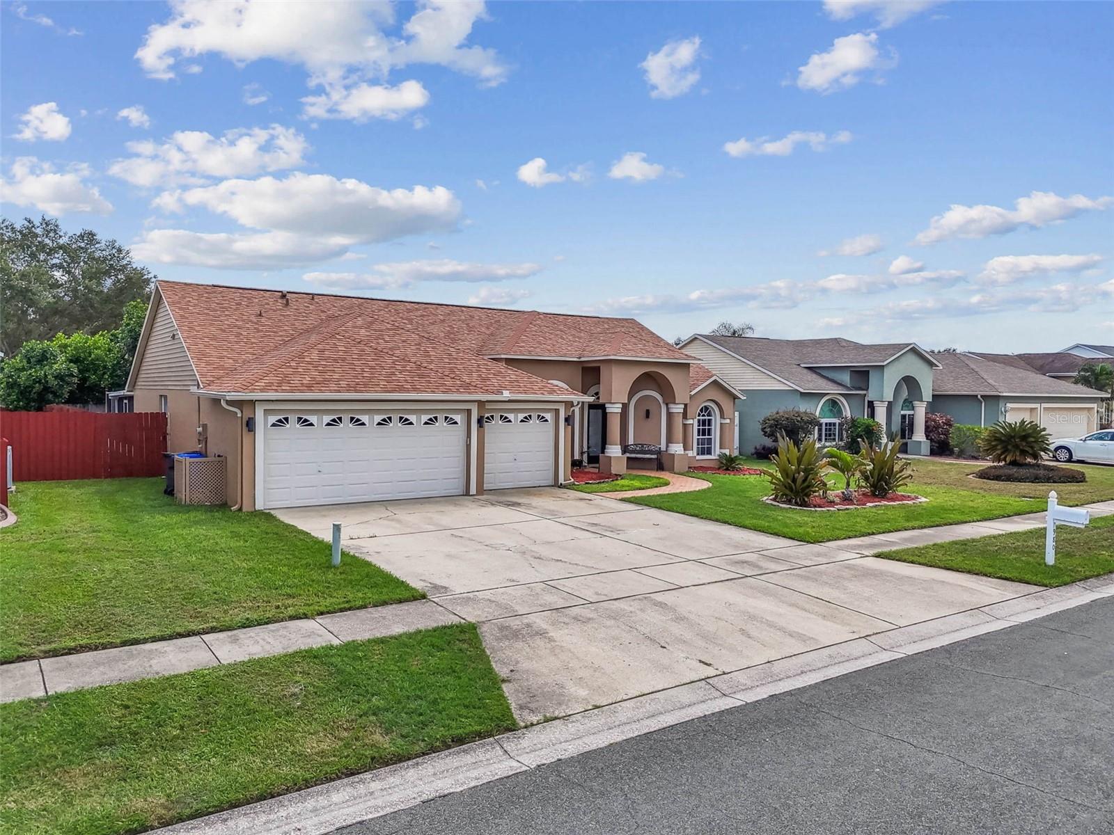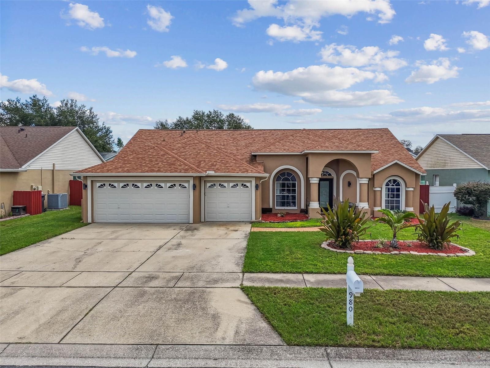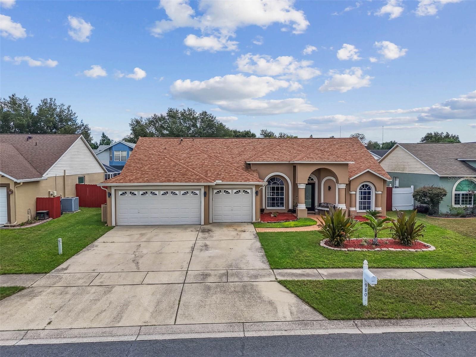***HIGHLY MOVTIVATED SELLER! BRING AN OFFER- HOUSE MUST GO!!!***Welcome to this beautifully maintained 4-bedroom, 2 -bath home with over 2,000 square feet of living space and a 3-car garage. From the moment you arrive, you'll love the curb appeal with its manicured lawn, arched entryway, and welcoming covered porch. Inside, the home features vaulted ceilings and a split floor plan that provides both openness and privacy. The formal living and dining room offer an elegant space with wood-look flooring, large windows, and plenty of natural light. The family room is spacious and inciting with tiled floors, neutral finishes, and sliding doors leading to the outdoor patio, making it perfect for gatherings. The kitchen is designed with functionality in mind, offering ample cabinetry, counter space, and a breakfast nook overlooking the backyard and covered patio, perfect for relaxing or entertaining. With a newer roof, multiple living areas, and a highly functional floor plan, this home is move-in ready and priced to sell!