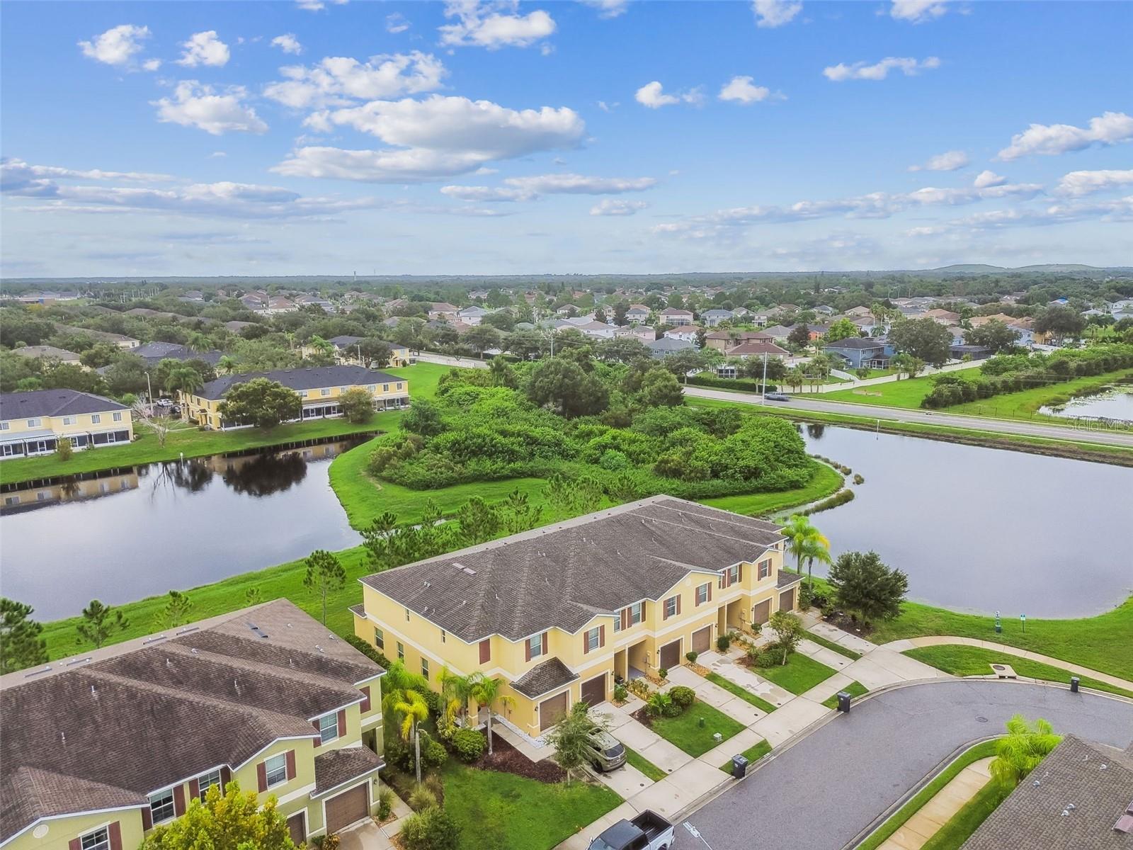 SERENE POND VIEWS! MAINTENANCE FREE LIVING! INCREDIBLE LOCATION! Welcome home to this BEAUTIFULLY MAINTAINED 3 bedroom + LOFT, 2.5-bathroom townhome with one-car garage offering 1,668 square feet of stylish living space. Recently built in 2017 with thoughtful upgrades, move-in-ready features and many amazing community amenities to enjoy! Step inside and feel right at home in the spacious great room featuring ceramic tile flooring, soaring ceilings, neutral color palette, and open layout that feels both bright and inviting. The kitchen is a showstopper with rich cabinets, crown molding, recessed can lighting, closet pantry, and convenient breakfast bar with adjoining dining space. All appliances stay!! Sliding glass doors lead outside to the covered, screened-in lanai with peaceful pond views making this a perfect place to relax and unwind after work or a great place to start your day. Downstairs also features a convenient half bathroom that is perfect for guests and handy storage closet. Upstairs, you’ll find 3 bedrooms along with a versatile loft and laundry closet all featuring BRAND NEW CARPET! The spacious primary suite features serene views of the backyard pond and offers a walk-in closet and a private bath with dual sinks and shower. Secondary bedrooms share a bathroom and are conveniently separated from the primary suite by the multi functional loft! This home is NOT in a flood zone and has hurricane shutters for added peace of mind! There’s NO CDD here! Low HOA includes reserves for roof replacement, exterior paint and grounds maintenance! Enjoy access to the Summerfield amenities with so much to enjoy: two pools, playground, dog park, tennis courts, pickleball courts, sand volleyball court and basketball courts! Excellent Riverview location offers grocery stores and restaurants within walking distance! Hospitals, school and shopping are all nearby along with quick access to I-75 for easy community to Tampa.