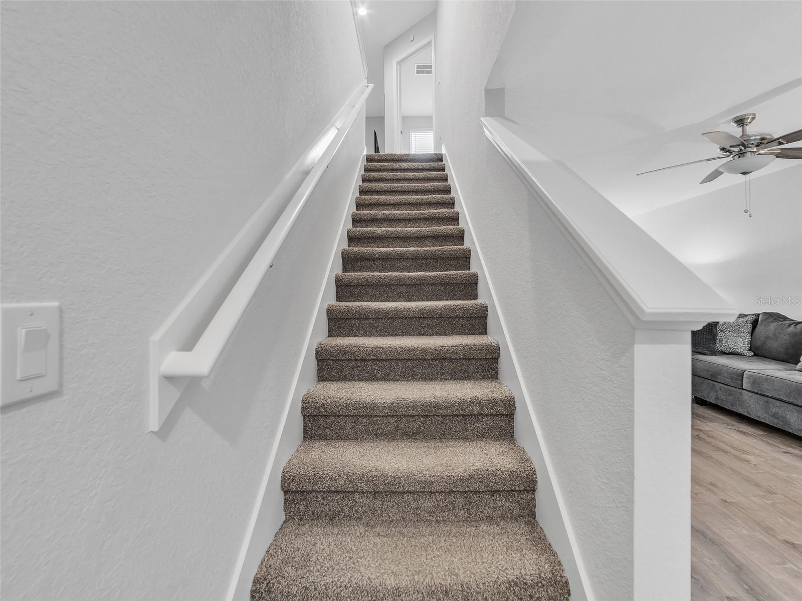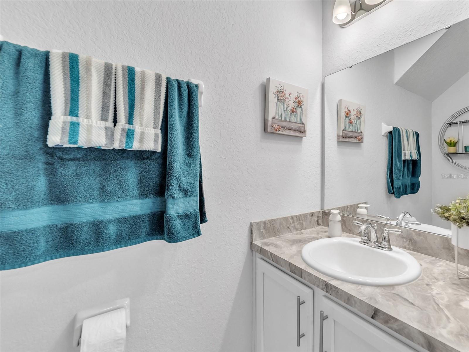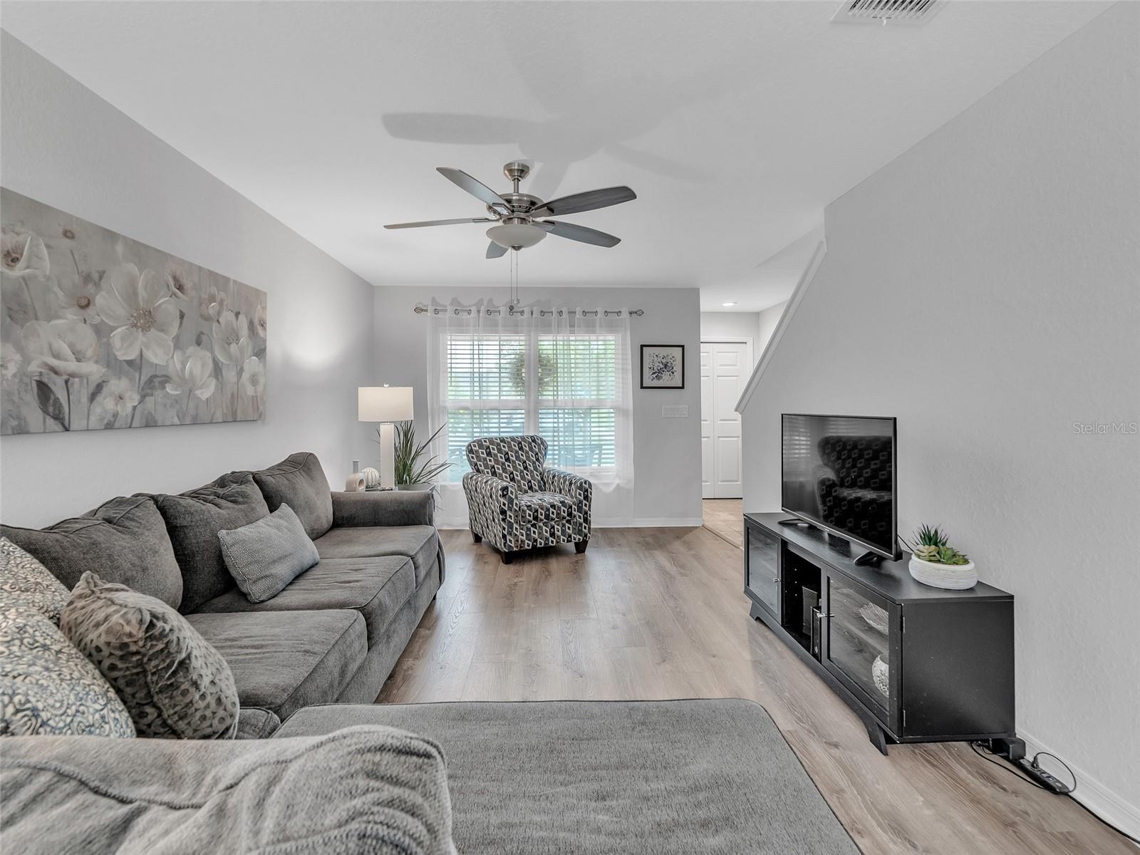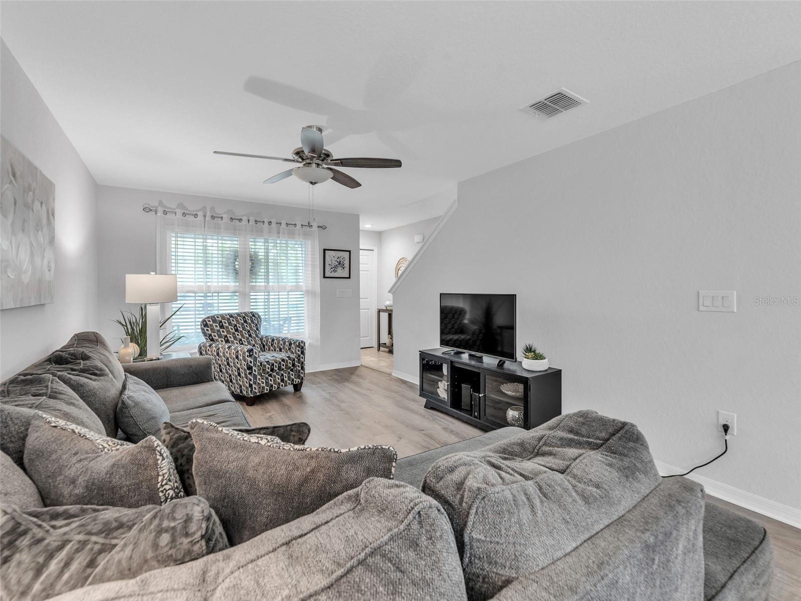 Welcome to 9640 Tocobaga Place, a stylish 3-bedroom, 2.5-bath townhome in the gated Landings at Alafia community. Built in 2019, this home combines modern design, comfort, and convenience in one perfect package — and it shows like a model. When you walk in you are greeted by an abundance of natural light that enhances the open layout. The downstairs living and dining areas feature updated luxury vinyl plank flooring, creating a warm and inviting space for everyday living. The oversized kitchen is perfect for entertaining or weeknight meals, offering granite countertops, abundant cabinetry, stainless steel appliances, and a convenient pantry. A powder bath completes the main level. Upstairs, a versatile loft provides the ideal spot for a home office, playroom, or cozy retreat. The spacious primary suite includes a walk-in closet, dual vanities, and a tiled walk-in shower. Two additional bedrooms, a full bath, and a dedicated laundry area complete the second floor. Community perks include gated entry, a sparkling community pool, and lawn maintenance covered by the HOA—so you can spend more time enjoying the Florida lifestyle. The affordable HOA also includes water and sewer for added savings, and there is no CDD fee. Ideally located just minutes from I-75 and US-301, this home offers an easy commute to downtown Tampa and is convenient to shopping, dining, and schools. It’s also a great choice for those commuting to MacDill Air Force Base, making it the perfect balance of lifestyle and location