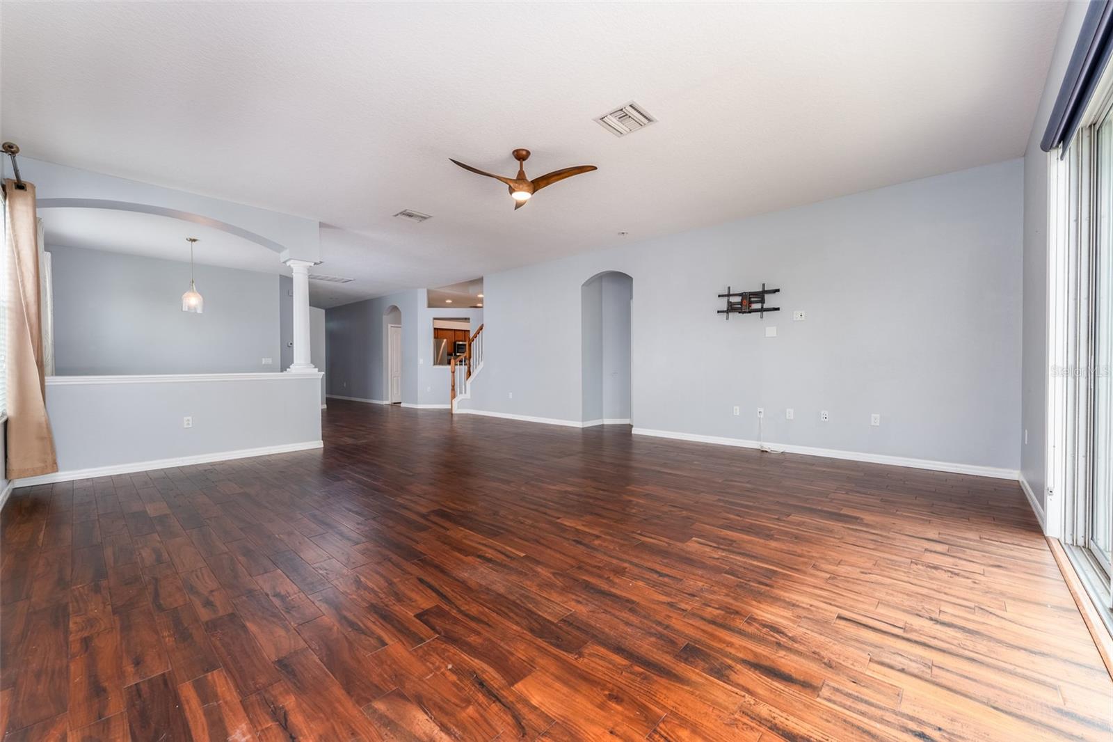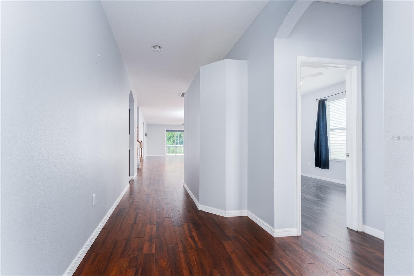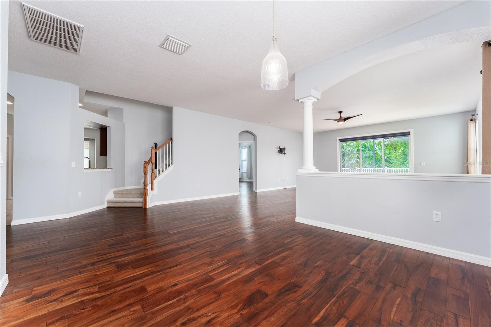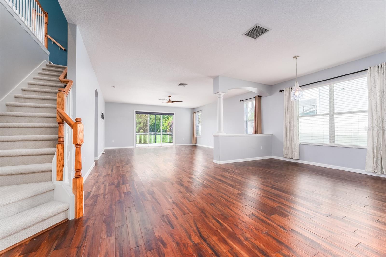 SELLERS IS READY TO SELL!! Stunning Home with Serene Conservation and Pond Views! Prepare to be impressed by this beautifully maintained home situated on a premium homesite offering tranquil conservation and pond views, all enjoyed from your expansive screened lanai with elegant travertine tile. Inside, you’ll find wood floors flowing throughout the home, high ceilings, and an abundance of natural light that enhances the spacious and open layout. The kitchen is a chef’s dream, featuring granite countertops, a stylish decorative backsplash, and a seamless view into the formal dining and living areas—perfect for entertaining. The private master suite is a true retreat, complete with a luxurious master bath boasting a garden tub, a spacious walk-in shower, and upgraded finishes. Oversized secondary bedrooms have ample space for family, guests, or home office use. Upstairs, a massive bonus room awaits—ideal as a game room, media space, or flexible living area tailored to your needs. Step outside to your peaceful lanai and fully fenced backyard, where you’ll enjoy serene mornings and relaxing evenings surrounded by nature. This home truly has it all—space, style, and a setting that’s hard to beat. Don’t miss out—schedule your private showing today!