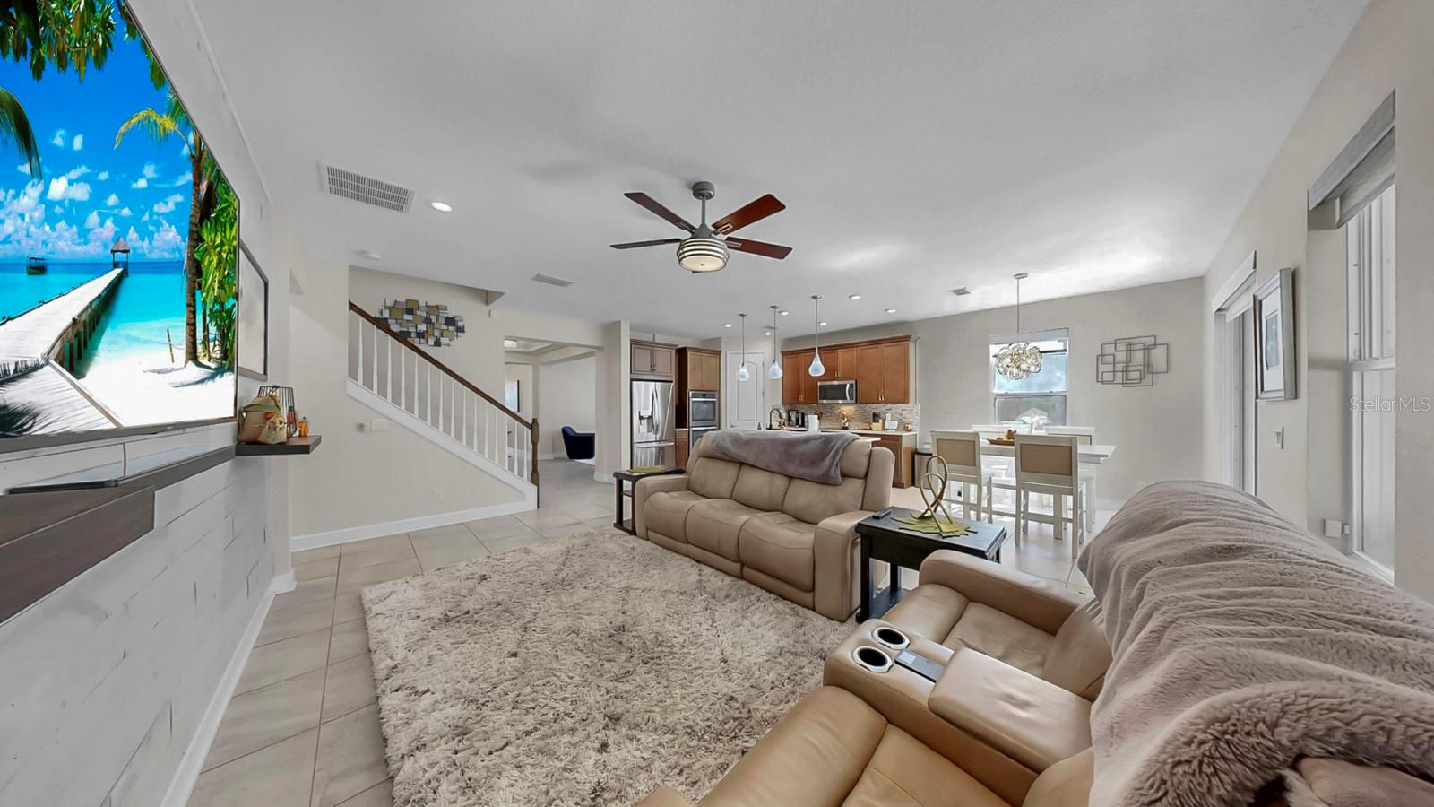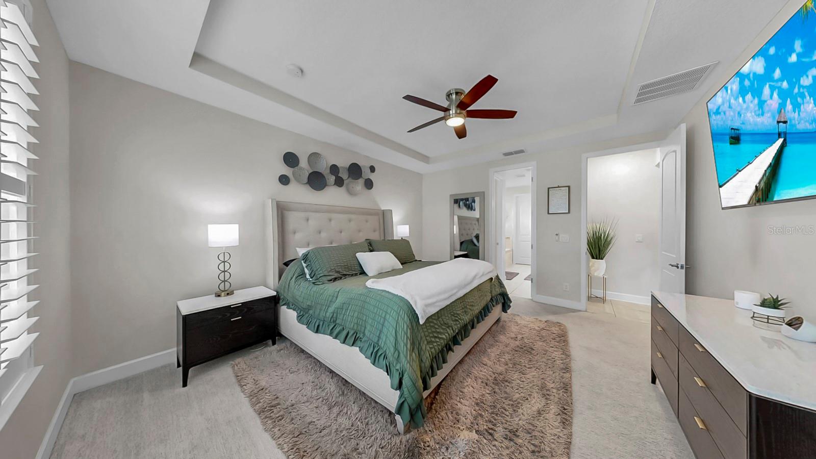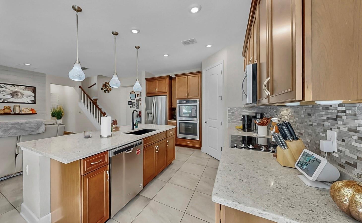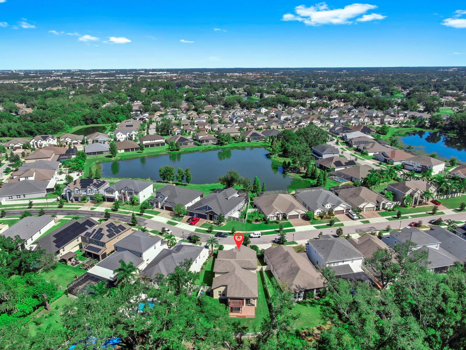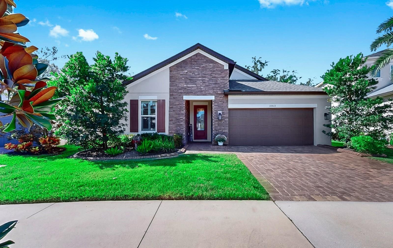 PRICE IMPROVEMENT! Welcome home to the gated community of Mariposa! This Meritage Foxtail floor plan (built in 2017) shows like a model, offering thoughtful upgrades and pride of ownership throughout. Situated on an oversized ¼+ acre lot with peaceful conservation views, this 5-bedroom, 3-bath home includes an upstairs game room, and an upgraded 40-foot covered lanai—perfect for Florida living. If you're looking for MULTI-GENERATIONAL option, look no further!! The upstairs area is perfect as an in-law suite or for any family member needing a separate and private space. Recent upgrades make this home truly move-in ready: a brand-NEW ROOF, newly sealed pavers in both the front and back of the home, freshly sealed stone accents on the exterior, a NEW water softener, new exterior paint with rain refresh technology, newly painted and sealed pergola, and upgraded lighting fixtures throughout. Inside, the open floor plan begins with a welcoming elongated hallway leading to the spacious kitchen and living areas. This gourmet kitchen boasts quartz countertops, stainless steel appliances, 42-inch wood cabinets, a double oven, cooktop, and a large island that flows seamlessly into the dining and family rooms. The owner’s suite features a tray ceiling, walk-in closets, dual vanities, and large shower and soaking tub. Upstairs, the bonus/game room offers flexibility for a playroom, media space, or home gym or in-law suite. Step outside to your private oasis and enjoy the oversized backyard with a hot tub, plenty of room for a pool, and serene conservation views. The gated Mariposa community offers resort-style amenities including a pool, clubhouse, playground, indoor/outdoor entertaining areas with grills, and bar space. Conveniently located near top-rated schools, restaurants, shopping, I-75, the Crosstown Expressway, and US-301. Don’t miss your chance to own this beautifully upgraded home—schedule your private showing today!