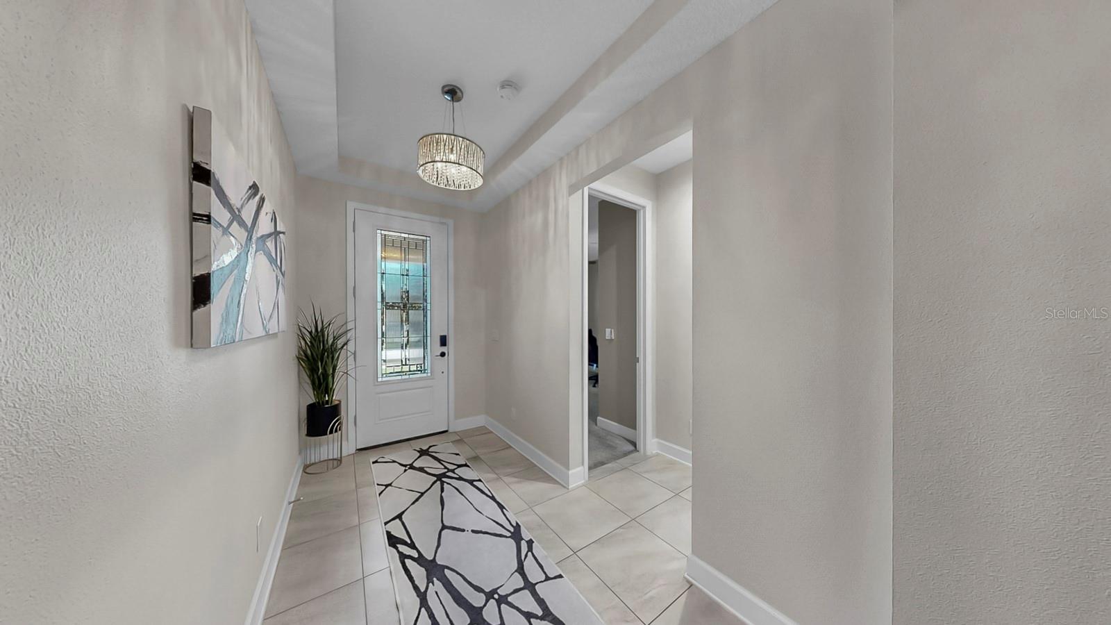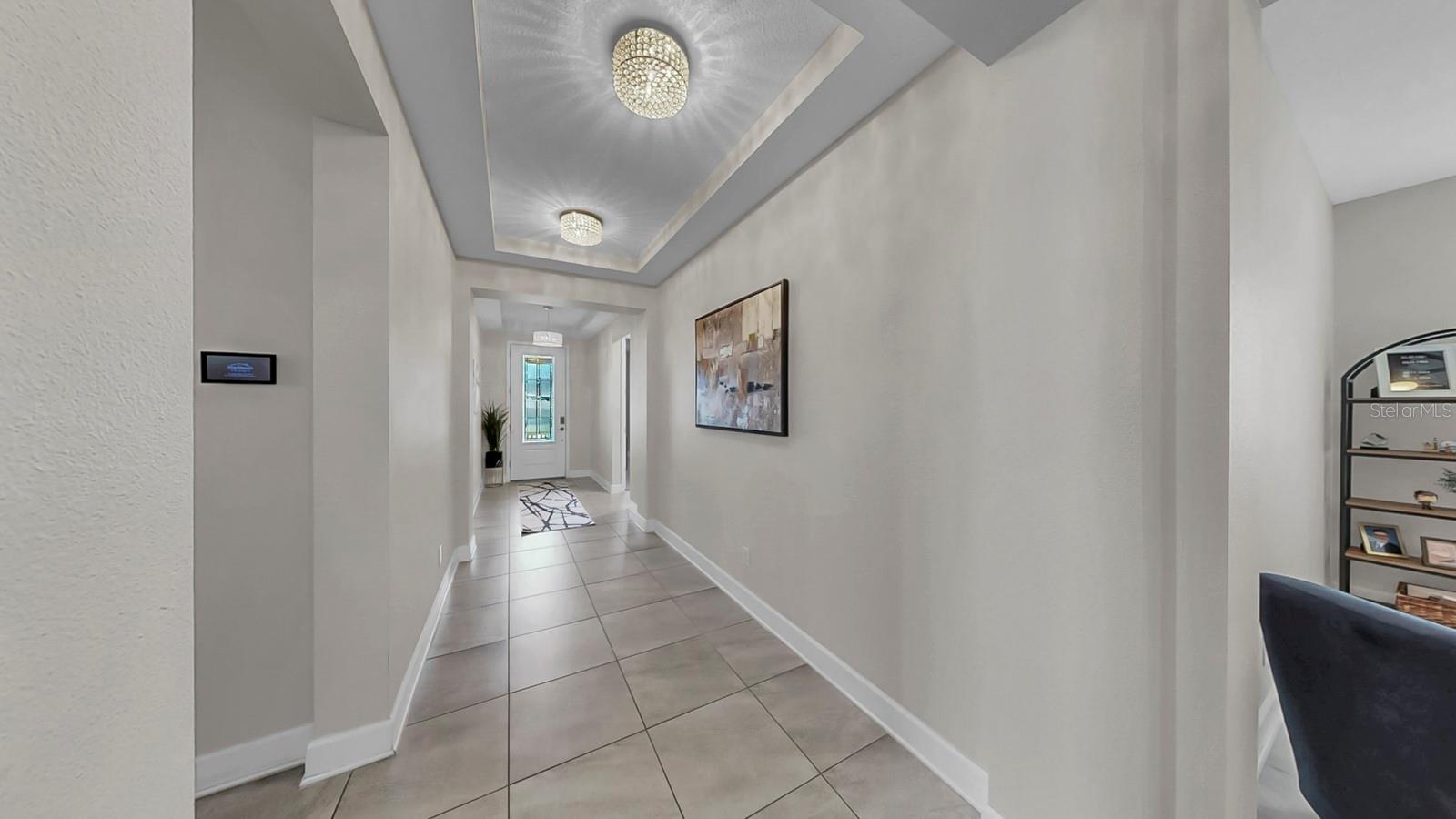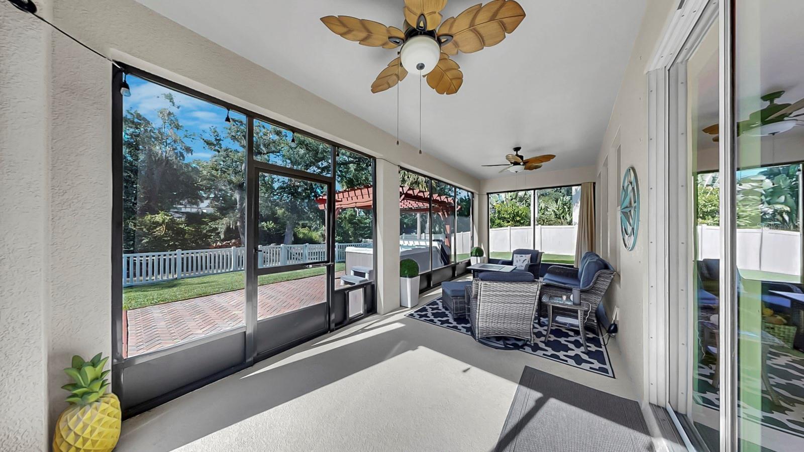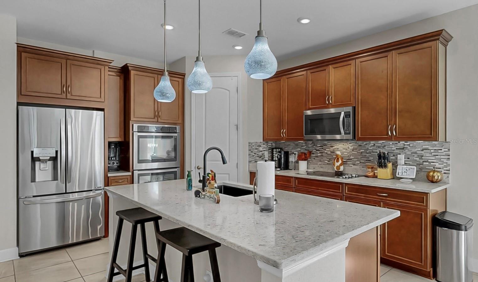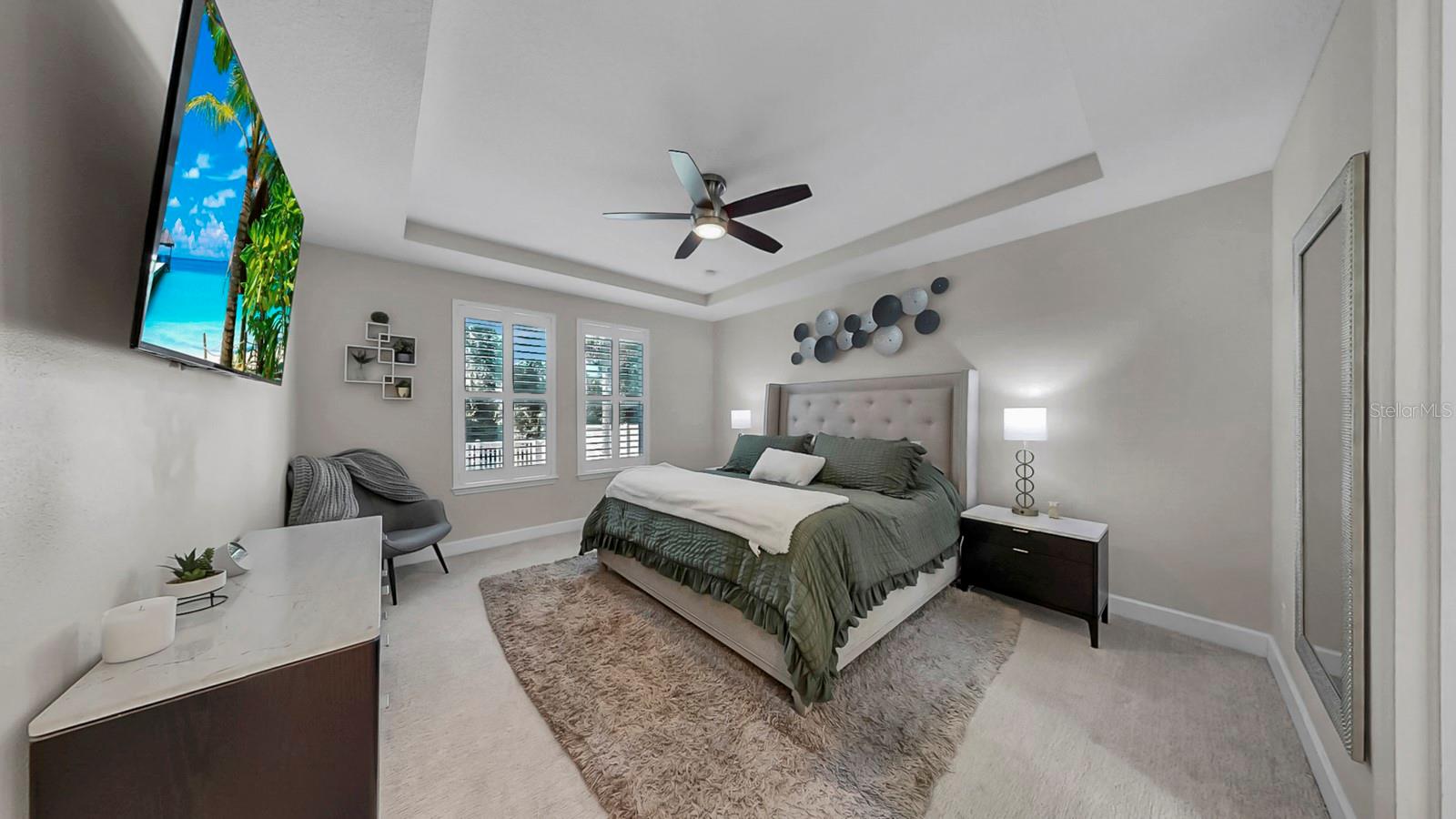 PRICE IMPROVEMENT! Welcome home to the gated community of Mariposa! This Meritage Foxtail floor plan (built in 2017) shows like a model, offering thoughtful upgrades and pride of ownership throughout. Situated on an oversized ¼+ acre lot with peaceful conservation views, this 5-bedroom, 3-bath home includes an upstairs game room, and an upgraded 40-foot covered lanai—perfect for Florida living. If you're looking for MULTI-GENERATIONAL option, look no further!! The upstairs area is perfect as an in-law suite or for any family member needing a separate and private space. Recent upgrades make this home truly move-in ready: a brand-NEW ROOF, newly sealed pavers in both the front and back of the home, freshly sealed stone accents on the exterior, a NEW water softener, new exterior paint with rain refresh technology, newly painted and sealed pergola, and upgraded lighting fixtures throughout. Inside, the open floor plan begins with a welcoming elongated hallway leading to the spacious kitchen and living areas. This gourmet kitchen boasts quartz countertops, stainless steel appliances, 42-inch wood cabinets, a double oven, cooktop, and a large island that flows seamlessly into the dining and family rooms. The owner’s suite features a tray ceiling, walk-in closets, dual vanities, and large shower and soaking tub. Upstairs, the bonus/game room offers flexibility for a playroom, media space, or home gym or in-law suite. Step outside to your private oasis and enjoy the oversized backyard with a hot tub, plenty of room for a pool, and serene conservation views. The gated Mariposa community offers resort-style amenities including a pool, clubhouse, playground, indoor/outdoor entertaining areas with grills, and bar space. Conveniently located near top-rated schools, restaurants, shopping, I-75, the Crosstown Expressway, and US-301. Don’t miss your chance to own this beautifully upgraded home—schedule your private showing today!