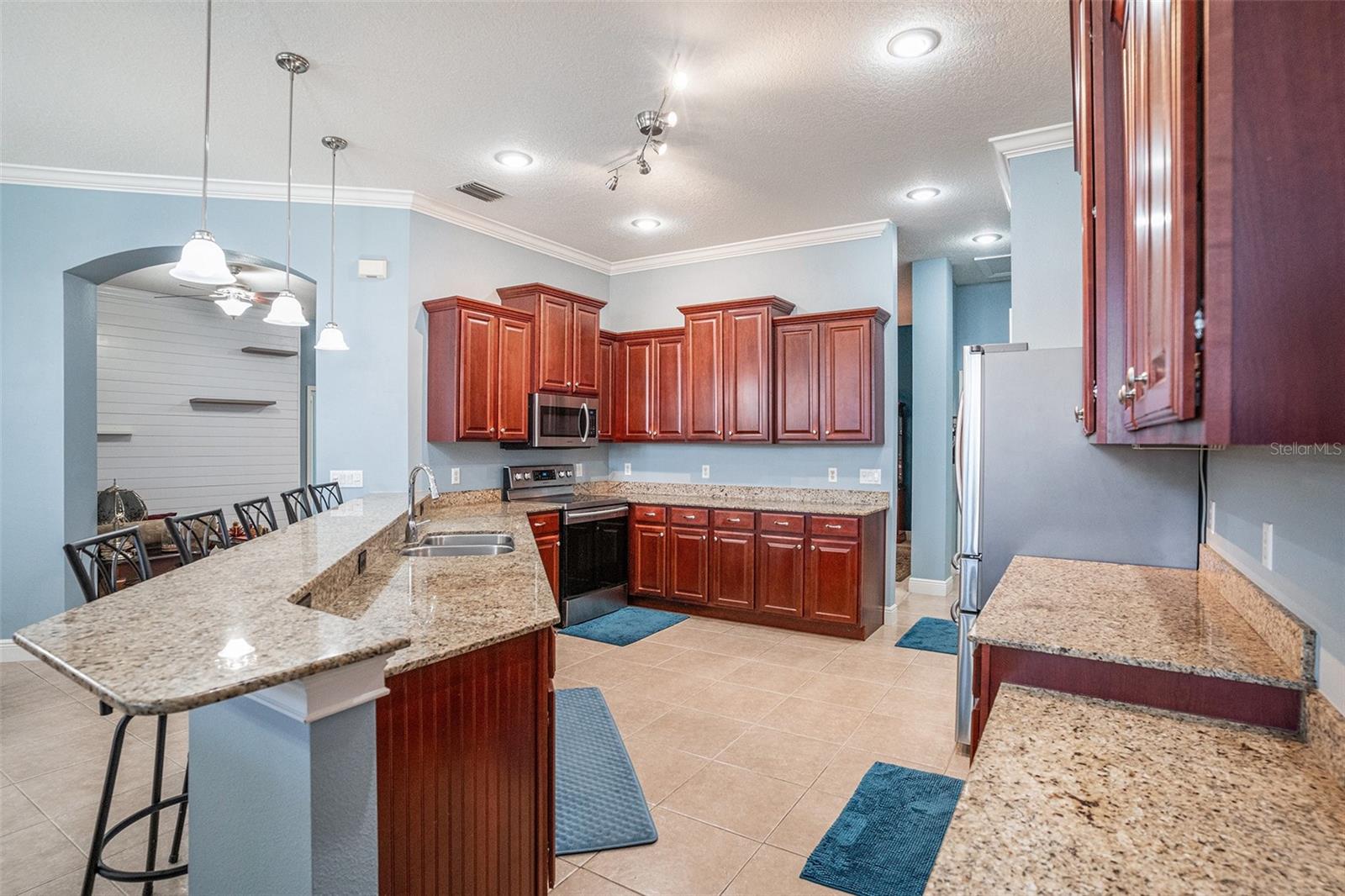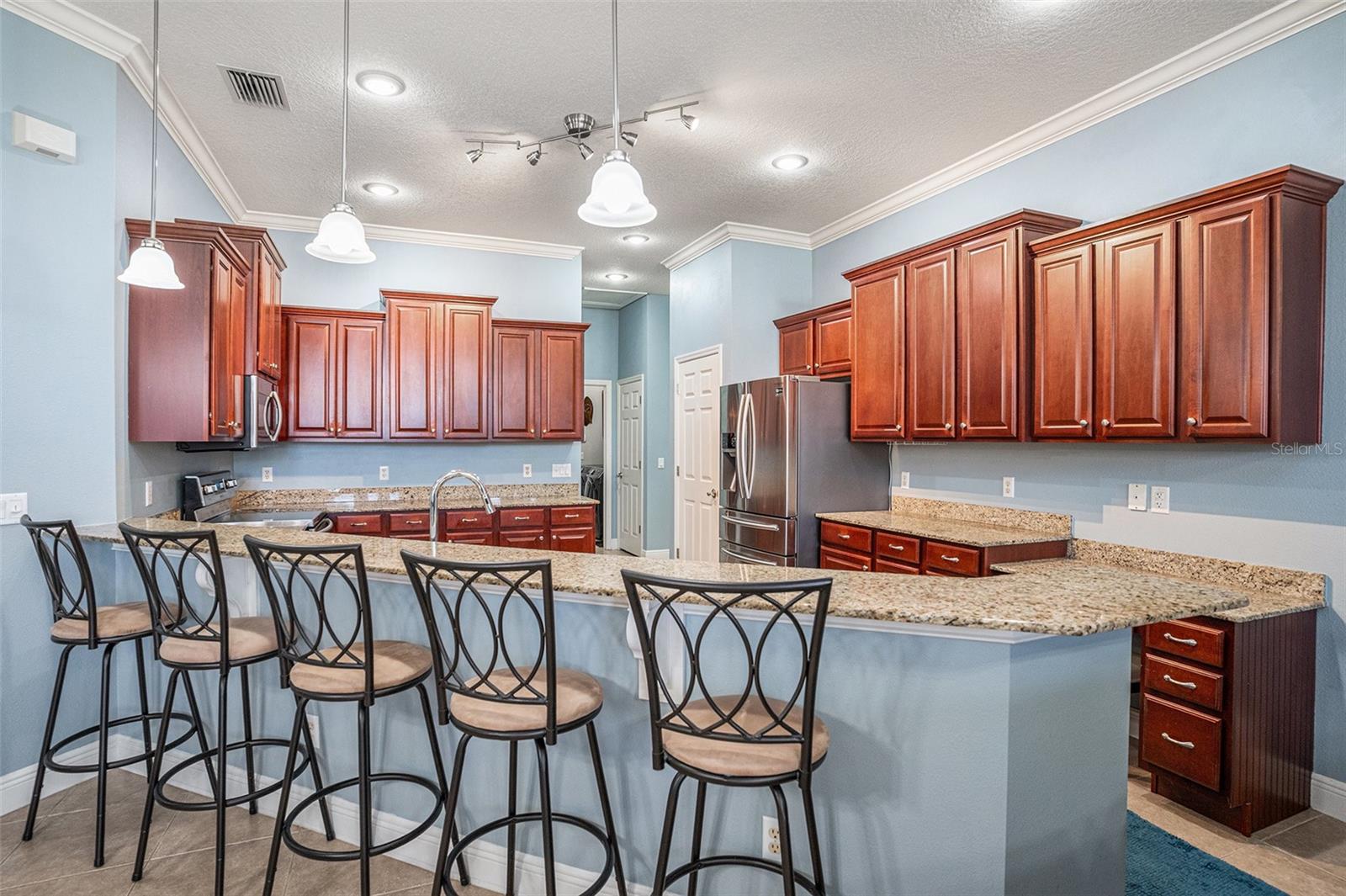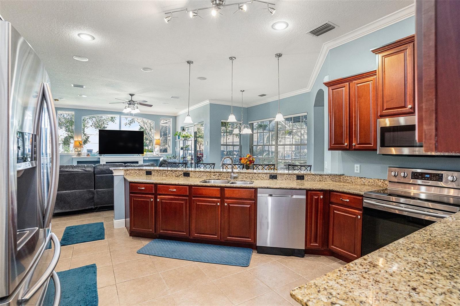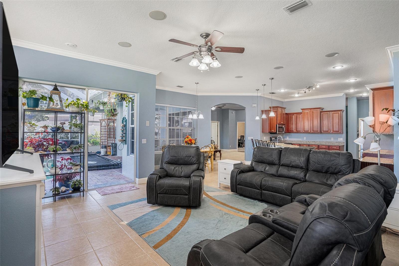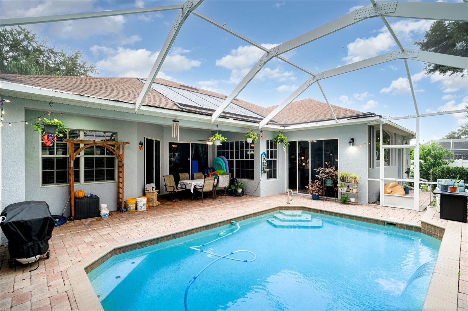 Beautiful 5-Bedroom, 3-Bath Home in Aberdeen Creek, Riverview! Built in 2007, this spacious 2,594 sq. ft. home features an open floor plan with 10-foot ceilings, crown molding, abundant natural light, and new carpeting in all bedrooms. Easy-to-maintain tile is found throughout all wet areas. The gourmet kitchen offers granite countertops, ample cabinetry, a breakfast bar, and stainless steel appliances, flowing seamlessly into the large family room—perfect for entertaining—with surround sound and six built-in speakers. Step outside to the private screened lanai and solar-heated pool, ideal for Florida living, while the fully fenced yard with new PVC fencing provides privacy. The 10,454 sq. ft. lot boasts mature landscaping and excellent curb appeal. Several areas have been freshly painted. A versatile fifth bedroom can serve as an in-law or guest suite, featuring a full bathroom with walk-in tiled shower and a separate entrance at the back of the house. Additional upgrades include a 5-year-old AC system, 3-year-old pool pump, and a brand-new roof with transferable warranty. The split floor plan includes a formal dining room and kitchen eating area. The massive primary suite offers a soaking tub, walk-in shower, dual sinks, and his-and-her closets. Enjoy Florida living at its best with very low HOA and no CDD, close to shopping, the interstate, and the Alafia River. A nearby civic center with boat ramp and a spacious 3-car garage add even more convenience. The tranquil backyard and surrounding nature complete this perfect family retreat.