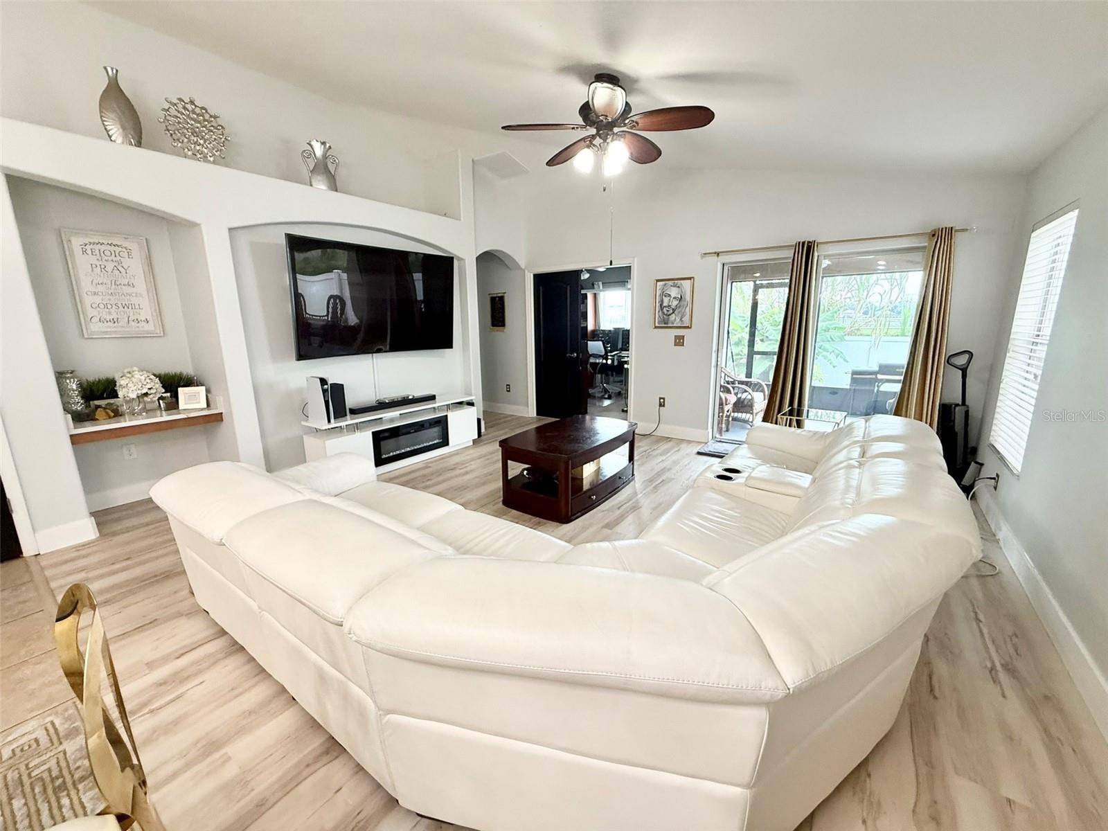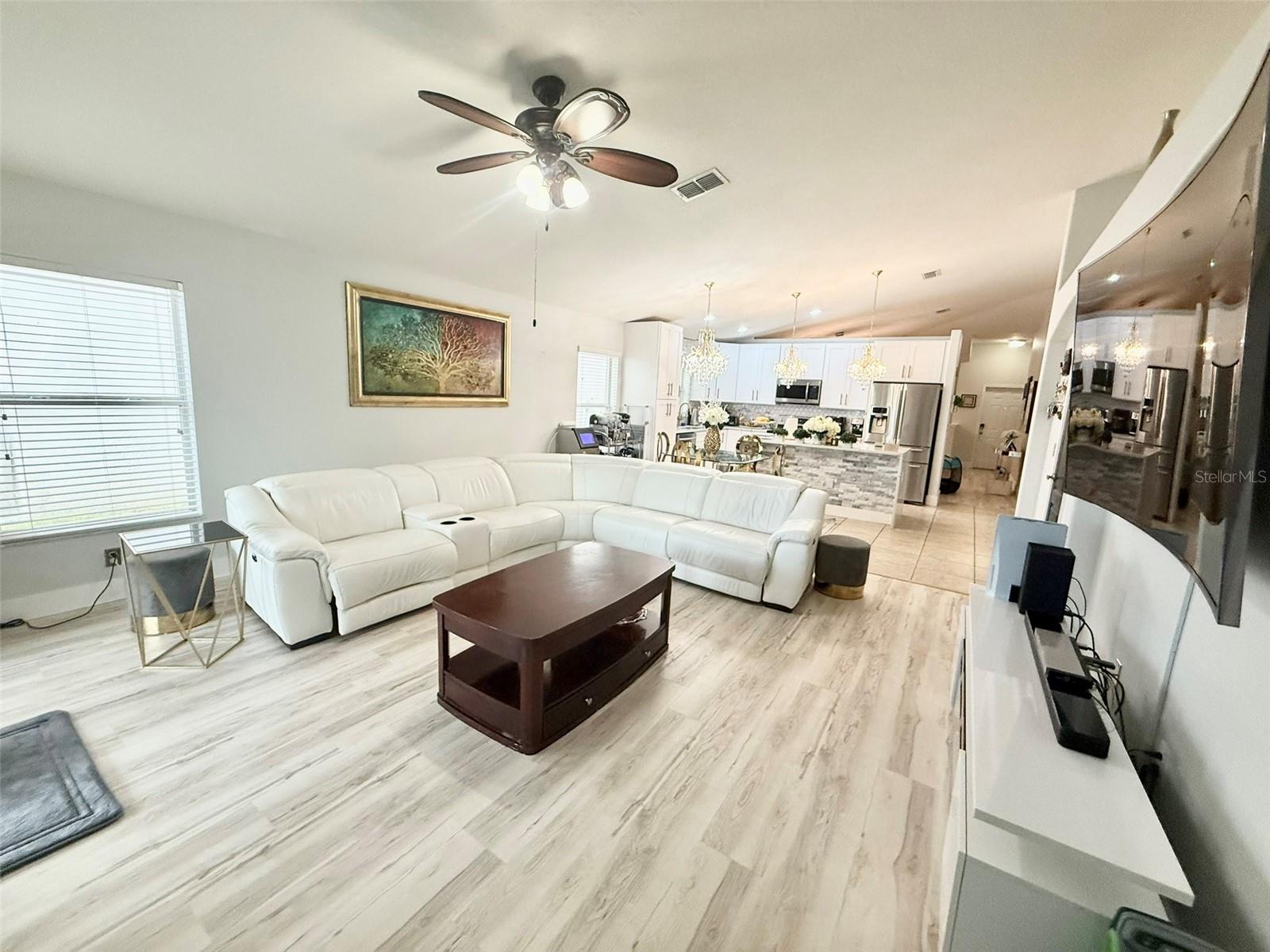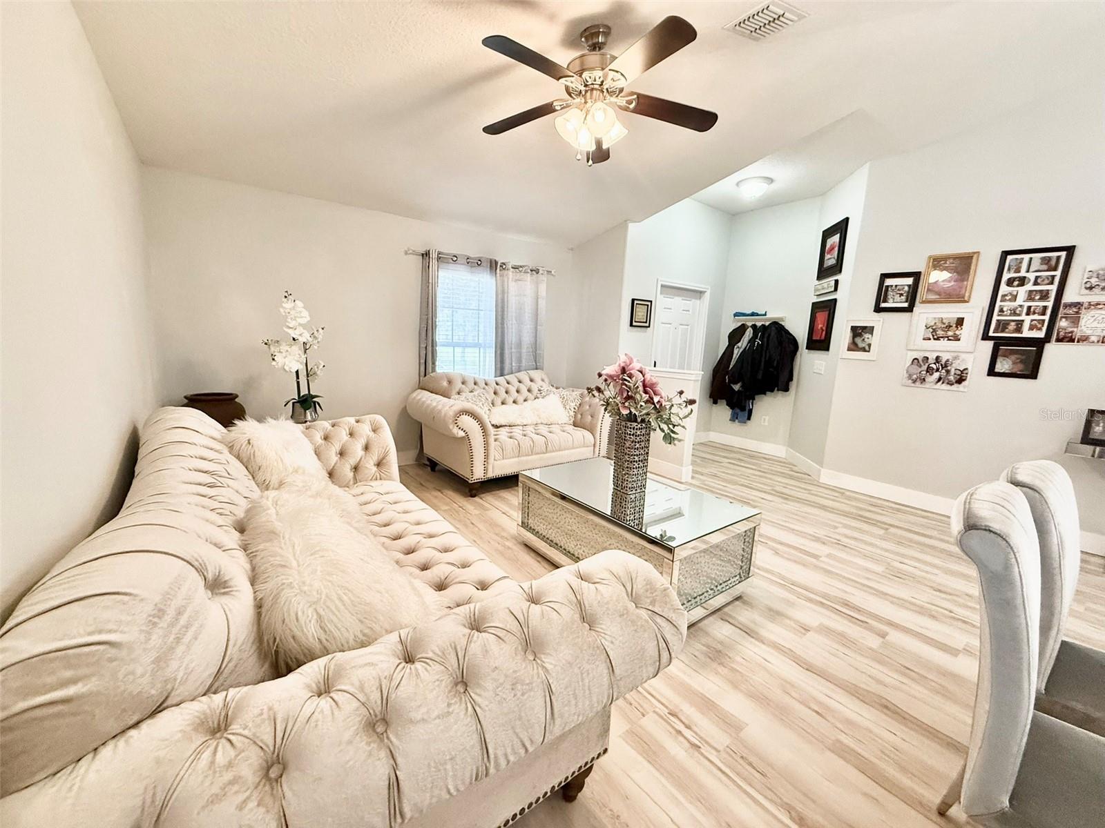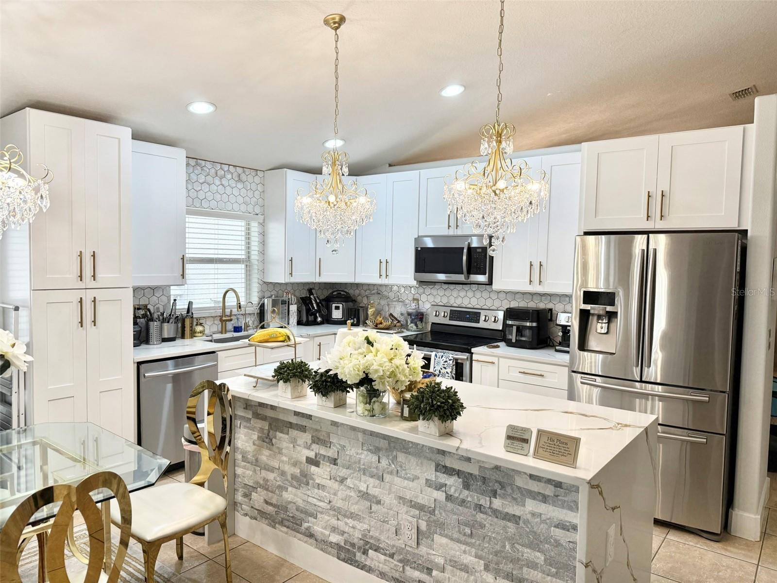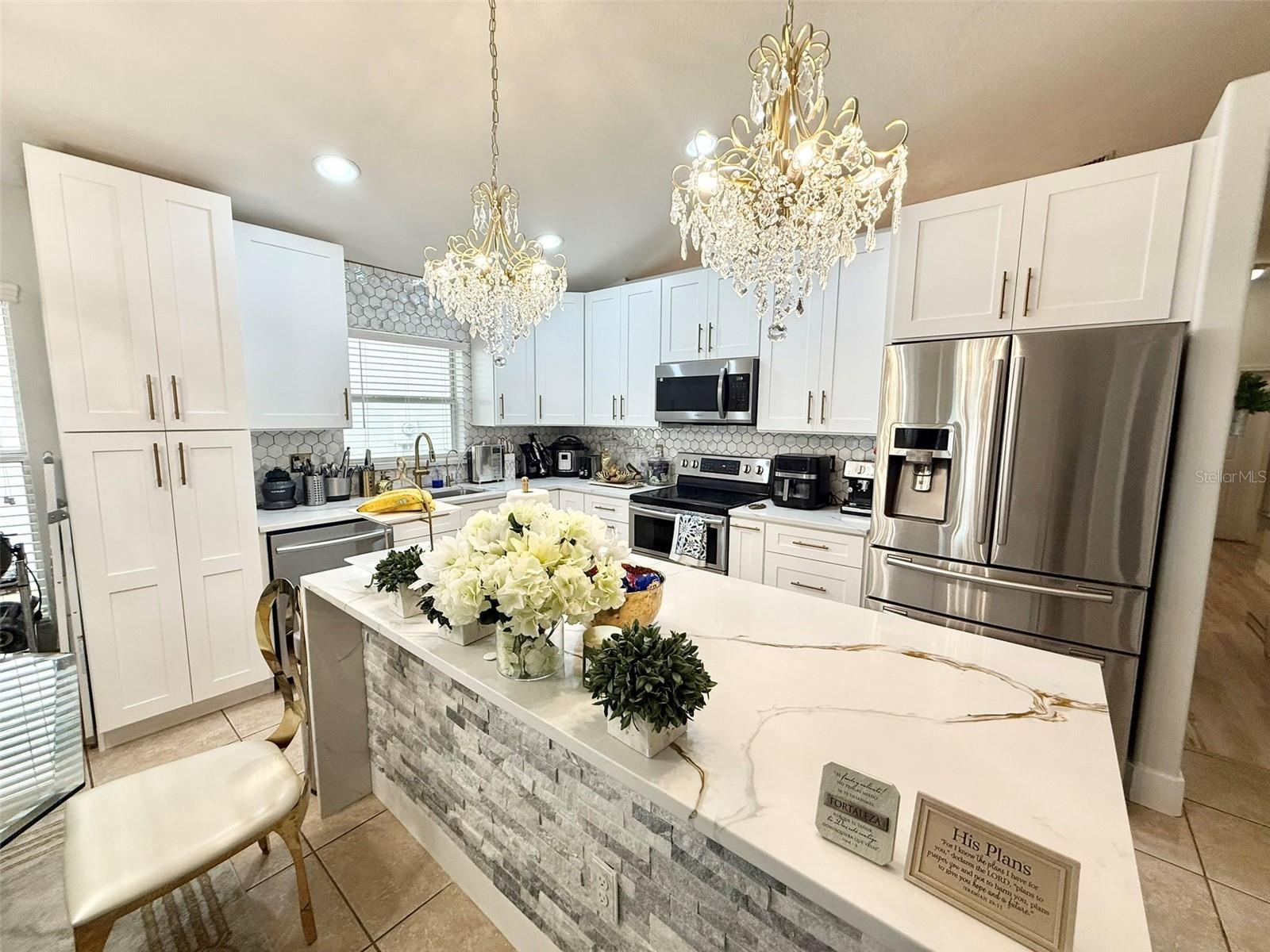 Welcome home... where elegance, comfort, and modern living come together to create the perfect Florida lifestyle. Step inside and fall in love with the chef’s dream kitchen, the true centerpiece of this home. It features a stunning oversized quartz island, tall premium cabinetry with extra storage, a designer backsplash, and luxury finishes throughout. The top-quality stainless steel appliances and open-concept design make it perfect for both everyday living and entertaining. Recent upgrades include a brand-new 2025 roof, 2024 waterproof luxury flooring, elegant lighting, and a high-efficiency German tankless water heater that helps reduce energy costs. The spacious primary suite offers abundant natural light and a spa-inspired bathroom with dual vanities, a glass-enclosed shower, a relaxing jacuzzi tub, and an oversized walk-in closet. With three bedrooms, two bathrooms, and a dedicated office that can easily serve as a fourth bedroom, there’s room for everyone. Outside, unwind in your screened lanai or enjoy the privacy of a fenced backyard with no rear neighbors—perfect for peaceful evenings or weekend gatherings. Living in Panther Trace means enjoying resort-style amenities: a lagoon-style pool, splash park, clubhouse, tennis and pickleball courts, playgrounds, basketball courts, scenic trails, and even an on-site elementary school. Located just minutes from I-75, Downtown Tampa, top-rated shopping, dining, and the Gulf Coast beaches—this move-in-ready home truly offers it all. Experience modern comfort, elegant design, and exceptional quality—all in one beautiful home.