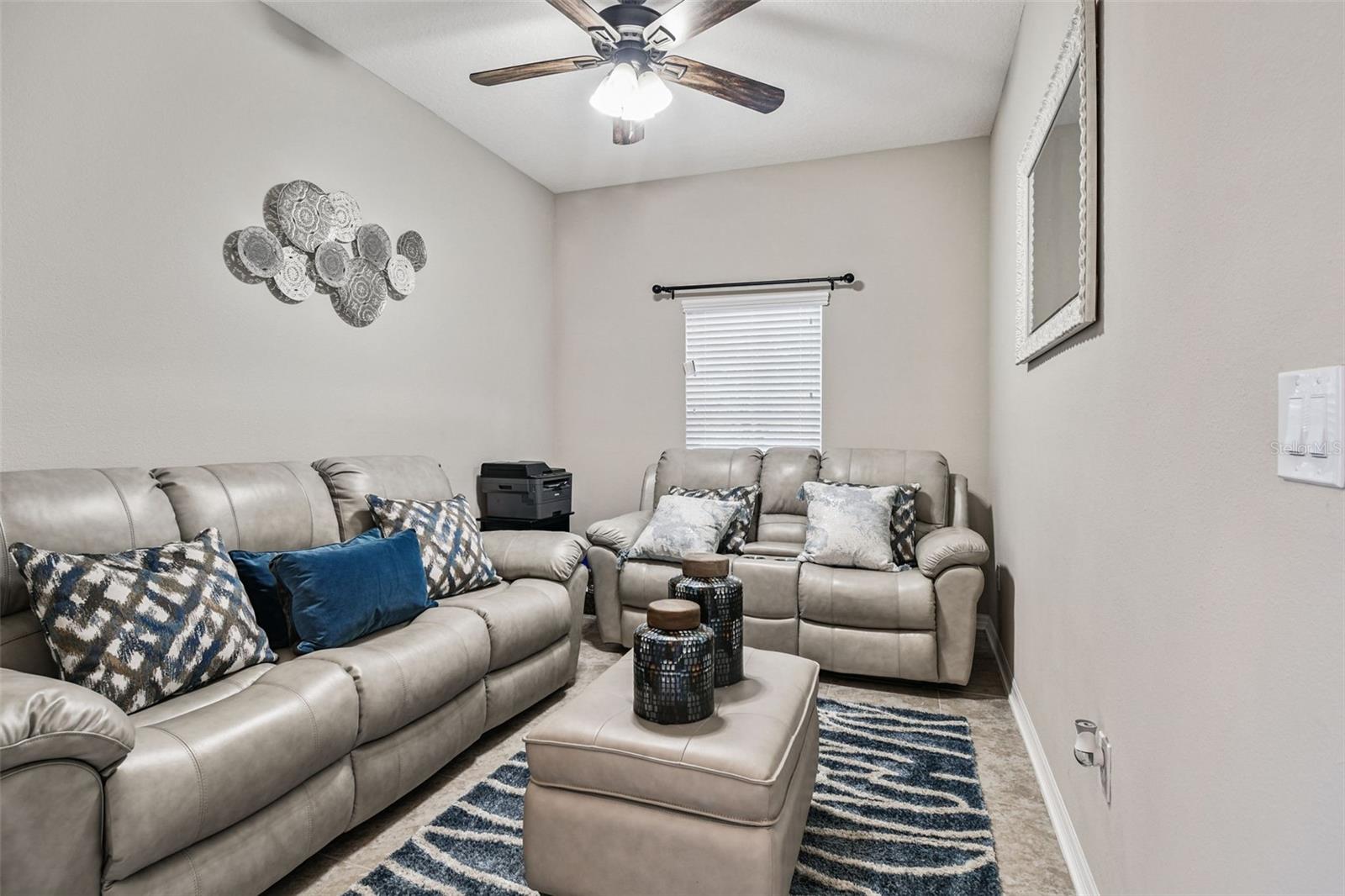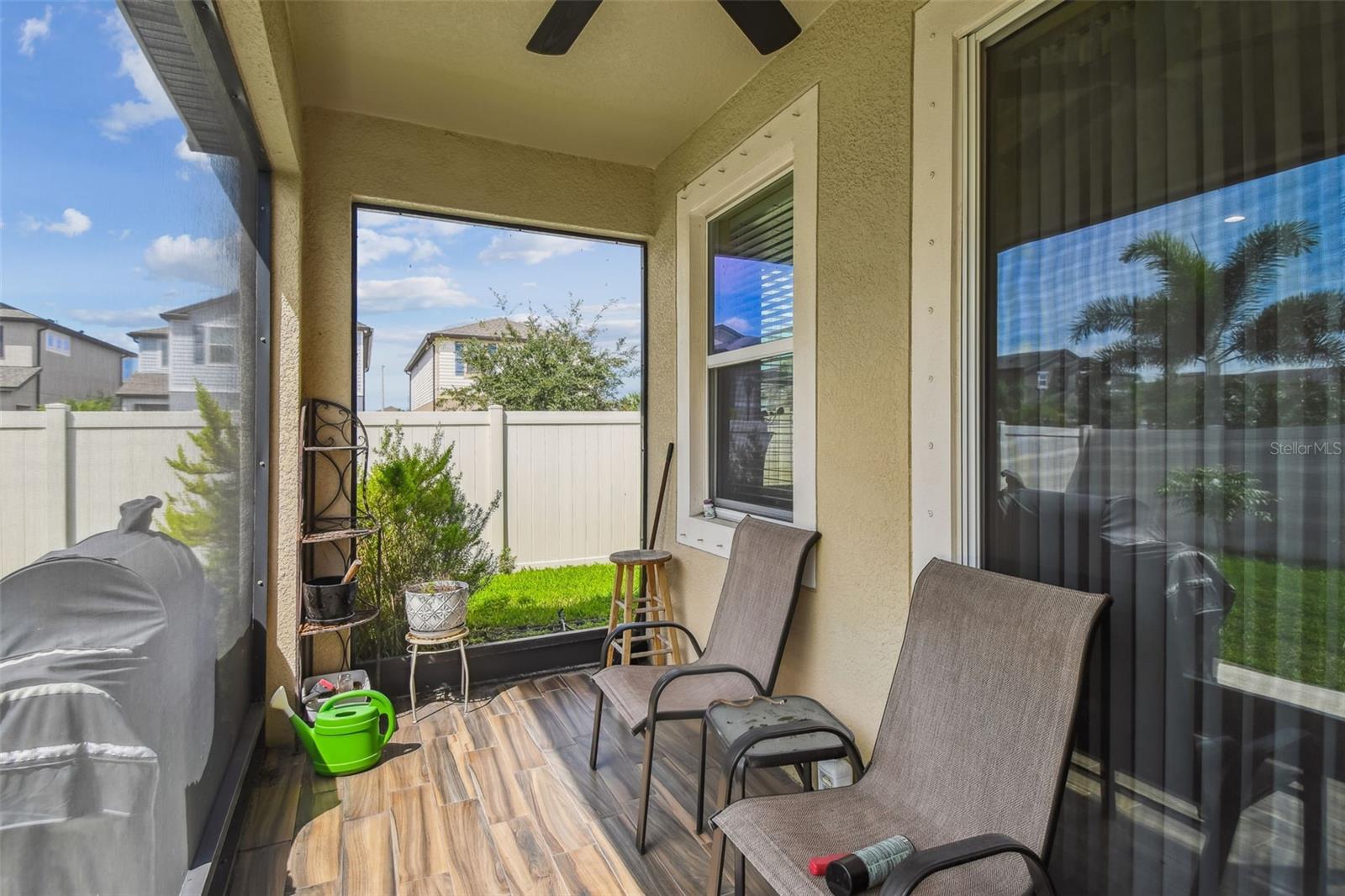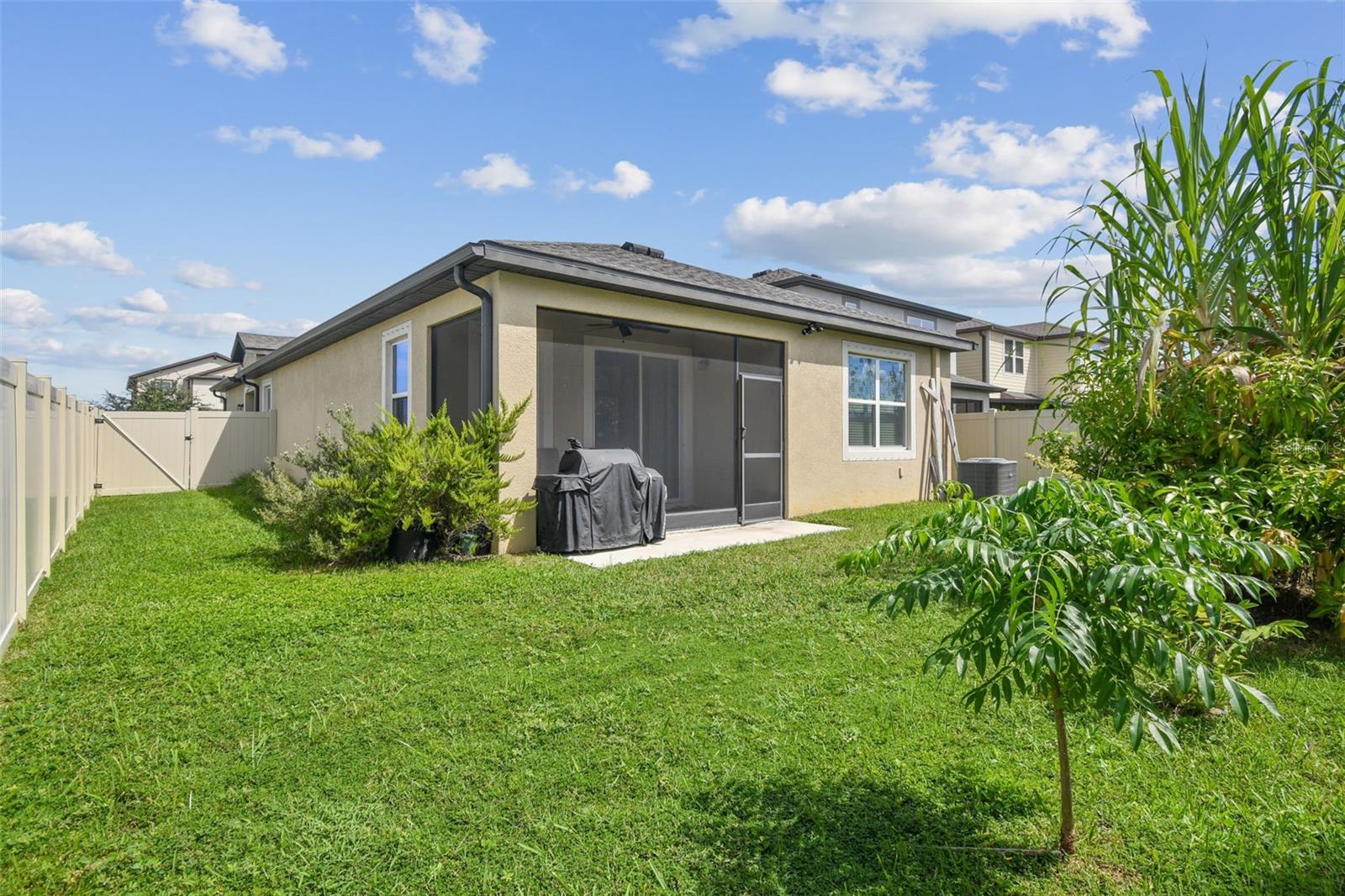 Welcome to this charming property in Ventana! This three-bedroom, two-bathroom home is ready for its new owner. Highlights include a fully fenced backyard, an upgraded chef's kitchen, custom California closets, glass doors added to showers, and tile flooring throughout. Upon entering, you'll notice the open front room, which could easily be enclosed to create an office or a fourth bedroom. Moving further, you'll find the heart of the home: the stunning kitchen. With floor-to-ceiling cabinets, double ovens, a built-in cooktop, and a subway tile backsplash, no detail was overlooked. Perfect for entertaining, the kitchen flows seamlessly into the spacious family room, filled with natural light from sliding glass doors that open to a screened-in lanai. The primary bedroom and bathroom with a cozy and comfortable retreat, while the other two bedrooms are situated separately and share a full bathroom.
