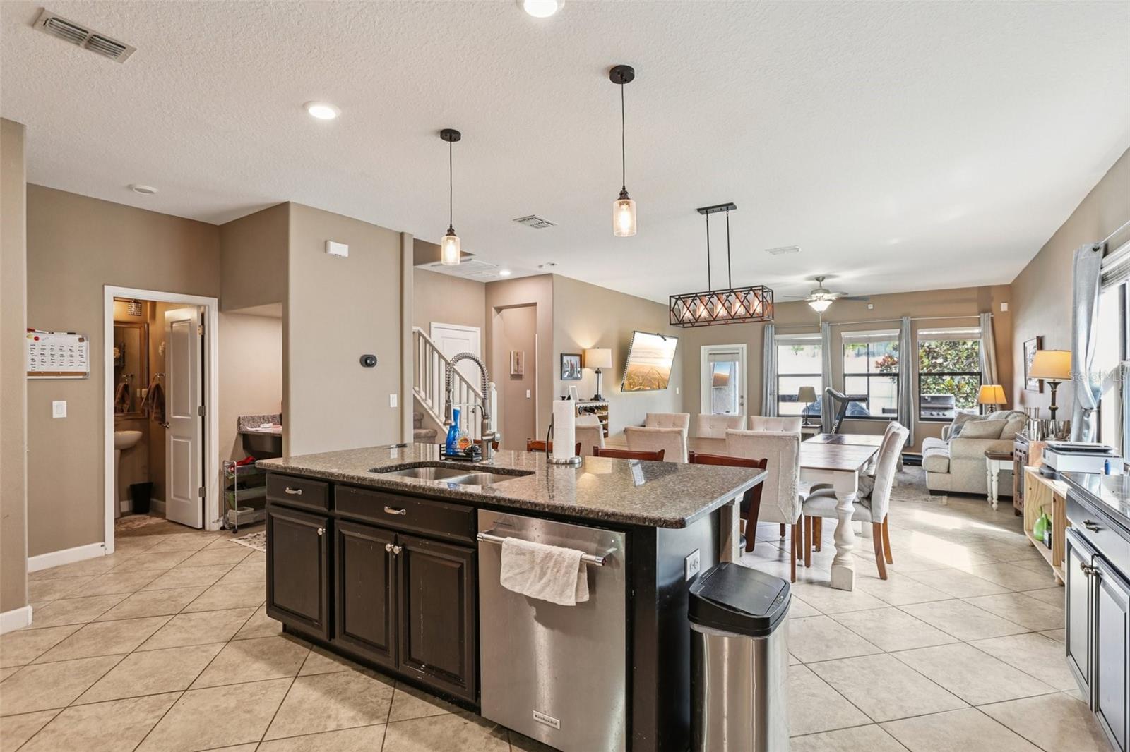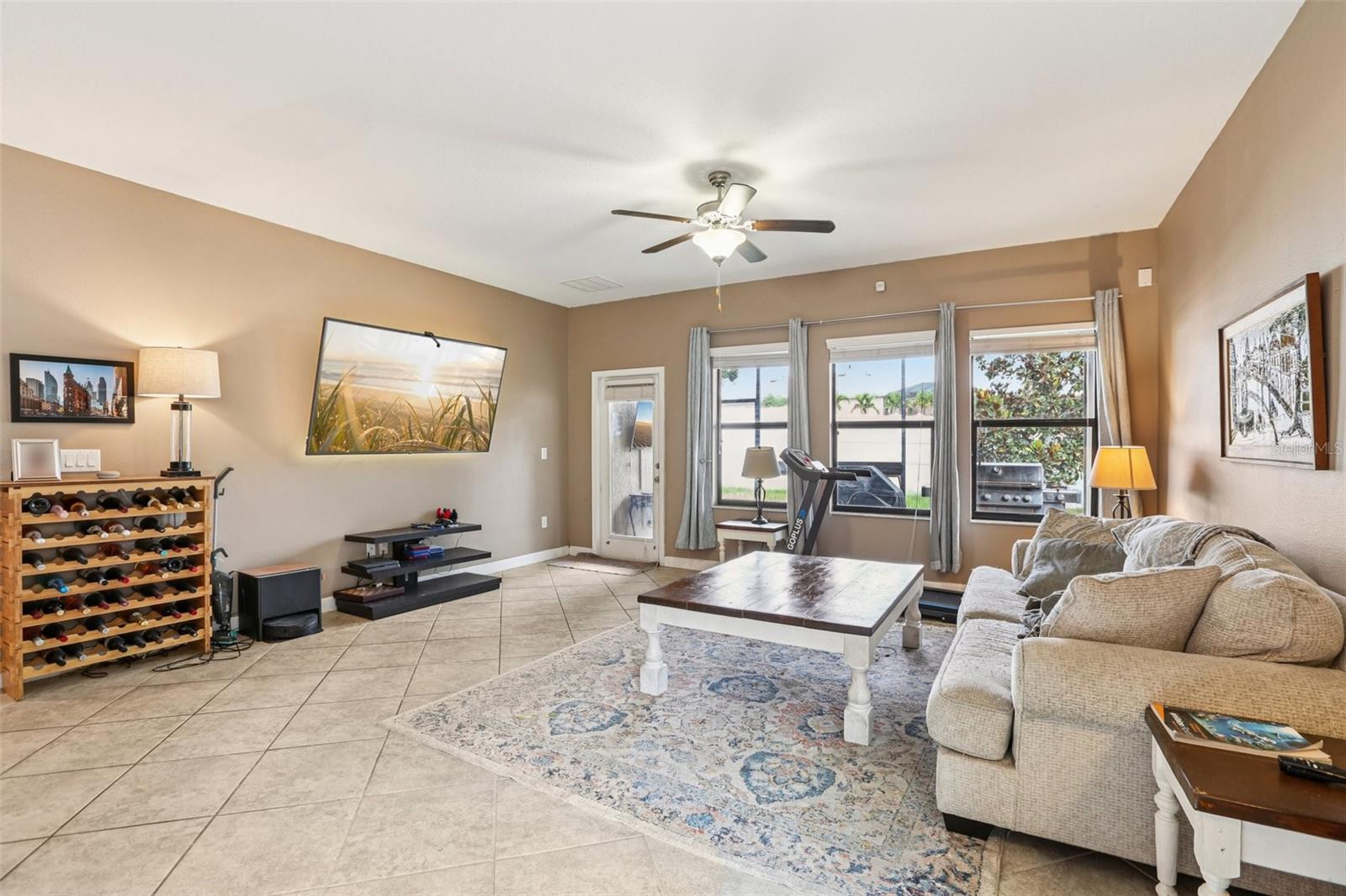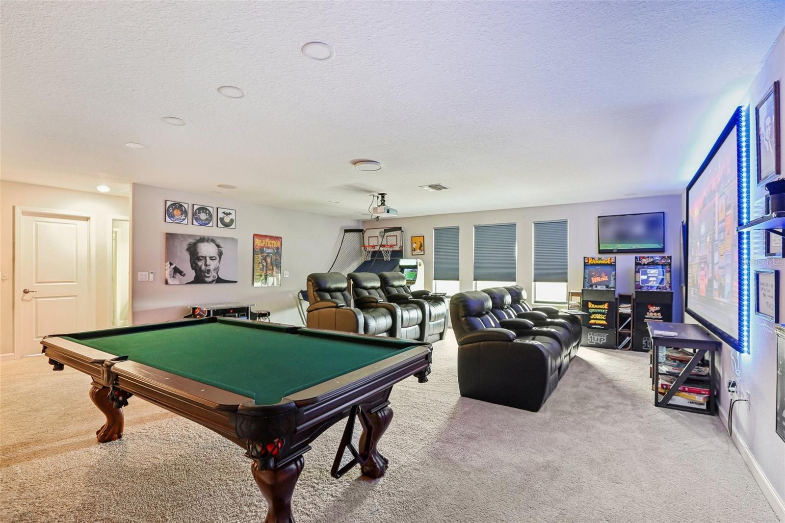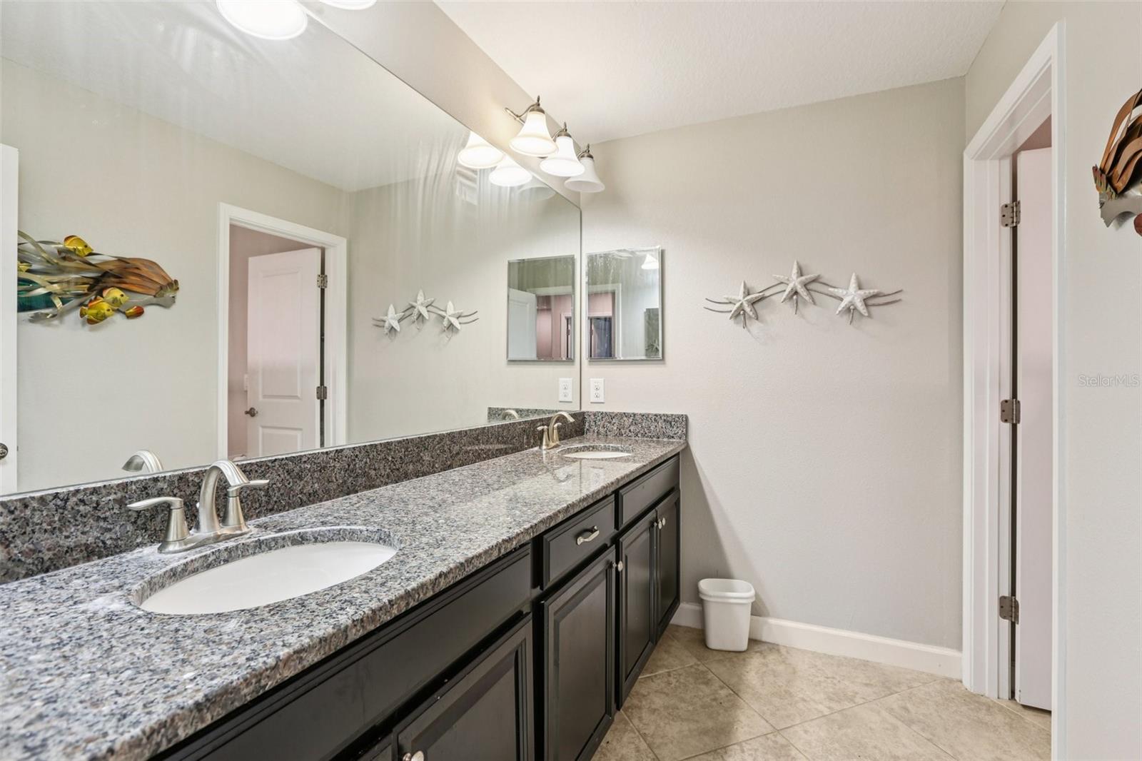 Discover the potential in this spacious 5-bedroom, 3.5-bath home offering 3,801 square feet of living space in the desirable Oaks at Shady Creek community. Built in 2017, this floor plan features a grand foyer, open-concept living and dining areas, and a first-floor primary suite with dual vanities, a garden tub, and a walk-in closet. The kitchen, complete with granite countertops and a breakfast bar, is ready for your personal touch to bring it back to life. Upstairs, you’ll find four additional bedrooms, a large bonus/media room, and plenty of space for guests, work, or play. The theater setup with seating will remain for the next owner to enjoy or reimagine. With some updating and vision, this home can shine once again. Conveniently located near I-75, Tampa, MacDill AFB, and beautiful Gulf beaches. Community amenities include a resort-style pool, playground, basketball courts, and fitness center. HOA covers lawn maintenance — making this an ideal opportunity for those looking to build equity and make a home their own!