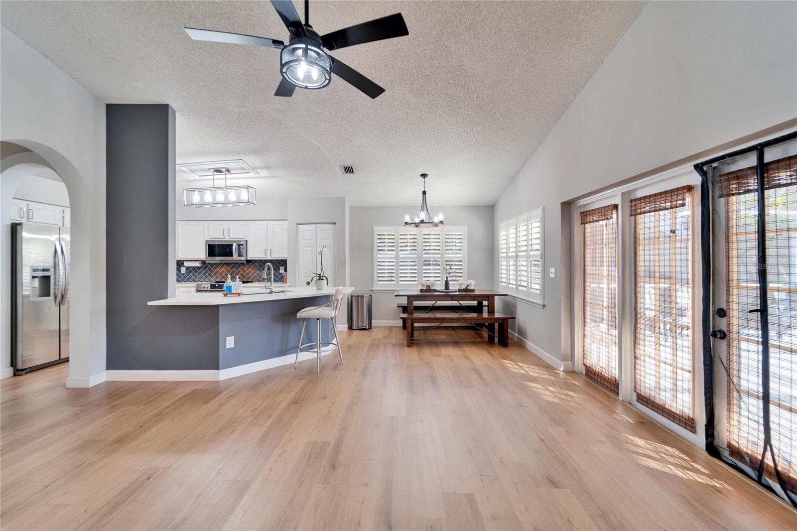 Step Into Your Dream Home in Summerfield! Welcome to this stunning corner-lot pool home nestled in the highly sought-after Summerfield community! With 3 spacious bedrooms, 2 full bathrooms, a 2-car garage, and a fully fenced yard with covered private pool, this home offers comfort, privacy, and style all in one. As you enter, you're greeted by a bright and airy living room that sets the tone for the rest of the home. Just off the entry, you'll find two generously sized bedrooms, a full guest bathroom, and a convenient laundry room. The gorgeous kitchen complete with sleek quartz countertops, an oversized sink, modern white cabinetry. The open concept dining area flows effortlessly into the family room, both offering beautiful views of your private pool. Your tranquil primary suite is tucked away for added privacy and features direct access to the pool, an ensuite bath with dual sinks, a garden tub, a separate walk-in shower, and a spacious walk-in closet. Step outside to your own backyard retreat! The fully fenced pool area is ideal for relaxing, entertaining guests, or soaking up the Florida sunshine. Plus, an additional storage shed connected to the home adds even more convenience. Don’t miss your chance to make this incredible property yours. Schedule your private tour today and start living the lifestyle you’ve been dreaming of!