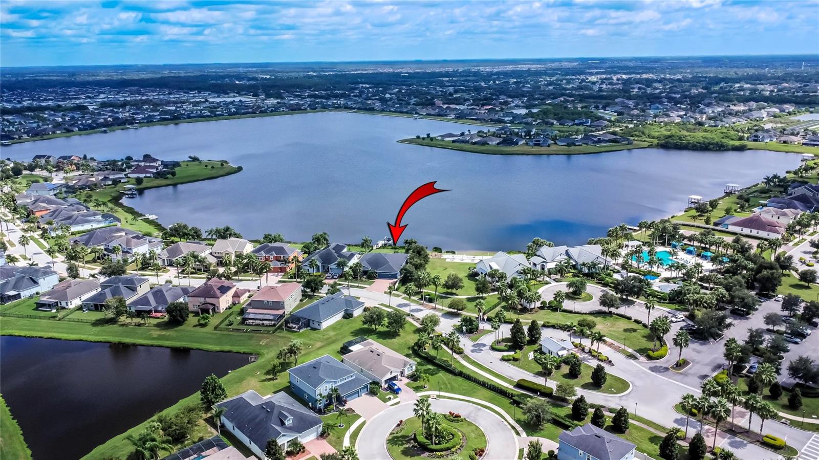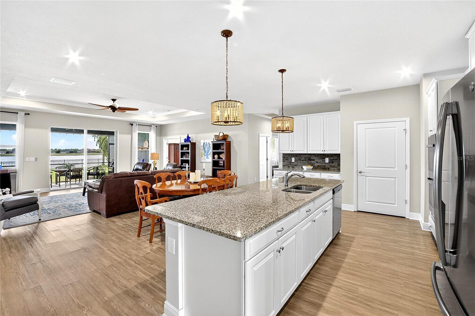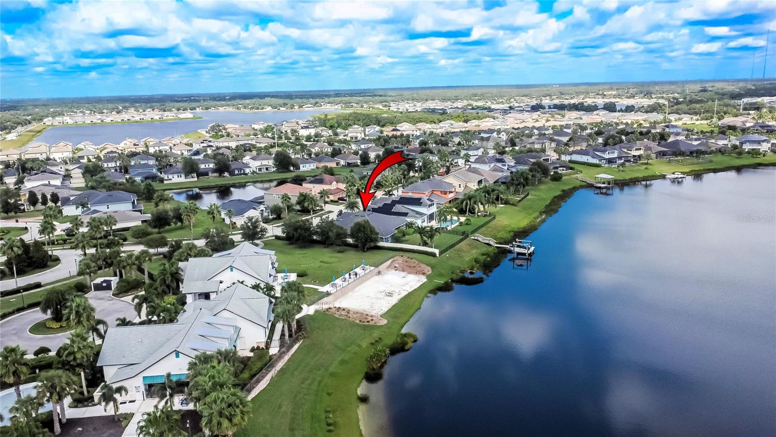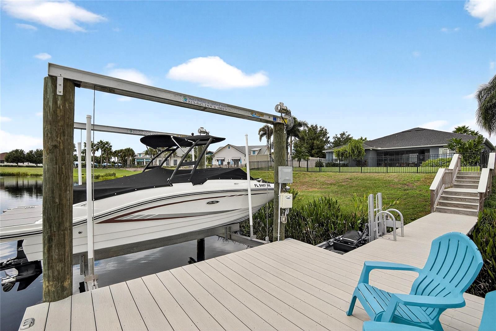 AMAZING WATER VIEWS, BOATING, AND WATERSKIING, ALL IN YOUR VERY OWN BACKYARD AT LUCAYA LAKE! Welcome to this incredible lakefront home that was an original model for the GATED LUCAYA LAKE CLUB community. With 4 Beds and 3 Baths, plus a home office and bonus room, the floorplan is ideal for everyday living and entertaining. Step inside to tall ceilings, luxury finishes, and gorgeous LVP flooring that runs throughout the main living areas, bonus room, home office, and the primary bedroom. The floor plan is open and airy and starts with a formal dining room opposite the foyer from the home office, with French doors for privacy and quiet. Next is the kitchen with a large working island with a breakfast bar, lots of counter space and cabinet storage, a closet pantry, and stainless-steel appliances that include a gas range and double ovens. All this overlooks the casual dining area and a spacious great room with sliders and views of the lake. The smart design features three wings to the home. The first is the primary suite with walk-in closets and a stunning bath with high-end finishes. The second is the bonus room with a full bath and bedroom, ideal for an in-law suite, and includes a separate entrance. The third features two more spacious bedrooms and another full bath. Extra home features include overhead storage in the garage, a whole-house generator, and hurricane shutters. With cooler months around the corner, the screened lanai is the perfect spot to enjoy the beautiful water views and entertain by putting the custom, teak wet bar with storage to good use. Or take your boat on the lake from your dock that was constructed in 2022 with composite decking, which is shared with one immediate neighbor and features an electric boat lift rated for 7,500 lbs. For active lifestyles, the community amenities are a short walk next door and include a resort-style pool, splash pad, and 24-hour fitness center. Thank you for your interest in the beautiful home and for taking the time to see it in person.
