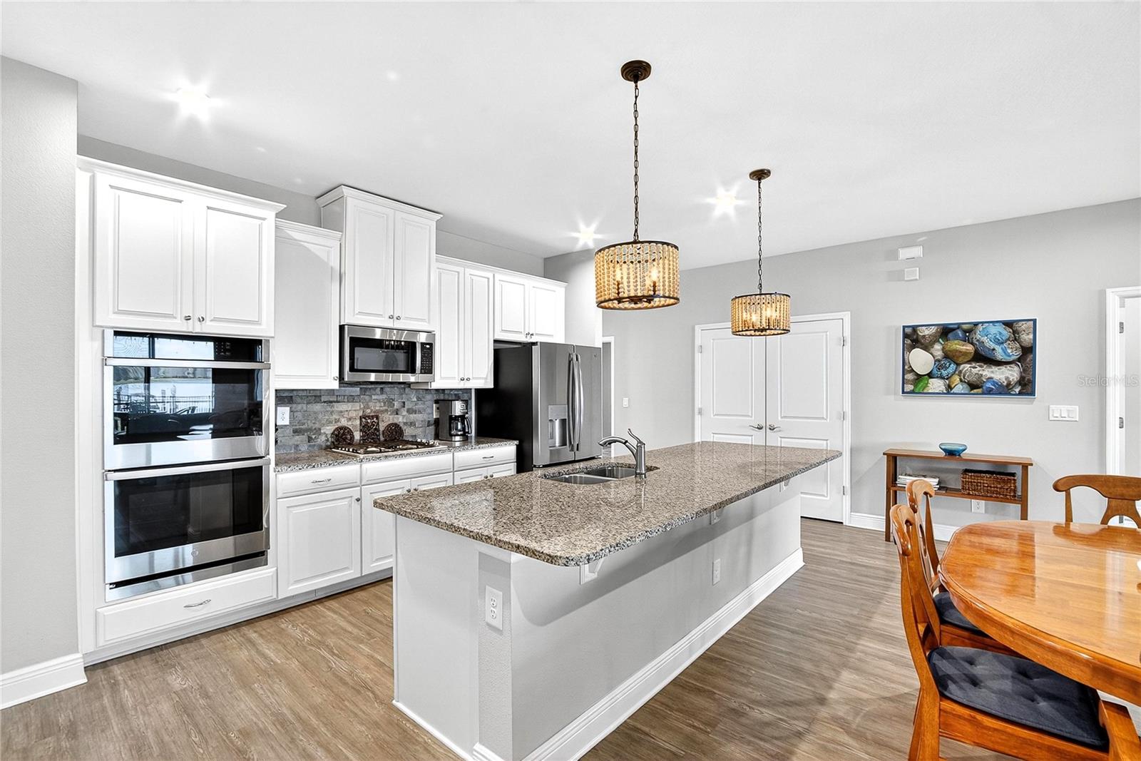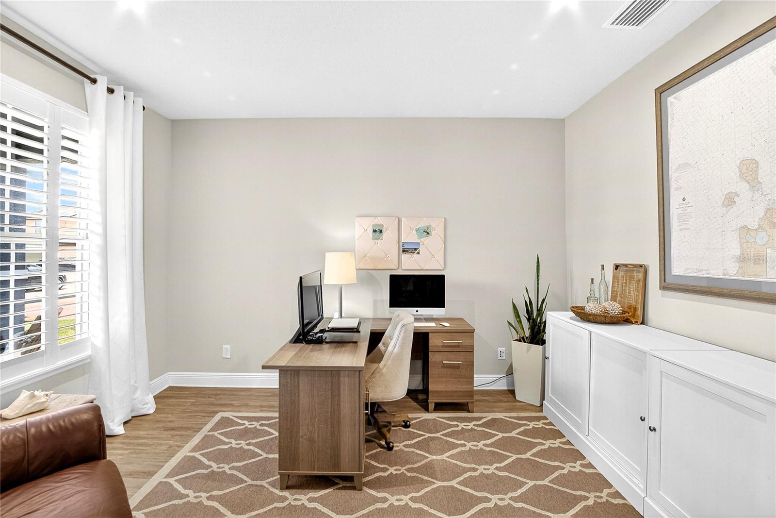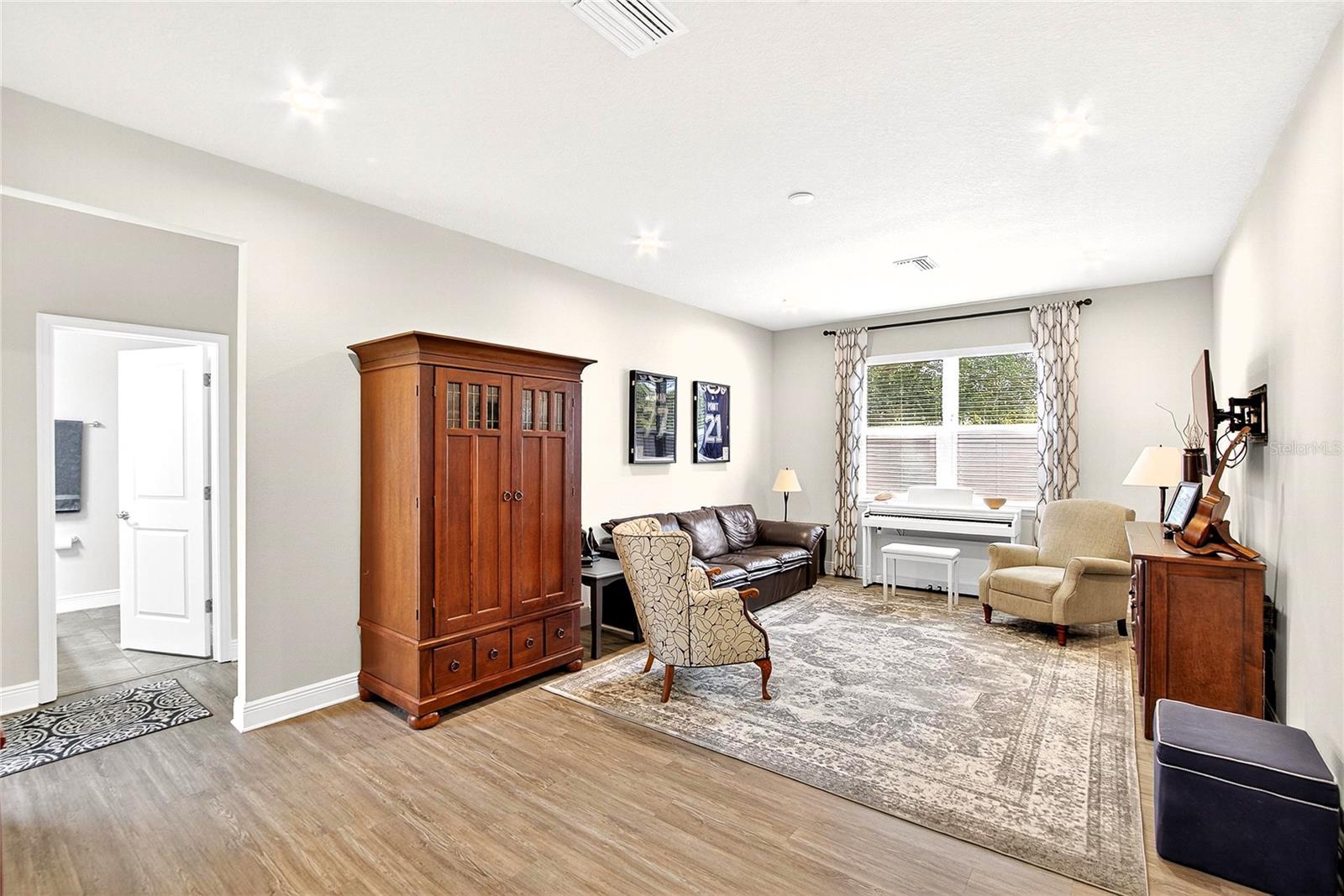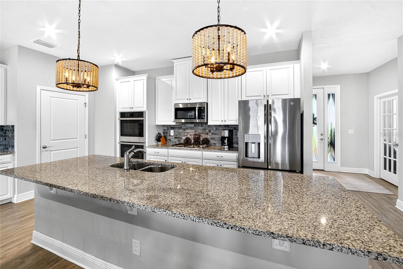 AMAZING WATER VIEWS, BOATING, AND WATERSKIING, ALL IN YOUR VERY OWN BACKYARD AT LUCAYA LAKE! Welcome to this incredible lakefront home that was an original model for the GATED LUCAYA LAKE CLUB community. With 4 Beds and 3 Baths, plus a home office and bonus room, the floorplan is ideal for everyday living and entertaining. Step inside to tall ceilings, luxury finishes, and gorgeous LVP flooring that runs throughout the main living areas, bonus room, home office, and the primary bedroom. The floor plan is open and airy and starts with a formal dining room opposite the foyer from the home office, with French doors for privacy and quiet. Next is the kitchen with a large working island with a breakfast bar, lots of counter space and cabinet storage, a closet pantry, and stainless-steel appliances that include a gas range and double ovens. All this overlooks the casual dining area and a spacious great room with sliders and views of the lake. The smart design features three wings to the home. The first is the primary suite with walk-in closets and a stunning bath with high-end finishes. The second is the bonus room with a full bath and bedroom, ideal for an in-law suite, and includes a separate entrance. The third features two more spacious bedrooms and another full bath. Extra home features include overhead storage in the garage, a whole-house generator, and hurricane shutters. With cooler months around the corner, the screened lanai is the perfect spot to enjoy the beautiful water views and entertain by putting the custom, teak wet bar with storage to good use. Or take your boat on the lake from your dock that was constructed in 2022 with composite decking, which is shared with one immediate neighbor and features an electric boat lift rated for 7,500 lbs. For active lifestyles, the community amenities are a short walk next door and include a resort-style pool, splash pad, and 24-hour fitness center. Thank you for your interest in the beautiful home and for taking the time to see it in person.