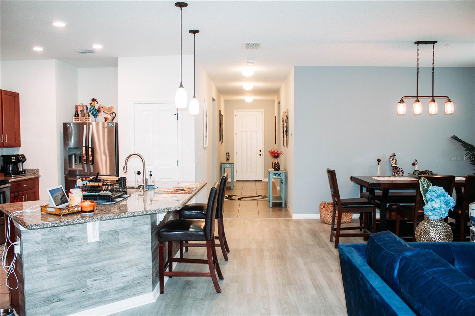 Welcome to 10626 Laguna Plains Dr in the desirable Medford Lakes community of Riverview! This beautifully updated 4-bedroom, 2-bath home offers a spacious open floor plan that’s perfect for both everyday living and entertaining. The sellers have recently installed brand-new luxury vinyl floors throughout the entire home, giving it a modern, elegant, and low-maintenance finish. Fresh interior paint enhances the open and airy feel, making the home truly move-in ready. The large kitchen is a chef’s delight, featuring an inviting eat-in bar, a spacious storage pantry, and plenty of room for cooking and gathering. The generously sized primary suite includes a walk-in closet and a luxurious bathroom with both a soaking tub and a stand-up shower. Step outside to a screened-in porch overlooking a peaceful backyard green space with serene pond views, where you may even spot cows grazing in the nearby pasture, adding a charming countryside touch to your suburban retreat. Whether you're sipping morning coffee or hosting friends and family, the tranquil outdoor setting makes this home truly special. Residents of Medford Lakes also enjoy access to a community pool, perfect for cooling off on hot Florida days. Conveniently located near shopping, dining, and schools, this home blends comfort, style, and neighborhood amenities into one perfect package. SELLERS ARE HIGHLY MOTIVATED DUE TO RELOCATION – BRING ALL OFFERS! Don’t miss your chance to call this beautiful property home. Schedule your private showing today! Please note that some photos do not reflect the updated floors.