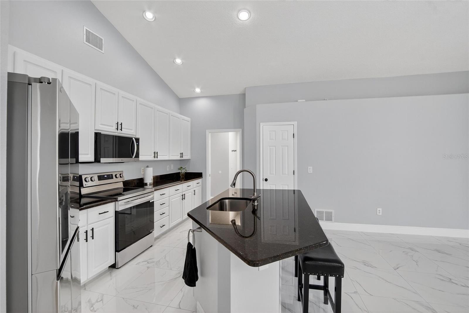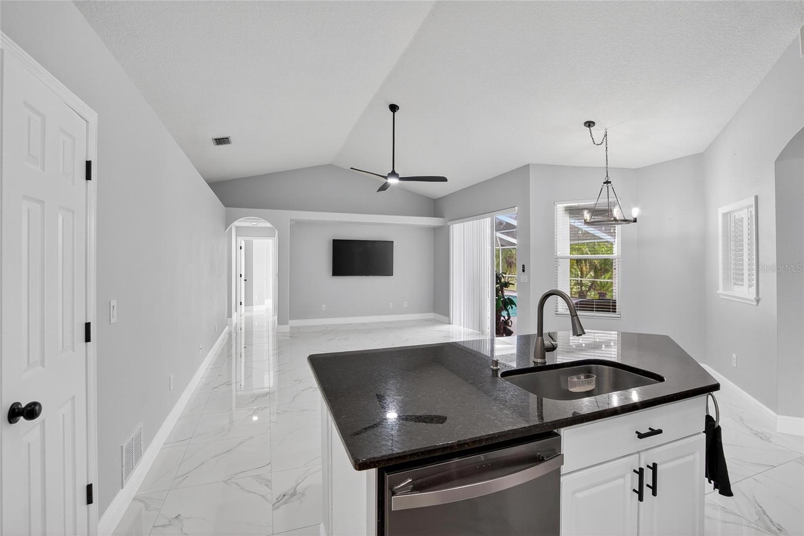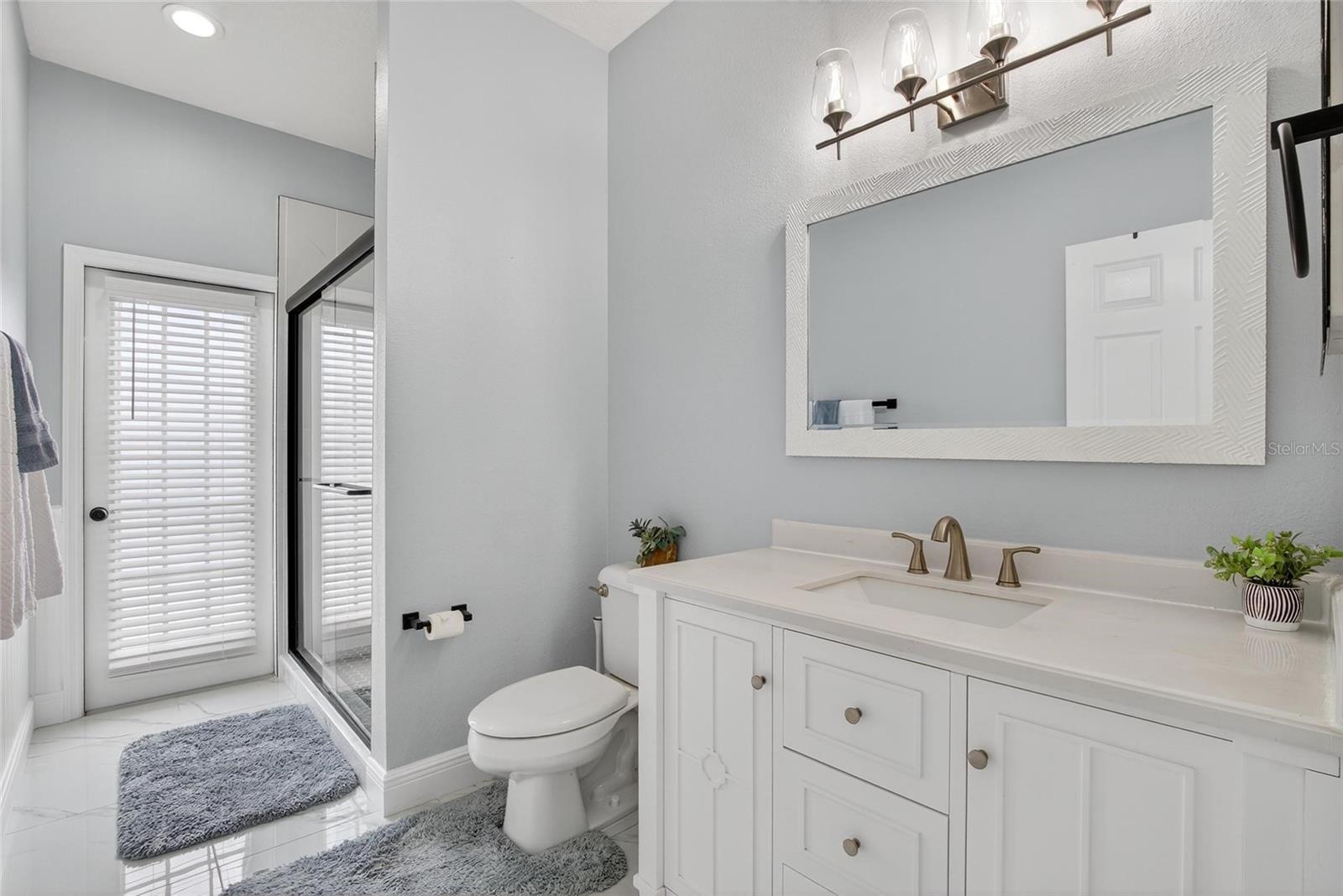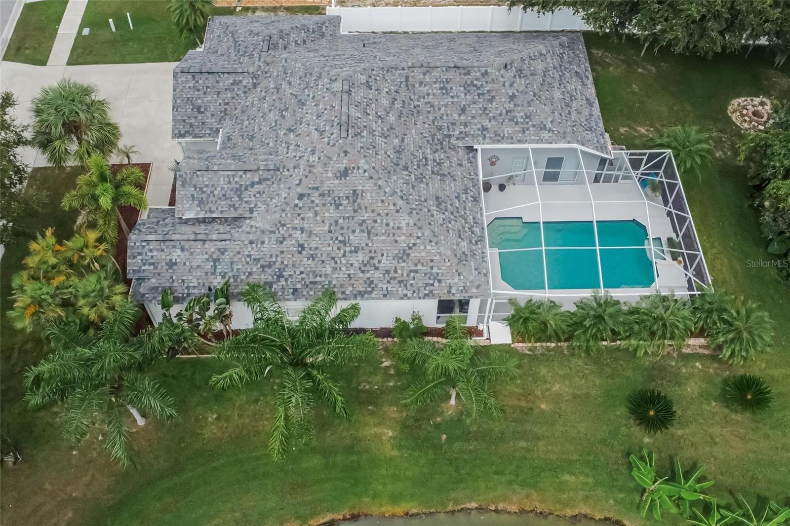 OVERLOOKING A TREE-LINED POND instead of a back neighbor, the private pool lanai behind this beautifully updated property is screened and roof-sheltered for all-weather enjoyment! It’s also just 1 highlight of the 2,270-SF home with new porcelain tile floors, new stainless-steel appliances, renovated bathrooms, granite counters, wood cabinets, and a distinctively shingled roof just 4 years old. Fruit trees and fresh landscaping adorn the yard that actually spans nearly an acre of conservation land even though you pay taxes on only the front 20%. That's typical for a place like this in Riverwatch, the security-gated section of Riverglen, but it's hard to beat among the competition! This Windward St. Croix design welcomes you through double doors to formal living and dining rooms in front, a casual family room and kitchen in back, with both areas opening through sliders to the pool lanai for expansive entertaining. The 4 bedrooms and 2 full baths are arranged with an owner suite in the right rear corner featuring dual closets, dual sinks, and its own set of sliders to the lanai; another bedroom and hallway bath that access the pool through sliders and a door; then the other bedrooms with walk-in closets in the opposite rear corner. All bedrooms feature ceiling fans and flat-screen TVs. Other quality upgrades include 2 walk-in showers with porcelain tile and rolling glass doors, a designer soaking tub in the owner's bath, and a big stainless-steel utility sink in the laundry room between the kitchen and 3-car garage. Perhaps best of all, it's in an excellent neighborhood with playground parks and sports courts near fine schools, shops, restaurants, recreation options and transportation routes. You want to live here!