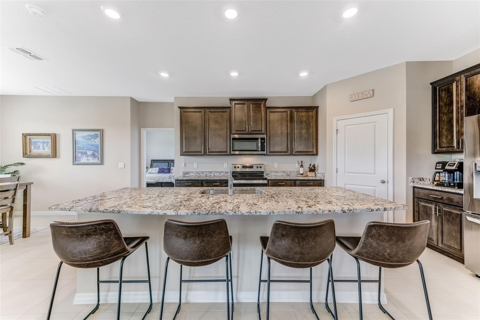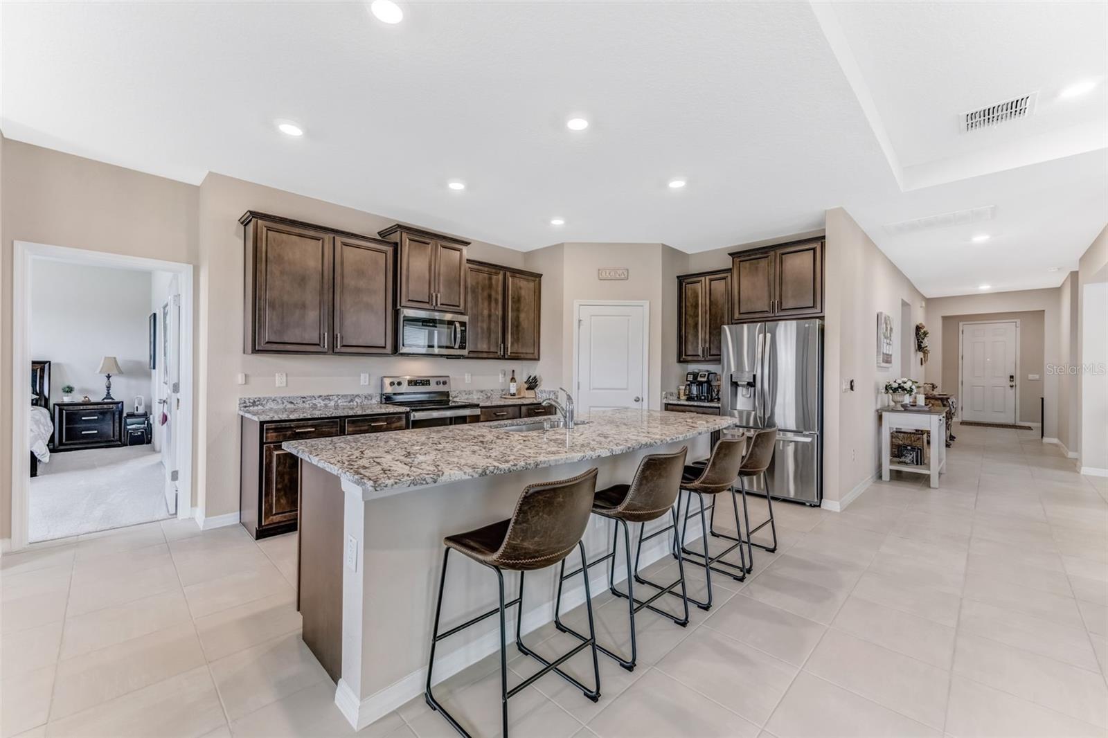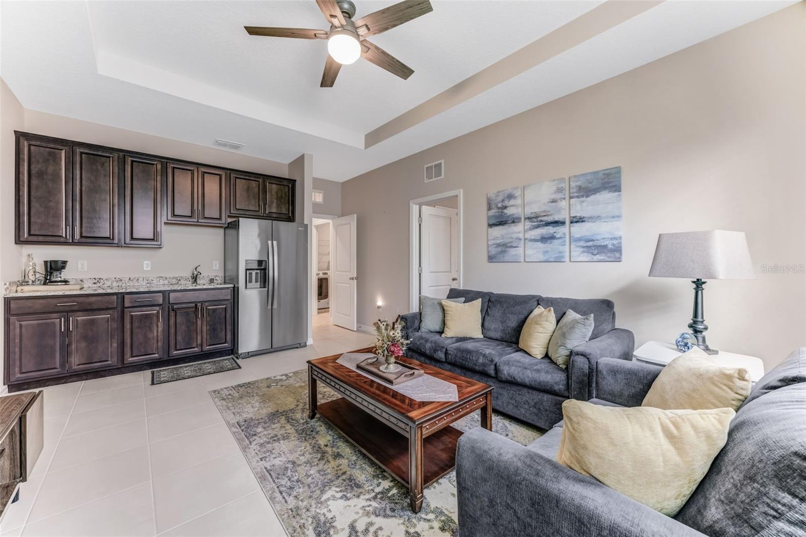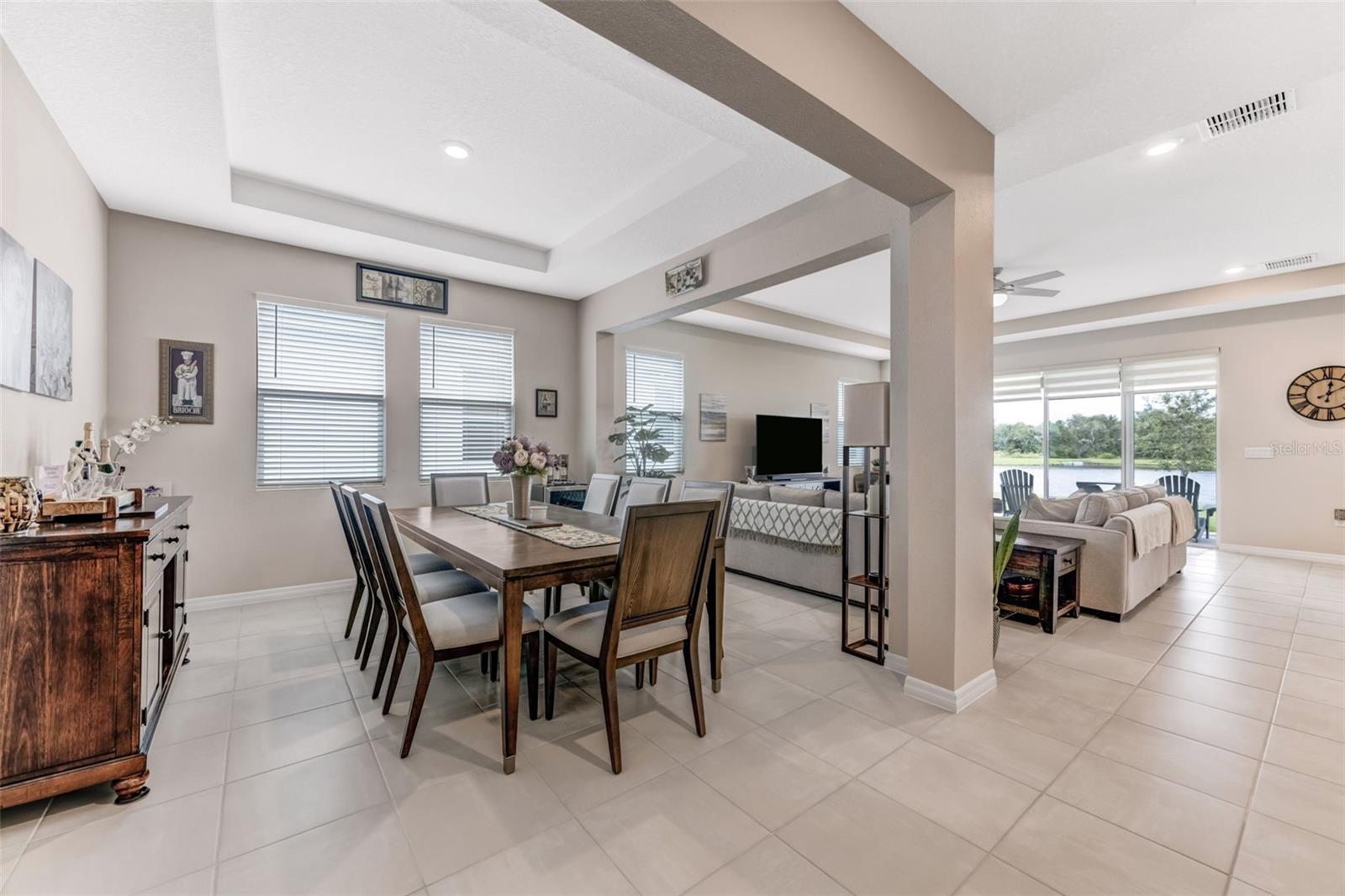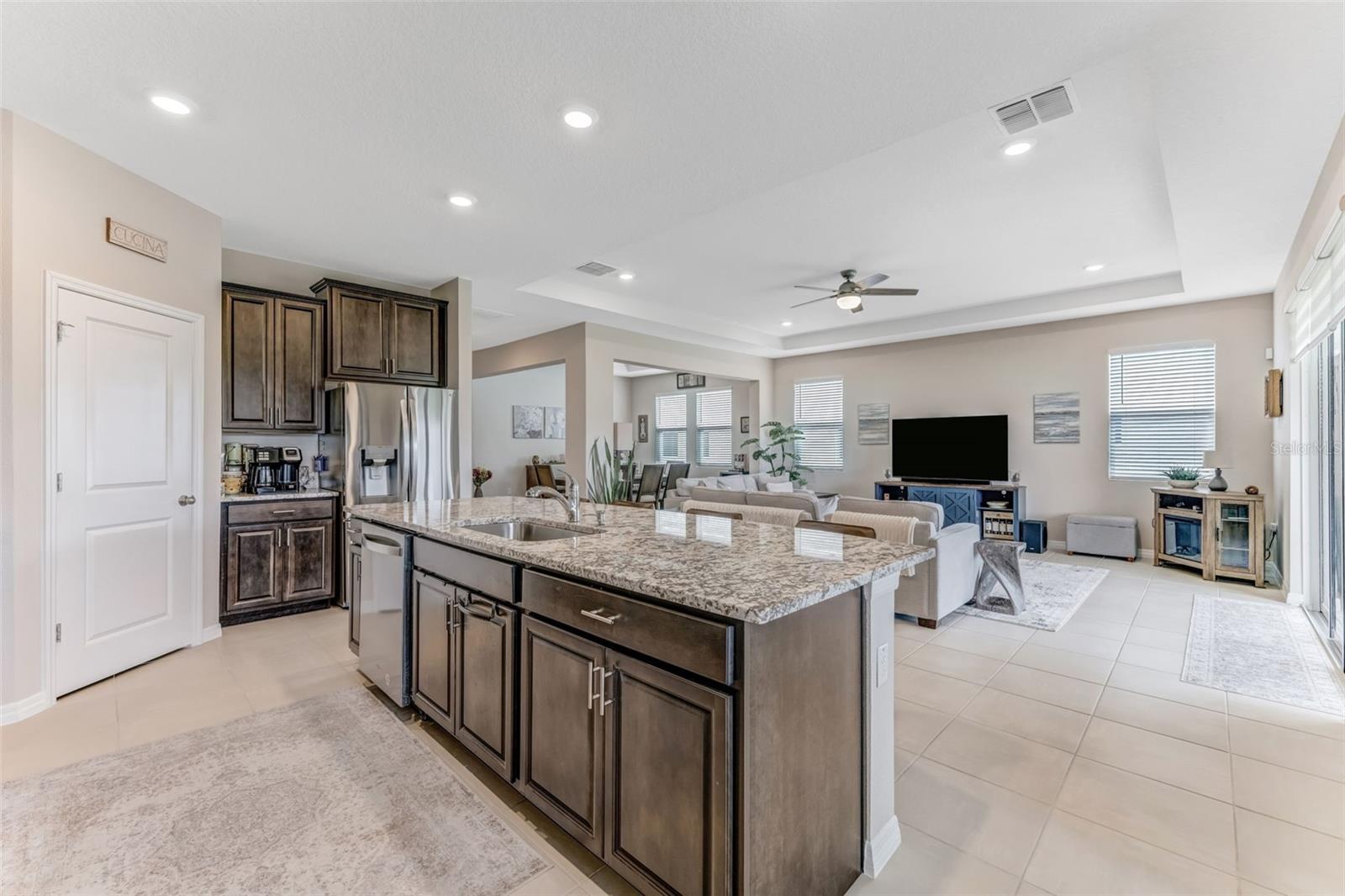 PRICE ADJUSTMENT AND UP TO $10,000 IN SELLER CONCESSIONS AVAILABLE-USE IT TO REDUCE CLOSING COSTS OR HELP BUY DOWN YOUR INTEREST RATE! Where modern comfort meets family living on one of the most desirable POND and CONSERVATION lots in the community, this spacious 4 bedroom, 3.5-bathroom home with a 3-car garage has been lovingly maintained and upgraded so the next family can move right in without lifting a finger. Inside, the inviting open-concept layout showcases a large kitchen island with seating, stone countertops, stainless steel appliances, and convenient pull-out shelving in the cabinets, all flowing into the breakfast nook where you can enjoy morning coffee with peaceful WATER VIEWS. The SEPARATE IN-LAW SUITE offers its own living room, kitchenette with fridge and sink, full bathroom with walk-in shower, and private bedroom ideal for MULTIGENERATIONAL LIVING, visiting family, or even a private office retreat. Walk-in closets have been thoughtfully customized with shelving to maximize storage, while new ceiling fans with remotes, faux wood blinds, smart lighting, and upgraded hardware throughout add both comfort and style. Imagine family dinners in the oversized dining room with elegant tray ceiling detail, or cozy evenings in the living room where sliding glass doors open to a COVERED PATIO overlooking the pond and conservation area (FENCES ALLOWED) creating the perfect backdrop for entertaining or simply relaxing at home. The spacious owner’s suite offers another tray ceiling, a spa-like bathroom with dual vanities, garden tub, walk-in shower, and a generous walk-in closet. Even the practical spaces have been UPGRADED, from the laundry room with its added UTILITY SINK and CABINETRY to the garage with EPOXY COATED FLOORING, ceiling-mounted HEAVY-DUTY STORAGE RACKS, and shelving to keep everything organized. And when it’s time for fun, the community AMENITIES are just steps away - only a 30-second walk to the resort-style pool, playground, pickleball and tennis courts, all set against the same beautiful pond and conservation views. Families will also love having O2B Kids nearby, a nationally accredited early learning center offering preschool, after school care, and summer camp programs. With its prime location, extensive upgrades, and MOVE-IN READY CONDITION, this home is the perfect place to create lasting memories for years to come.