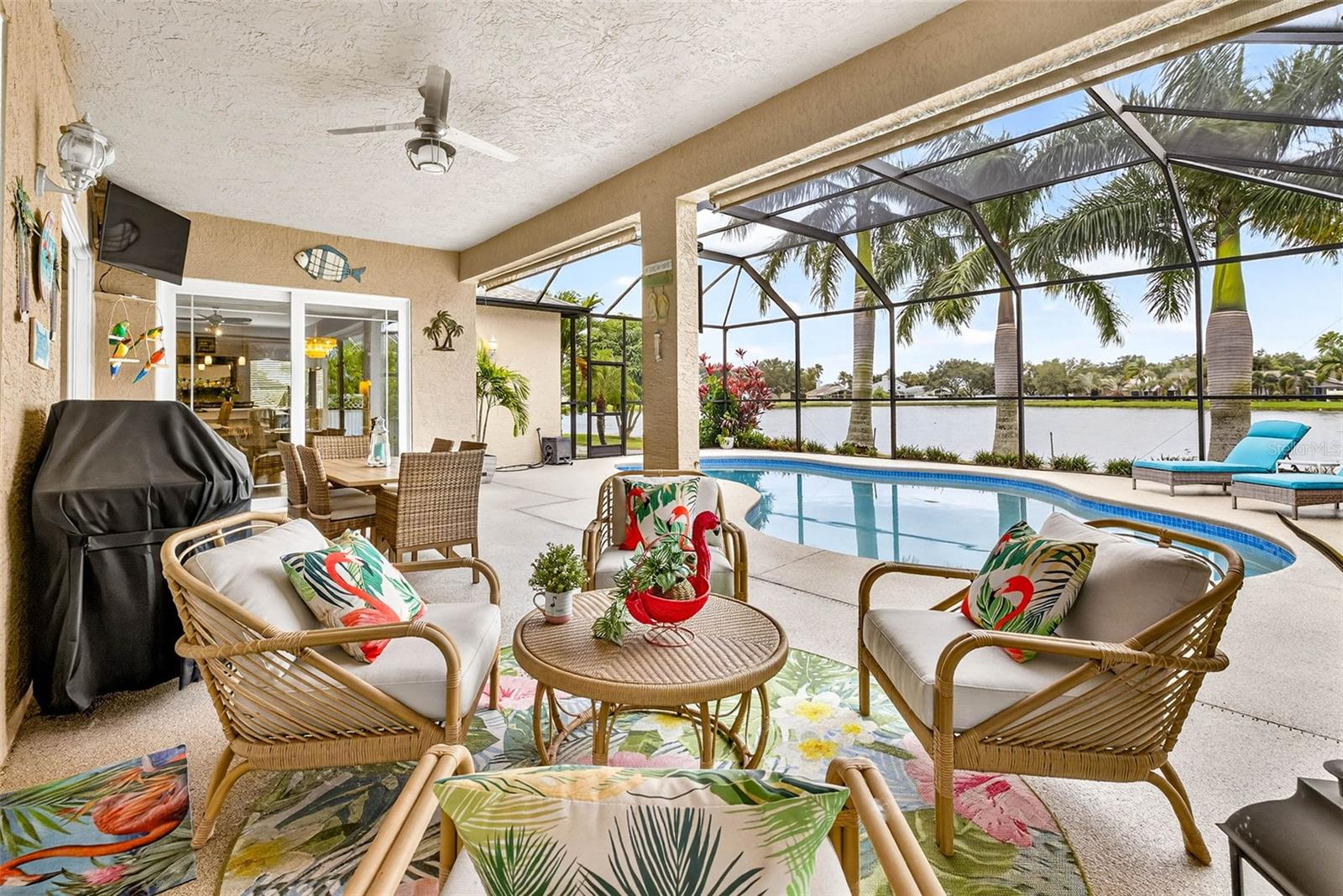 Executive Pool Home with STUNNING WATER VIEWS and a 3-Car Garage! ~ Discover this exceptional 4-bedroom, 3-bathroom EXECUTIVE POOL HOME with a 3-car garage, ideally set on a LARGE SPARKLING POND that feels like your own private lake ~ Located in the quiet, preferred community of PAVILION, just outside of Tampa and Brandon, this home offers a peaceful setting with QUICK, EASY ACCESS to I-75, the Crosstown Expressway, and I-4 — putting shopping, dining, and downtown Tampa just minutes away and makes weekend getaways effortless ~ From the moment you arrive, the beautiful CURB APPEAL and SPACIOUS DRIVEWAY make a lasting impression. Inside, you’ll find GENEROUS LIVING AND DINING ROOMS that offer the perfect spaces for gatherings or quiet evenings. The OPEN KITCHEN AND FAMILY ROOM serve as the heart of the home — bright, welcoming, and designed for easy living. The kitchen features abundant cabinetry, extensive counter space, a breakfast bar, and a casual dining nook that overlooks the water and pool area ~ The PRIMARY SUITE is a true retreat, featuring private access to the screened lanai and a luxurious bath with dual vanities, a soaking tub, and a separate walk-in shower ~ Three additional bedrooms and two full baths are thoughtfully arranged to provide both privacy and convenience for family and guests ~ Step outside to your personal paradise — a SCREENED POOL AND LANAI with PANORAMIC POND VIEWS that create a sense of serenity and space rarely found. Whether you’re hosting a weekend barbecue, taking a sunset swim, or simply relaxing by the water, this is FLORIDA LIVING AT ITS BEST ~ With its 3-car garage, ample driveway, and quiet enclave location, this home offers the perfect blend of comfort, style, and convenience — all just minutes from everything Tampa Bay has to offer ~ RECENT UPDATES: 2024 - New Front Door, Air Purifier ~ 2023 - Resurfaced and Retiled Pool, Epoxy Floor on Lanai, New Washer and Dryer ~ 2022 - New AC System, Refurbished Pool Cage - rescrewed and painted dark color, rescreened and reset cables ~ 2022 -Driveway and Walkway Pavers added ~ 2021 - New Roof and New Water Heater ~ In addition, Exterior was painted, all 3 Sliding Glass Doors were replaced, Shower in Primary Bathroom was redone, 3rd Bathroom installed walk in Shower, New Appliances were added, New Backsplash and all toilets were replaced and New Water Softener was installed ~~ DON'T MISS YOUR CHANCE TO CALL THIS ONE HOME! ~ CALL FOR YOUR PRIVATE SHOWING!