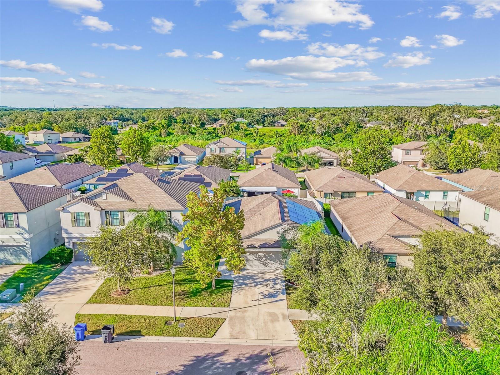 Assumable VA mortgage at 2.375%!! Welcome to this beautifully maintained 4-bedroom, 2-bathroom, 2-car garage Smart Home nestled in the sought-after Twin Creeks community of Riverview. Designed with comfort and functionality in mind, this open-concept floor plan offers an expansive family room that seamlessly flows into the dining area and kitchen—perfect for family gatherings or entertaining guests. At the heart of the home, the spacious kitchen features a large center island, walk-in pantry, and elegant staggered wood cabinetry. The split-bedroom layout provides privacy for everyone, with the owner’s suite tucked away at the back of the home. This serene retreat includes a private ensuite bath with dual vanities and a generous walk-in closet. Three additional bedrooms and a full bathroom are located near the front of the home—each spacious and filled with natural light. Step outside to your fully fenced backyard, complete with a cozy covered porch and two entrances—perfect for barbecues, games, or simply relaxing in the Florida sunshine. Additional highlights include: Solar panels for reduced energy costs, Security system for peace of mind, RainBird sprinkler system, High-efficiency water softener, and a lovingly maintained herb garden right outside. Twin Creeks is a family-friendly neighborhood offering a refreshing community pool and convenient access to I-75 and US-301, making commutes to Tampa Bay, shopping, dining, schools, and hospitals quick and easy. This home truly has it all—modern comfort, energy efficiency, and a fantastic location. Schedule your private showing today!