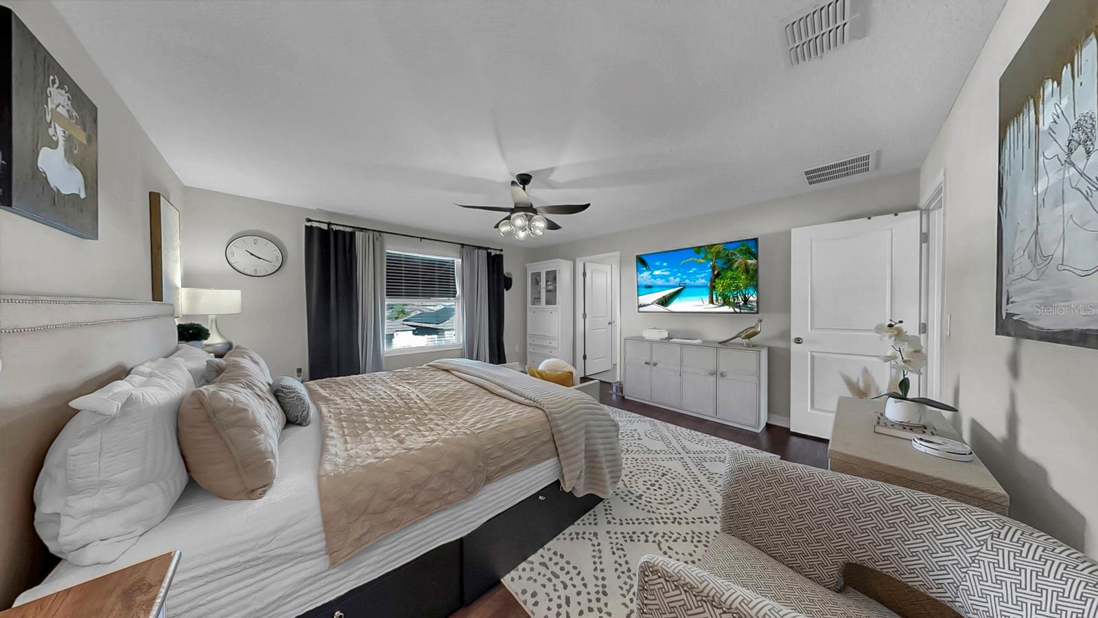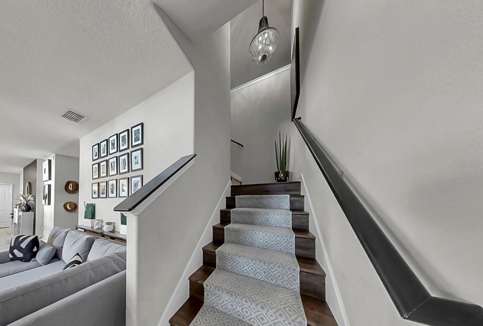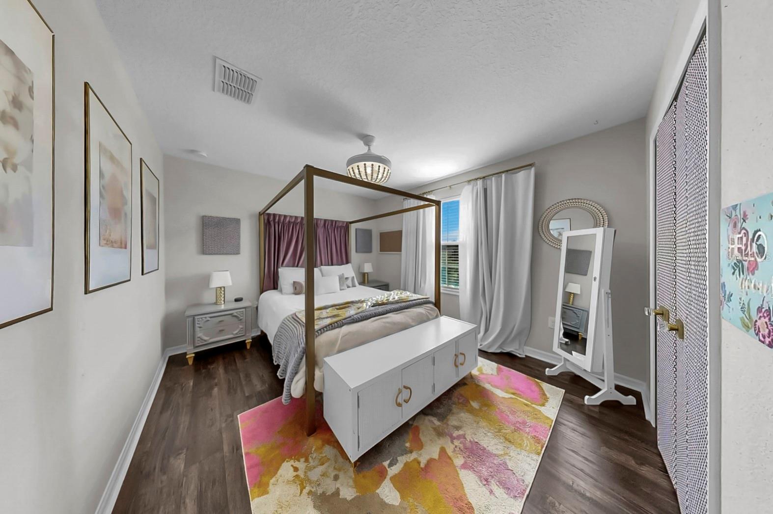 Step into this STUNNING 4-bedroom, 2.5-bath home that looks straight out of a home design magazine! Every detail has been thoughtfully curated—from the DESIGNER LIGHT FIXTURES and ACCENT WALLS to the elegant HAND-PAINTED MURALS that bring character and warmth throughout. The first floor features an open-concept layout that seamlessly connects the living room and kitchen, perfect for entertaining. The kitchen is a showstopper with abundant cabinet space, stainless steel appliances, and a TRENDY tile backsplash that continues across the island for a cohesive, modern touch. A flex room enclosed with a STRIKING black barn-style door offers the perfect space for a home office, den, or playroom. Upstairs, you’ll find the Primary Suite, a spacious loft, three secondary bedrooms, a full bath, and a convenient laundry room. The primary suite is a true retreat—featuring a MASSIVE bedroom, spa-inspired ensuite with a standing shower, private commode, upgraded fixtures, and a closet large enough to be its own room! Recent updates include dark WOOD-LOOK LVP flooring upstairs and luxurious window treatments throughout. Step outside to enjoy the beautifully landscaped backyard with a pergola and large fenced yard—ideal for relaxing or hosting gatherings. Located in the desirable community of Triple Creek, residents are granted access to THREE amenity centers, THREE community pools, TWO fitness centers, basketball, volleyball, and tennis courts, walking trails, dog parks, clubhouses, and community-wide social activities!