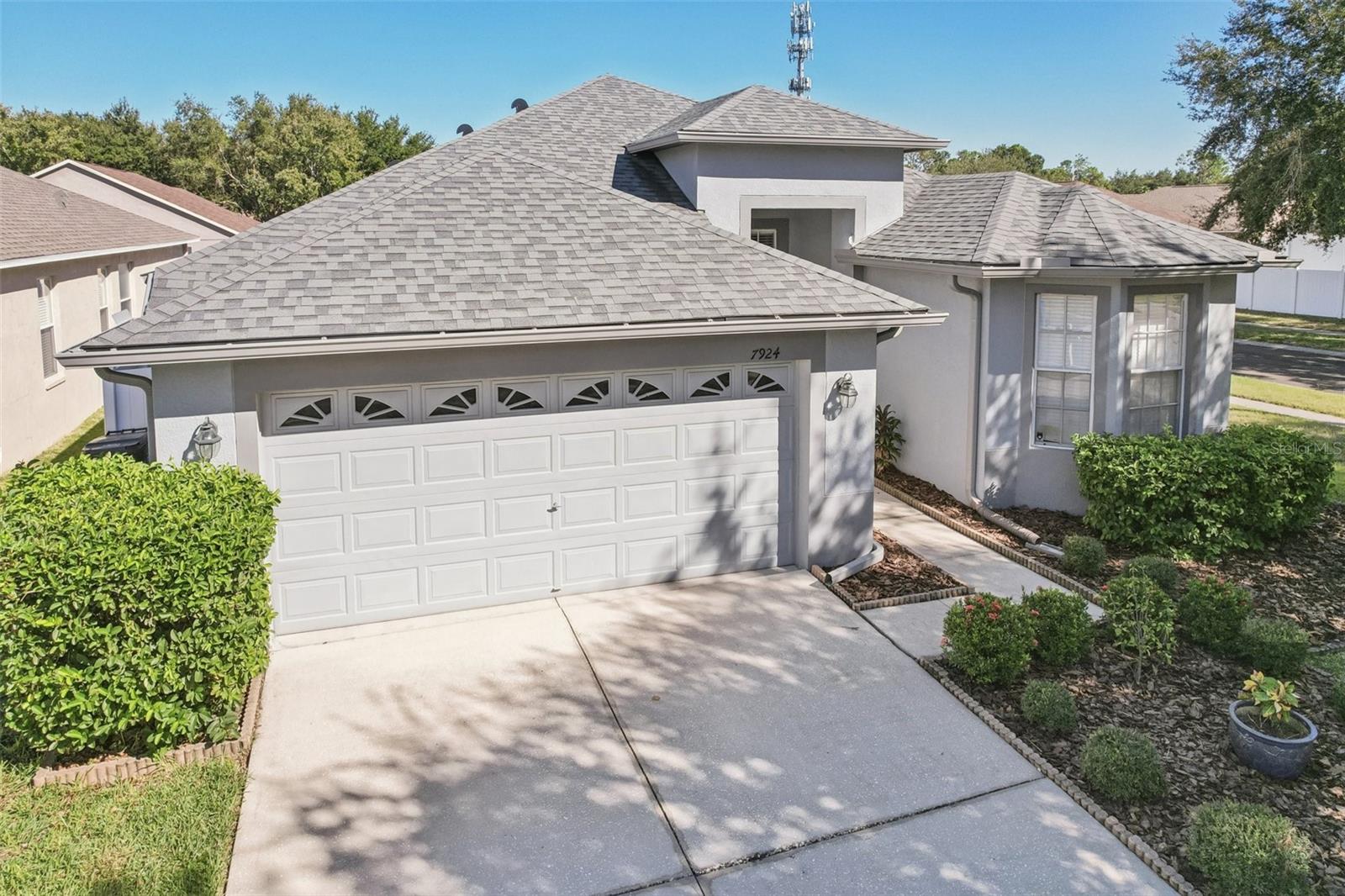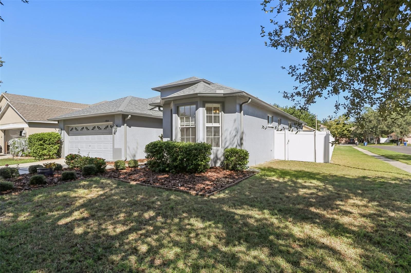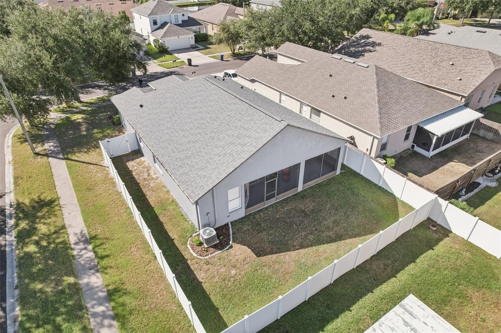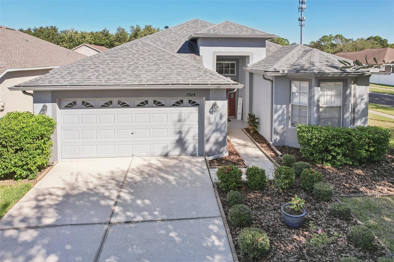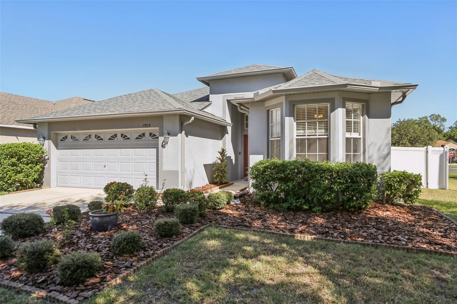 Welcome Home! Enter Your Welcoming Foyer into this open floor plan home situated in the quiet and highly desirable Amberly neighborhood of Oak Creek In Riverview. To your right are two spacious bedrooms sharing a full hall bath featuring a tiled tub/shower combination and a transom window for natural light and privacy. Across the Foyer is the conveniently located laundry room and leads to the 2 car garage. Continue into the spacious Great Room adjacent to the Kitchen and "L" shaped separate dinning area. The kitchen features a large eat-in area with Bay windows overlooking the fully fenced backyard. Exit the Great Room through sliding doors into the large screened in lanai offering a wonderful gathering area also adjacent to the Kitchen for ease of entertaining guests. To the left of the Great Room is the Primary Suite, which features sliding glass doors also leading to the lanai. The en-suite bathroom features a large walk-in closet, linen closet, separate toilet room, double sink vanity, a soaking tub and fully glass-enclosed walk-in shower. Decorative niches and Arches framing the windows and doors along with vaulted ceilings in the main living area, add a touch of elegance to this home and lets it live larger than its square footage. The fully fenced backyard and covered screened in rear lanai, offers a peaceful place to relax after a full day of activities. Other features of the home include hurricane shutters, reinforced garage door and a newer roof (2021). Current owners also added gutters on the front and sides of the home. A security system with ring camera doorbell at the front of the home provides additional piece of mind. You'll really enjoy walking to the community clubhouse and pool which is only four homes away! The great location is close to the greater Tampa Bay area, entertainment, shopping, restaurants and the beautiful Gulf beaches. Don't miss out on this opportunity to call this great house your home! Schedule your private showing today!