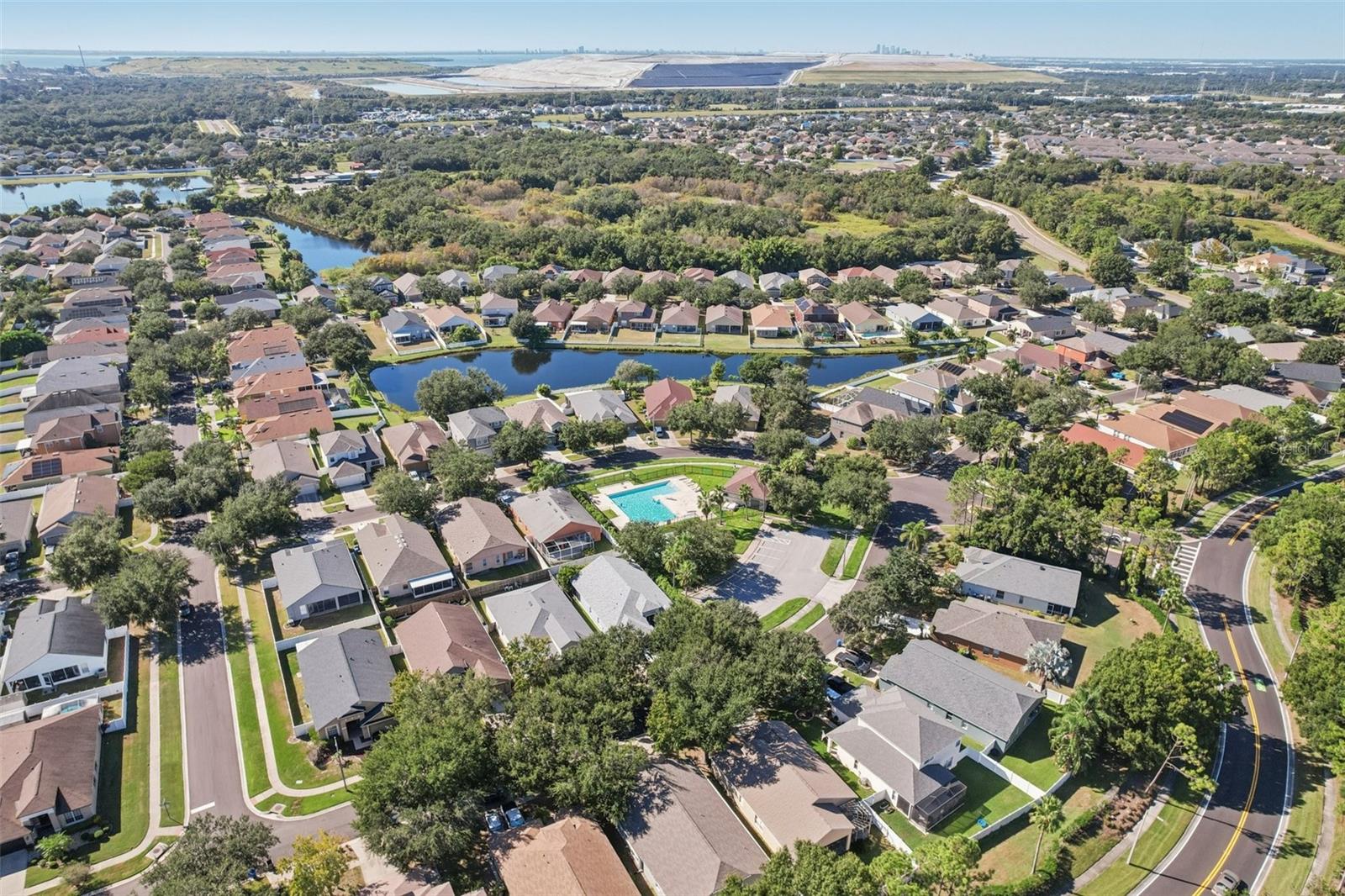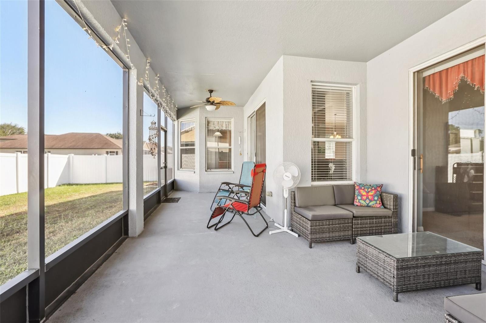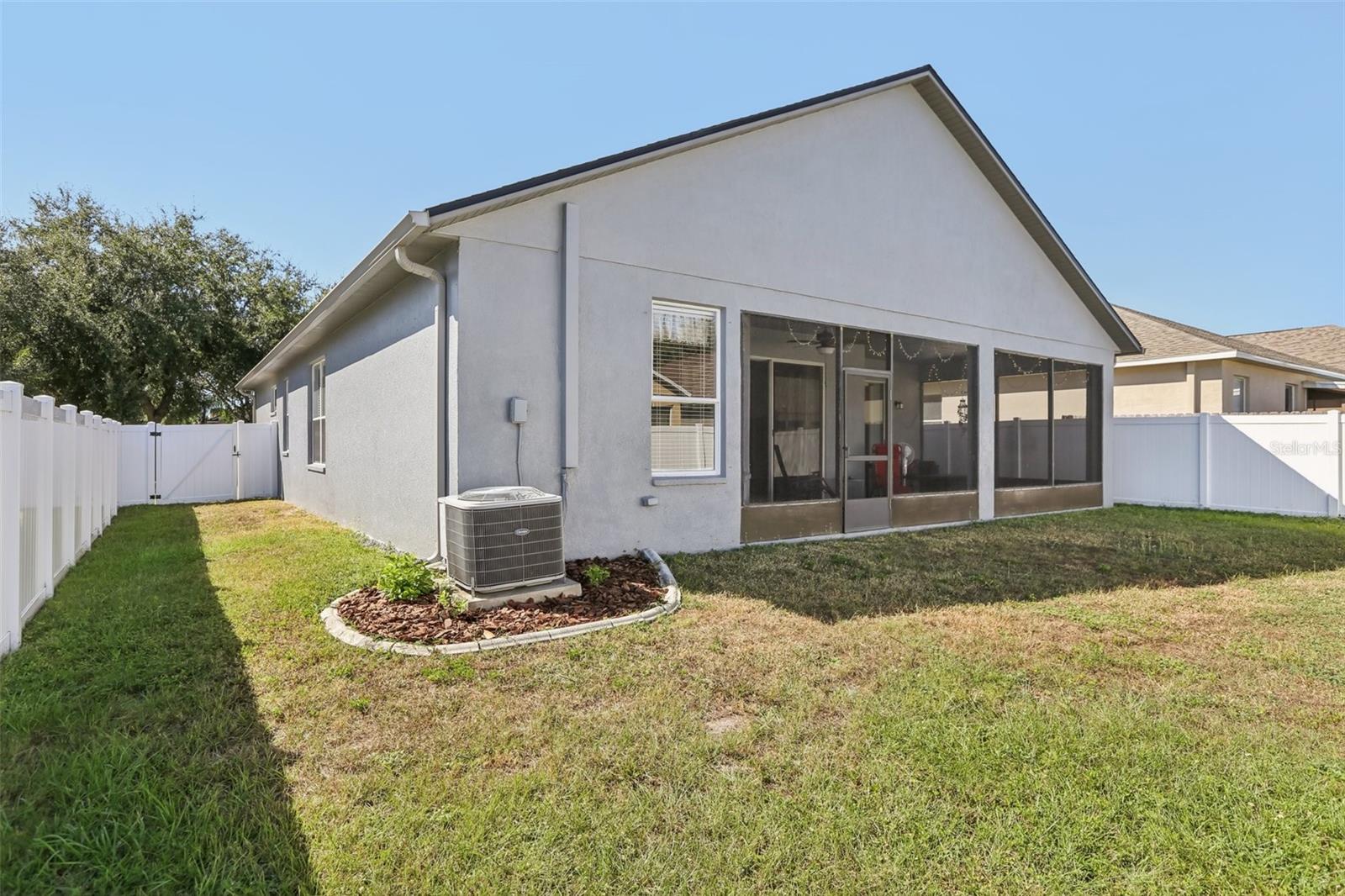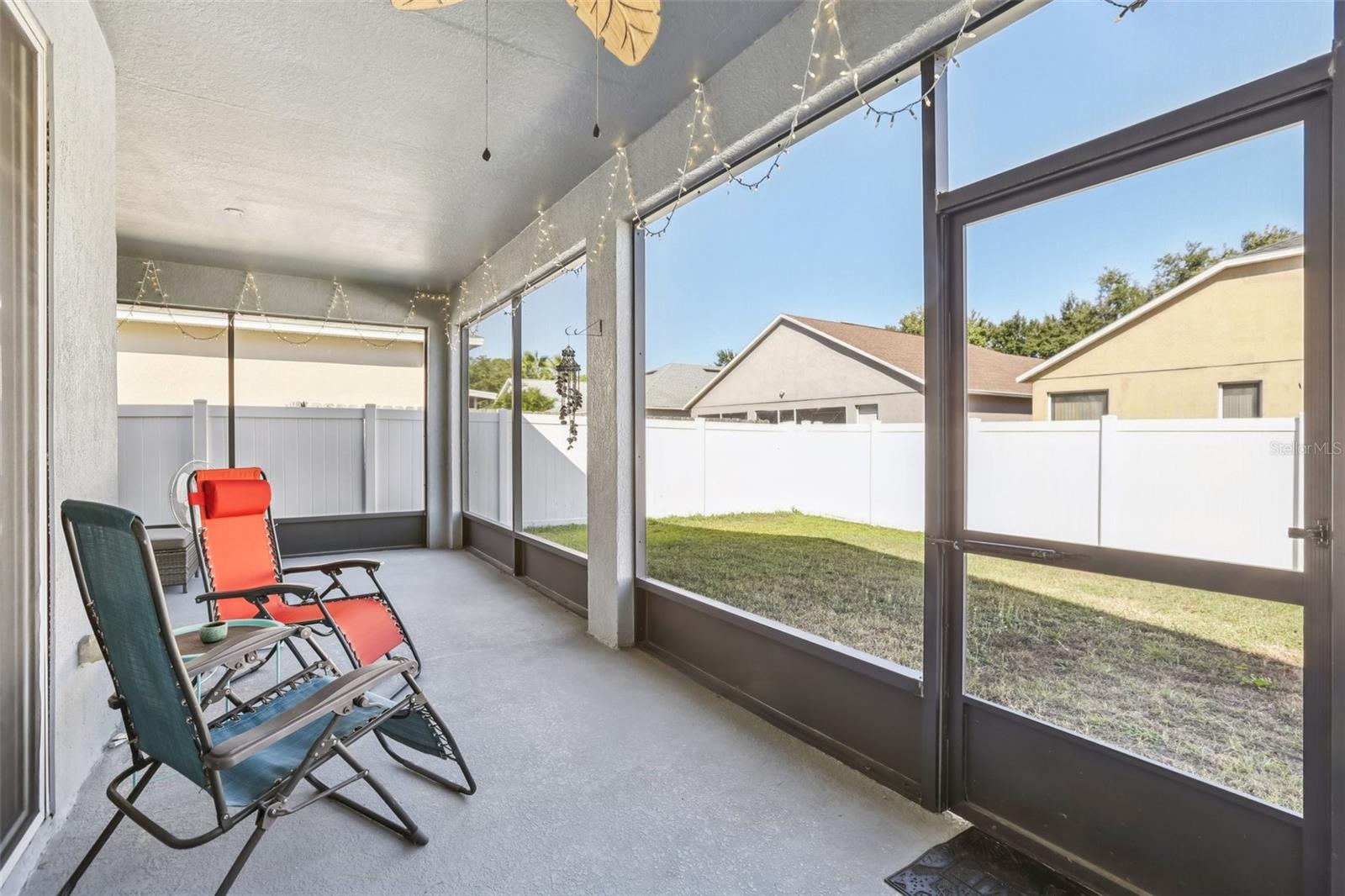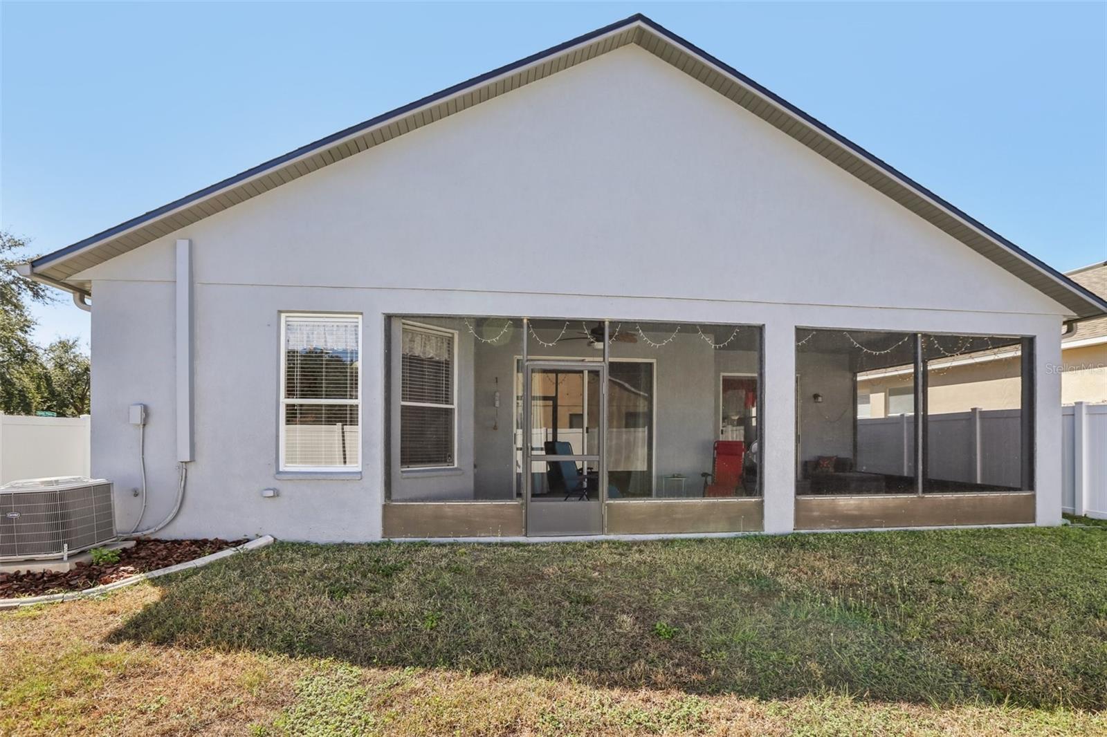 Welcome Home! Enter Your Welcoming Foyer into this open floor plan home situated in the quiet and highly desirable Amberly neighborhood of Oak Creek In Riverview. To your right are two spacious bedrooms sharing a full hall bath featuring a tiled tub/shower combination and a transom window for natural light and privacy. Across the Foyer is the conveniently located laundry room and leads to the 2 car garage. Continue into the spacious Great Room adjacent to the Kitchen and "L" shaped separate dinning area. The kitchen features a large eat-in area with Bay windows overlooking the fully fenced backyard. Exit the Great Room through sliding doors into the large screened in lanai offering a wonderful gathering area also adjacent to the Kitchen for ease of entertaining guests. To the left of the Great Room is the Primary Suite, which features sliding glass doors also leading to the lanai. The en-suite bathroom features a large walk-in closet, linen closet, separate toilet room, double sink vanity, a soaking tub and fully glass-enclosed walk-in shower. Decorative niches and Arches framing the windows and doors along with vaulted ceilings in the main living area, add a touch of elegance to this home and lets it live larger than its square footage. The fully fenced backyard and covered screened in rear lanai, offers a peaceful place to relax after a full day of activities. Other features of the home include hurricane shutters, reinforced garage door and a newer roof (2021). Current owners also added gutters on the front and sides of the home. A security system with ring camera doorbell at the front of the home provides additional piece of mind. You'll really enjoy walking to the community clubhouse and pool which is only four homes away! The great location is close to the greater Tampa Bay area, entertainment, shopping, restaurants and the beautiful Gulf beaches. Don't miss out on this opportunity to call this great house your home! Schedule your private showing today!